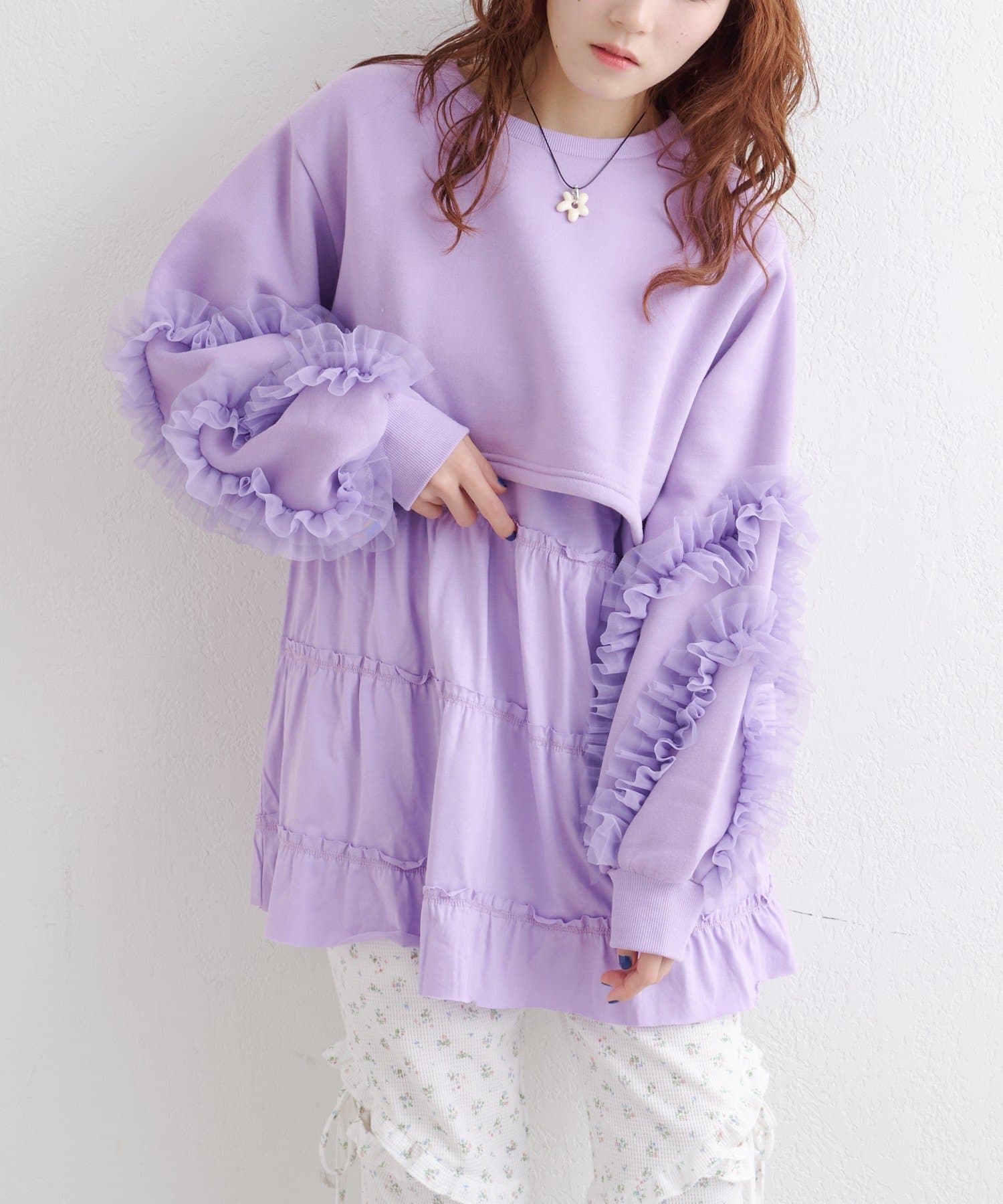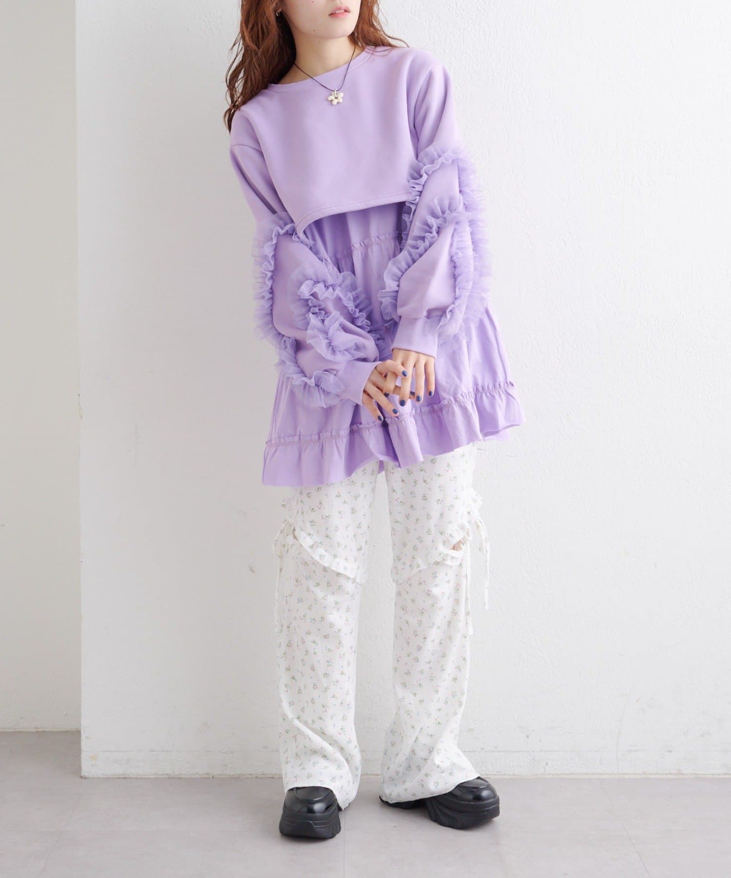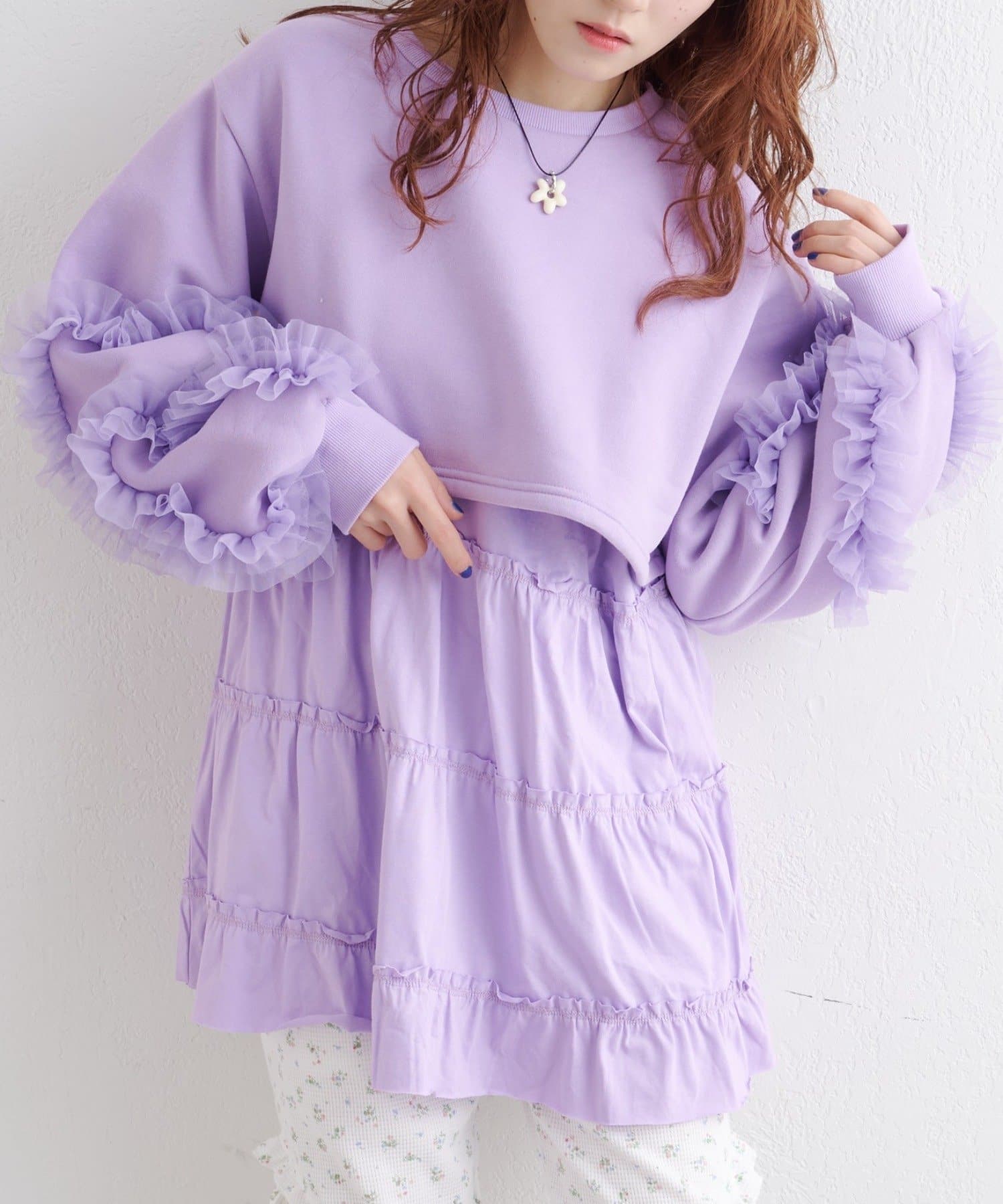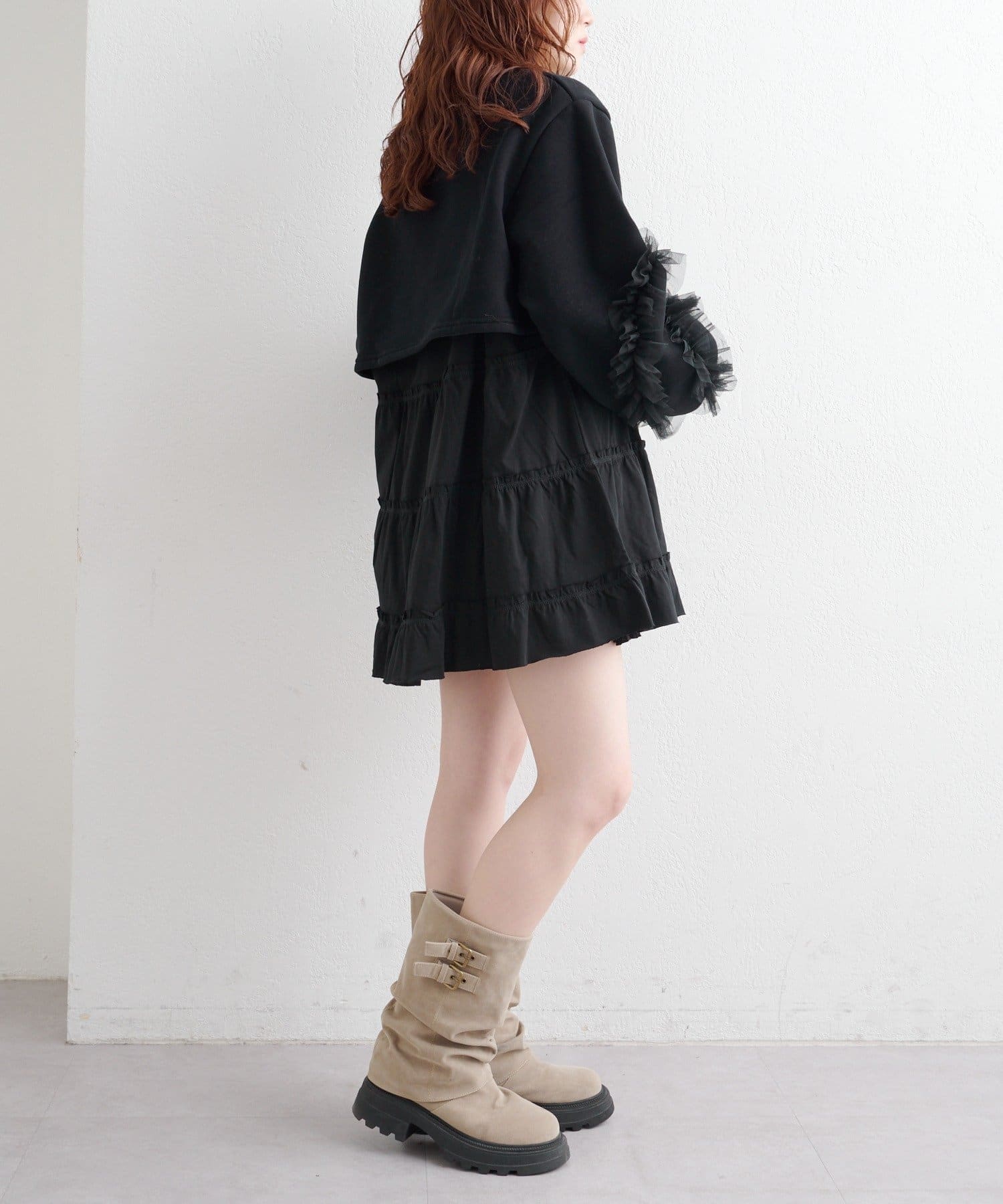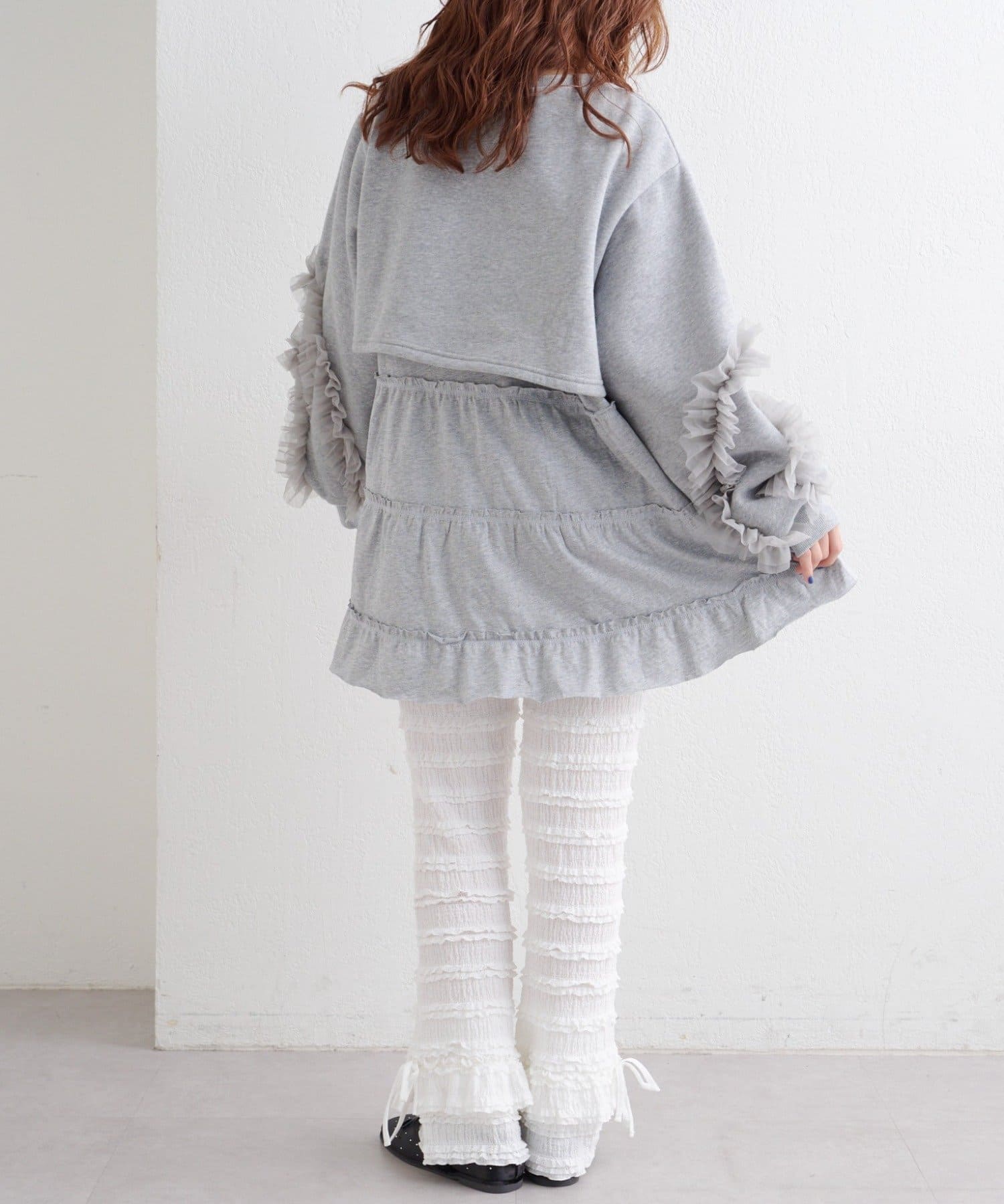 【1枚でオシャレ見え♪】チュールスリーブスウェットワンピース