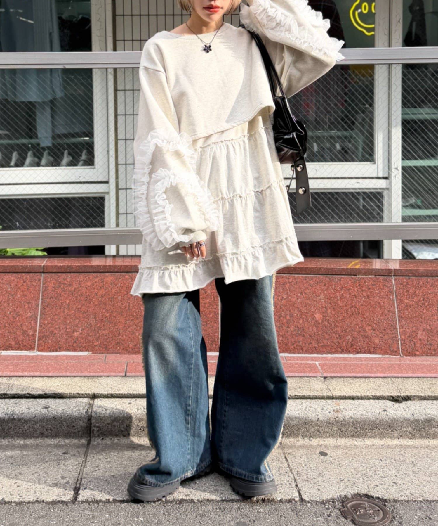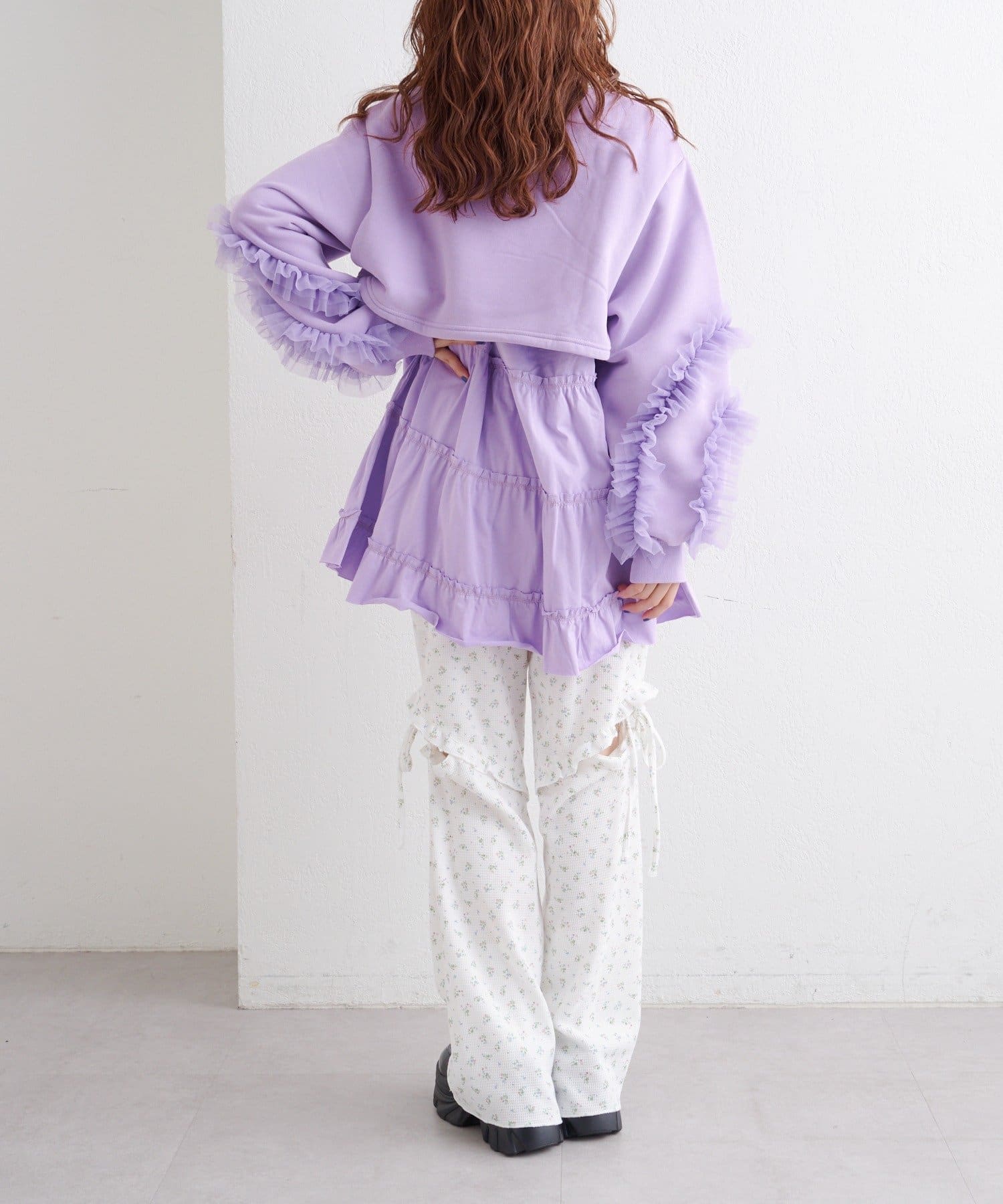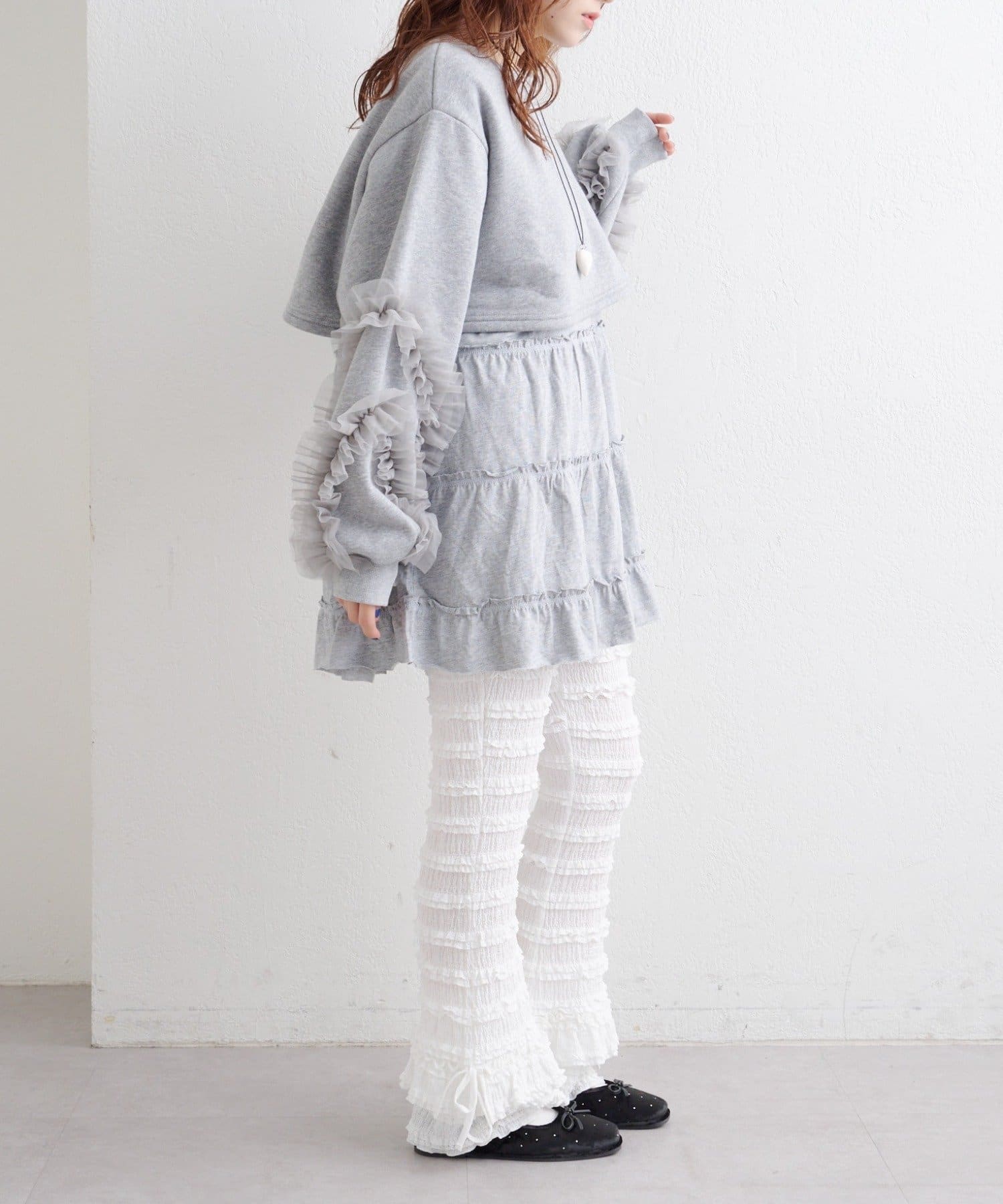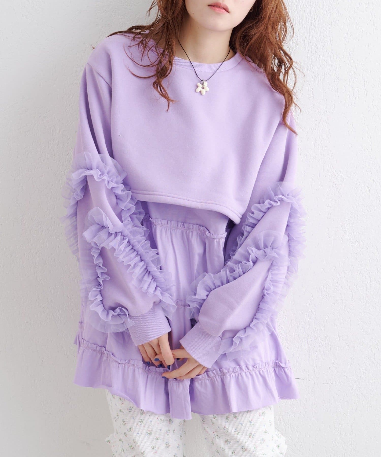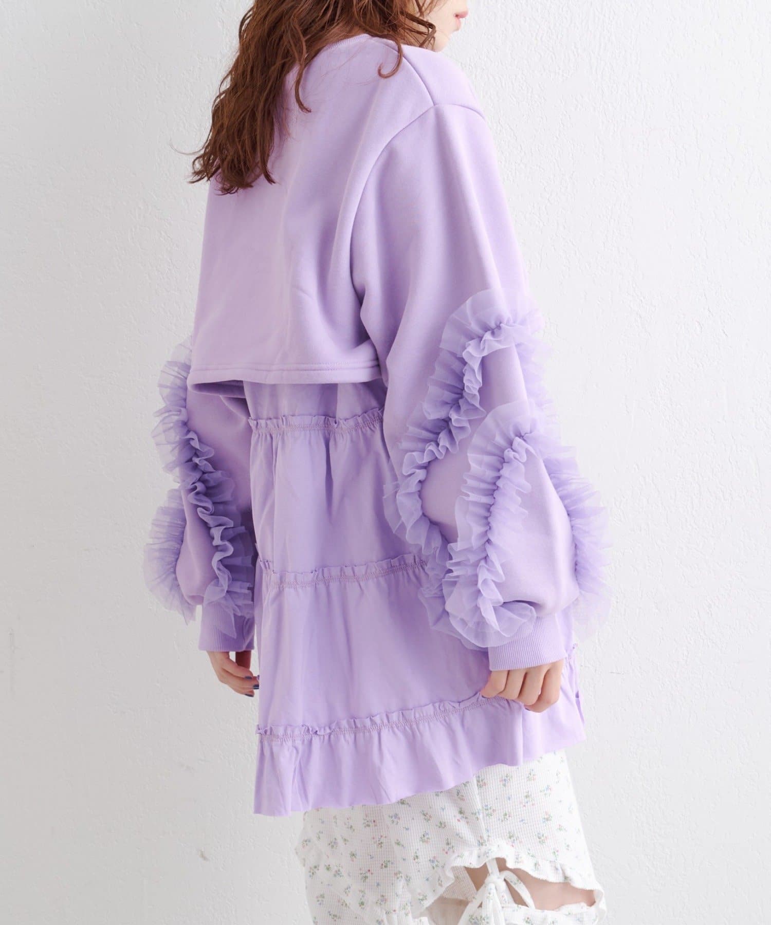 【1枚でオシャレ見え♪】チュールスリーブスウェットワンピース