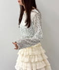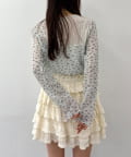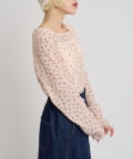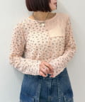 ・小花柄とレース切替が可愛いシアー系トップス。