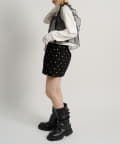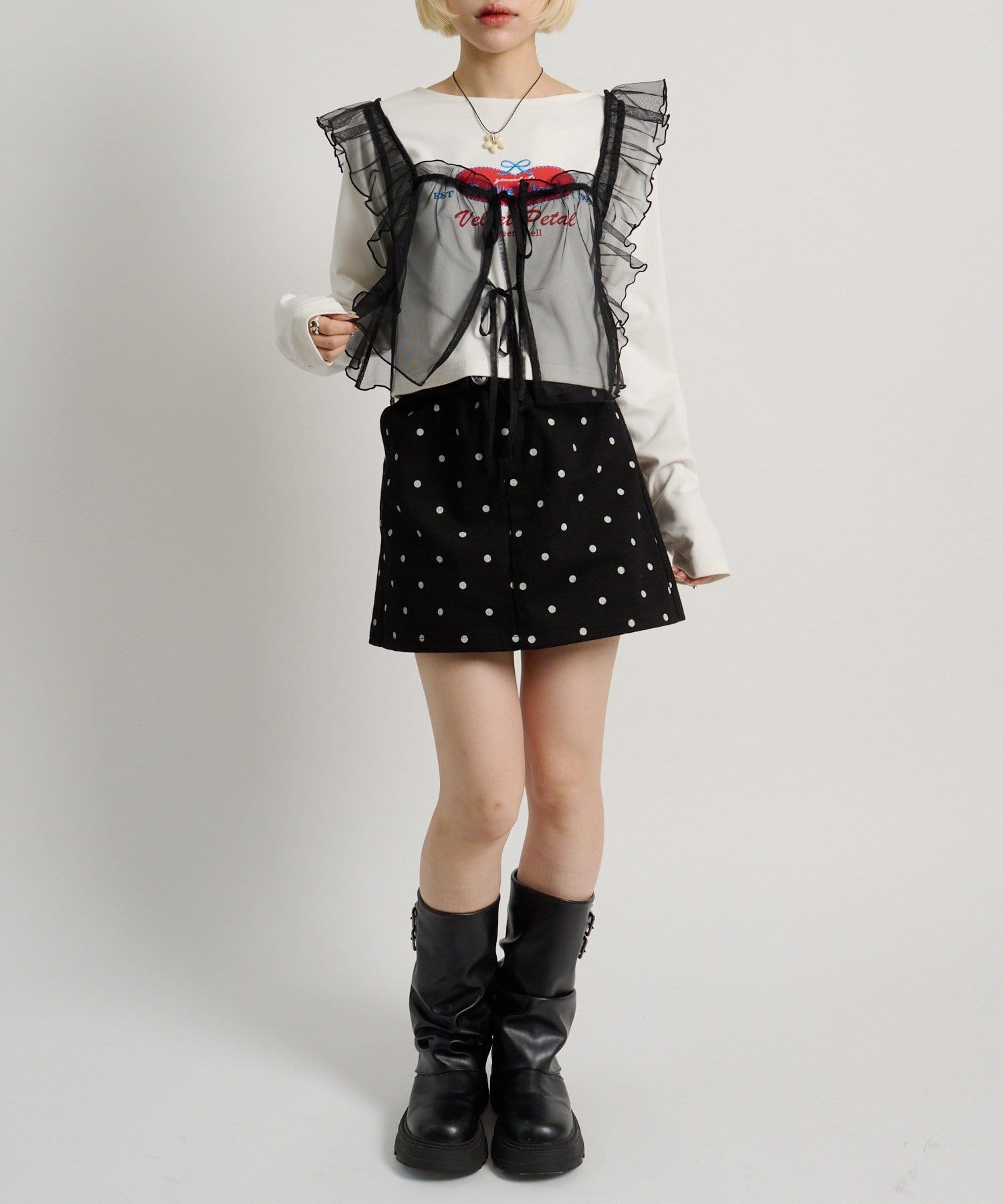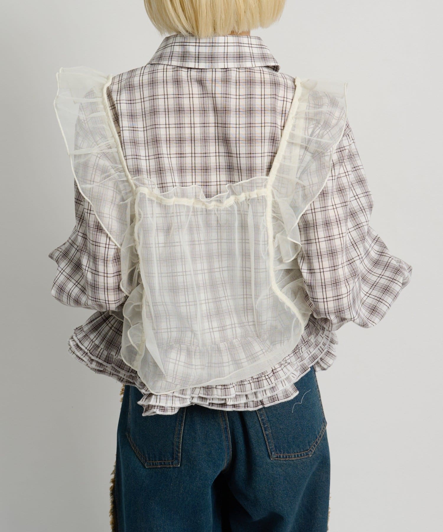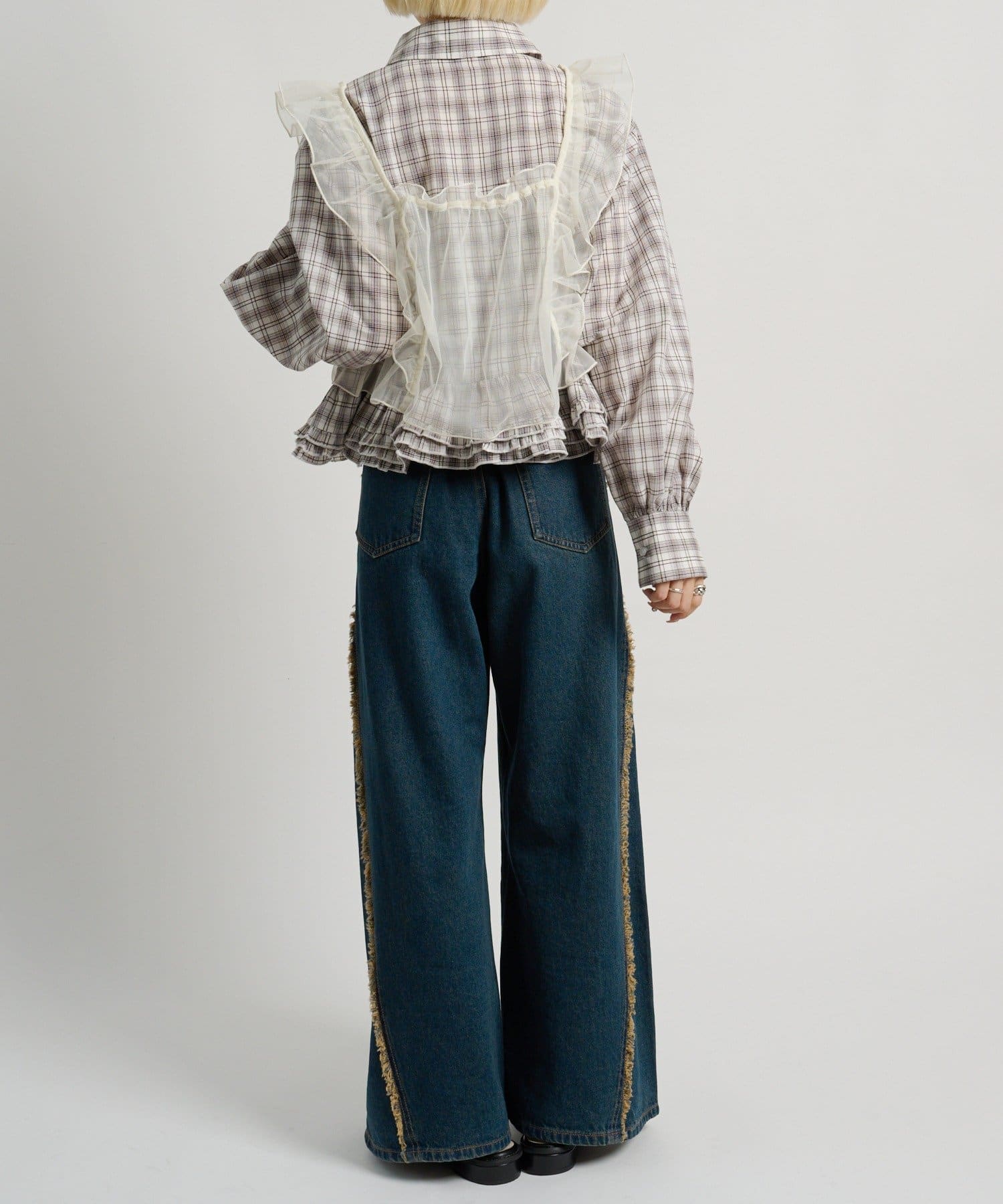 ・チェックシャツやブラウスにレイヤードして甘辛ミックスコーデに