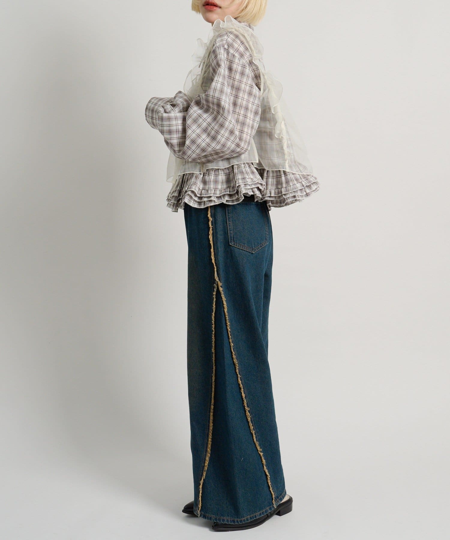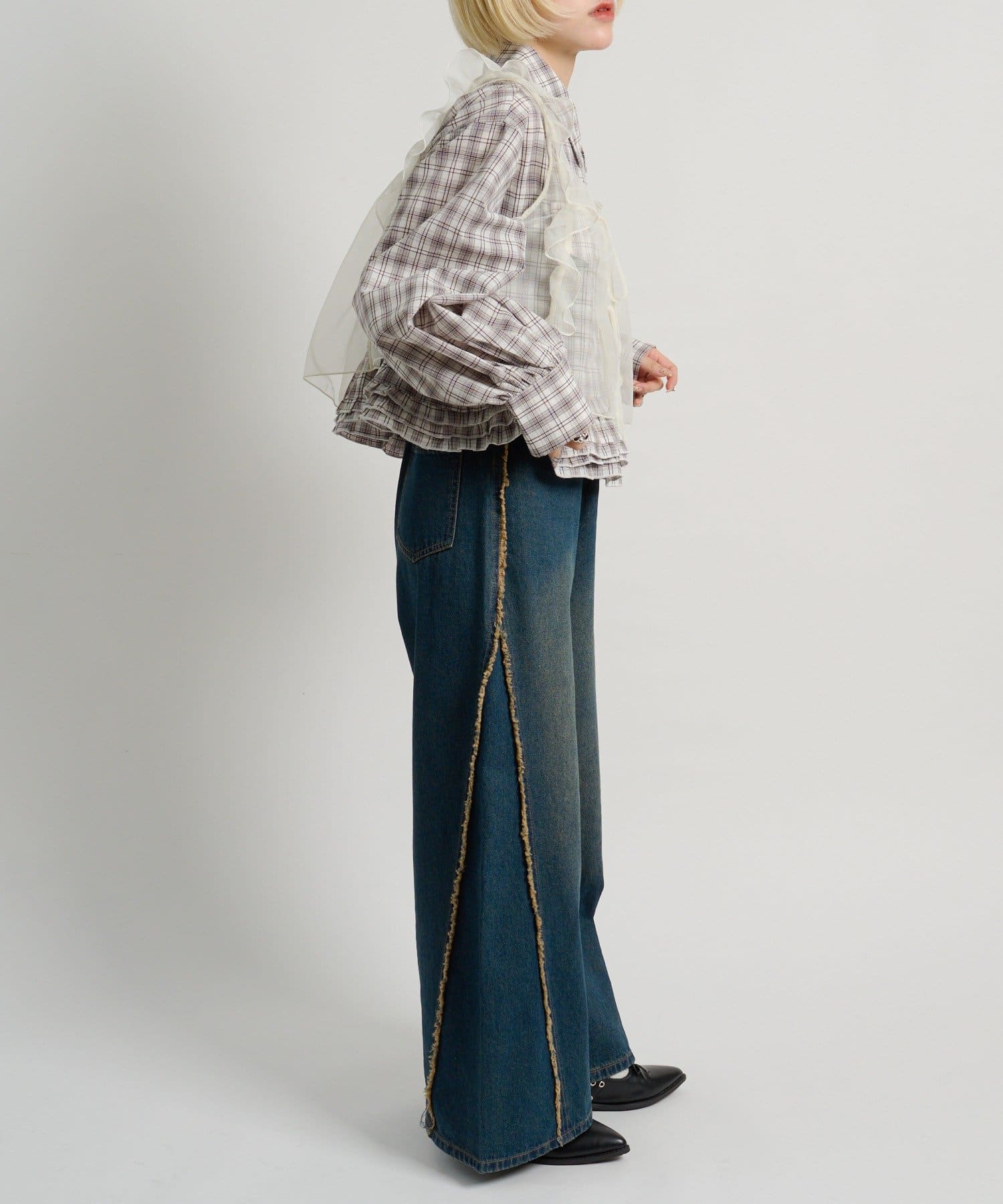 ・デニムやワイドパンツ合わせでバランスの取れたスタイリングに
