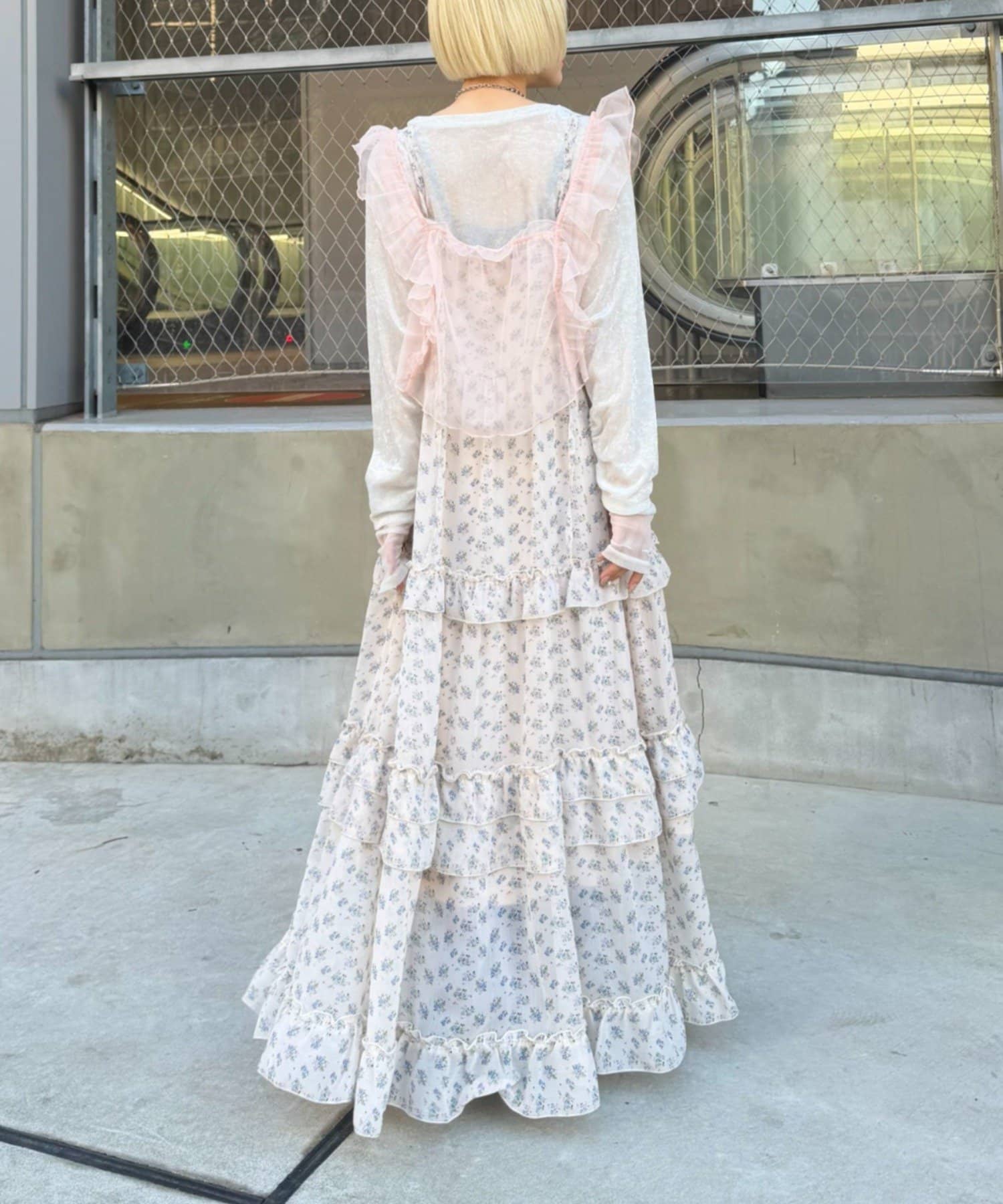 ・肩からフロントにかけて施したボリュームフリルが華やかな印象に