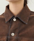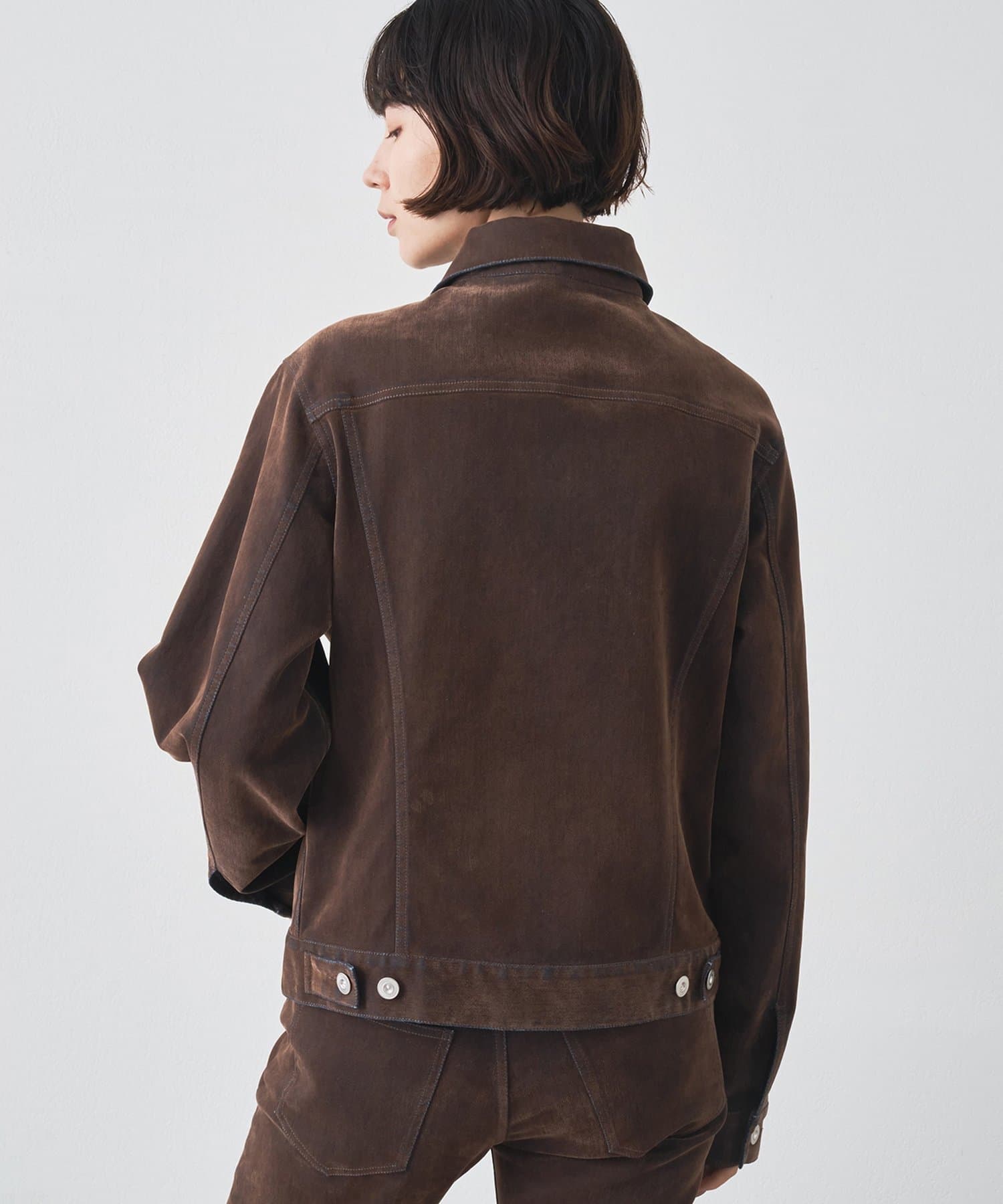 生地に洗いをかけることで、フロッキーが落ち、ビンテージみえする素材。