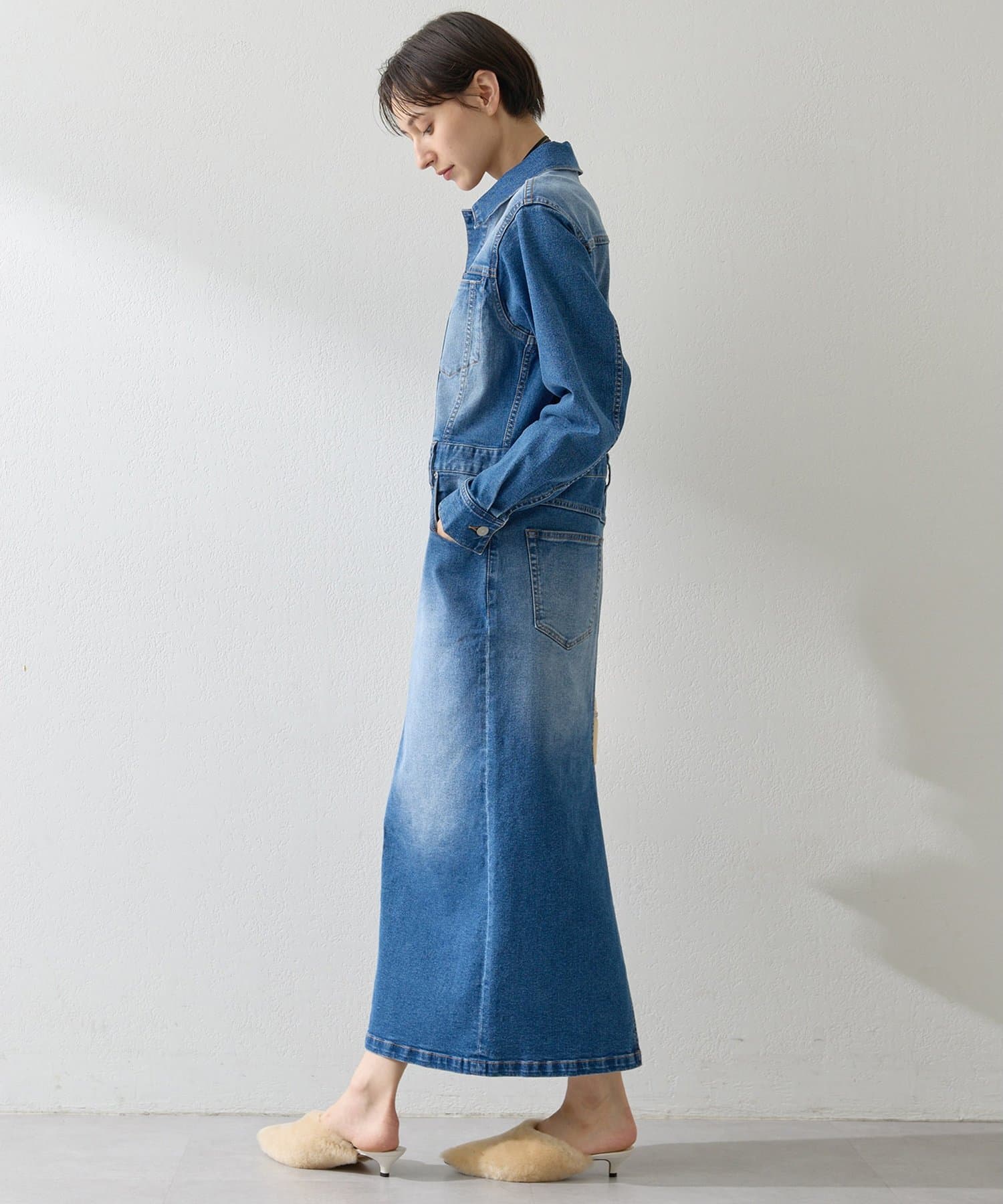 一枚で格好良く決まる、大人のデニムシャツワンピース