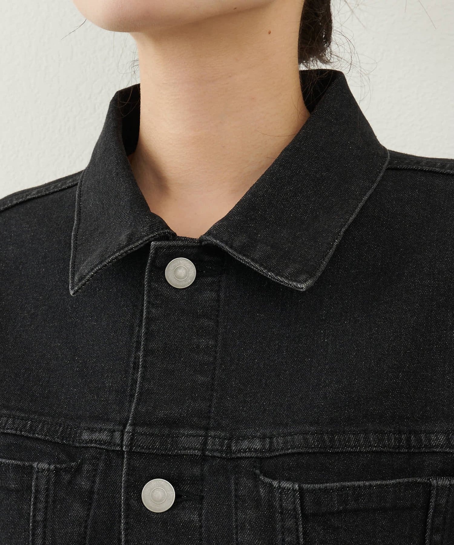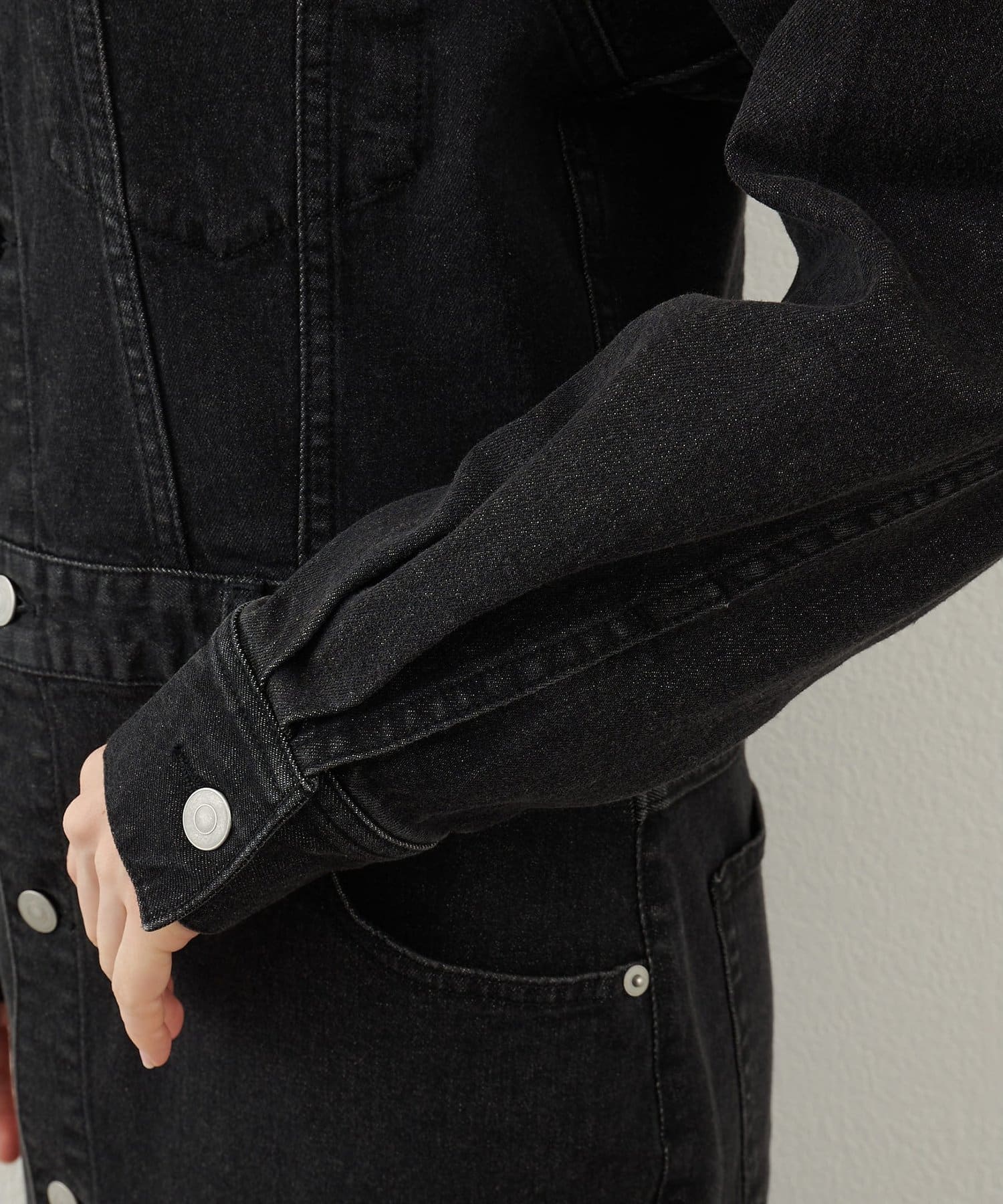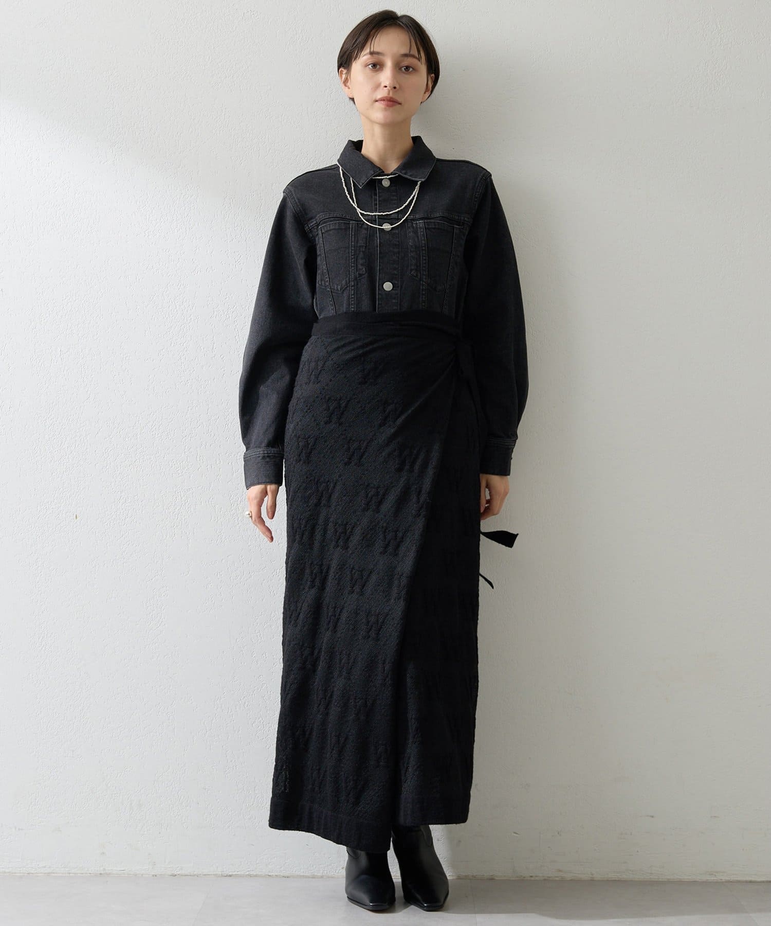 ■加工によりシボ感が出る、90‘Sのデニムのような落ち方と雰囲気のあるデニム生地がこなれたムードをプラス。