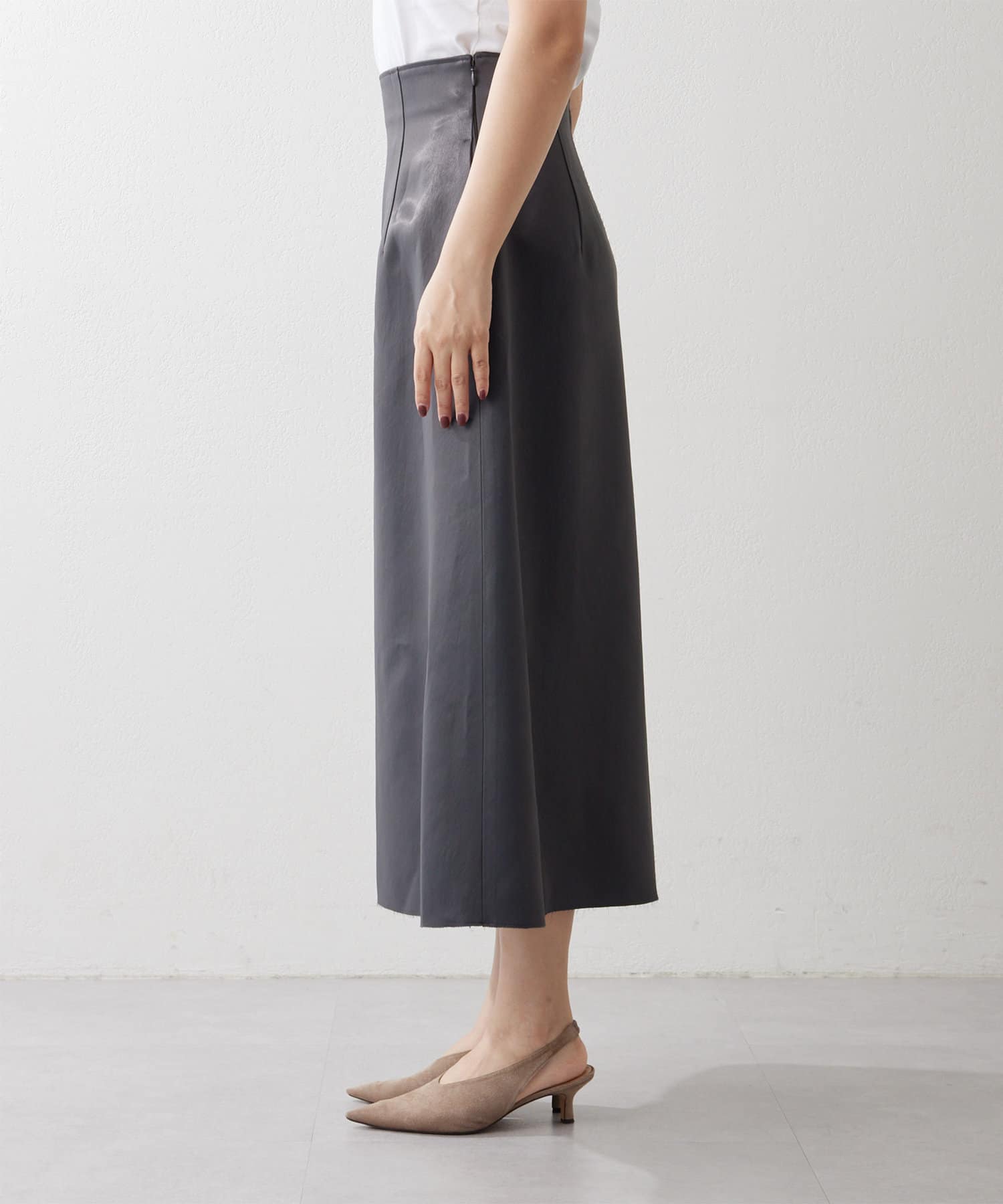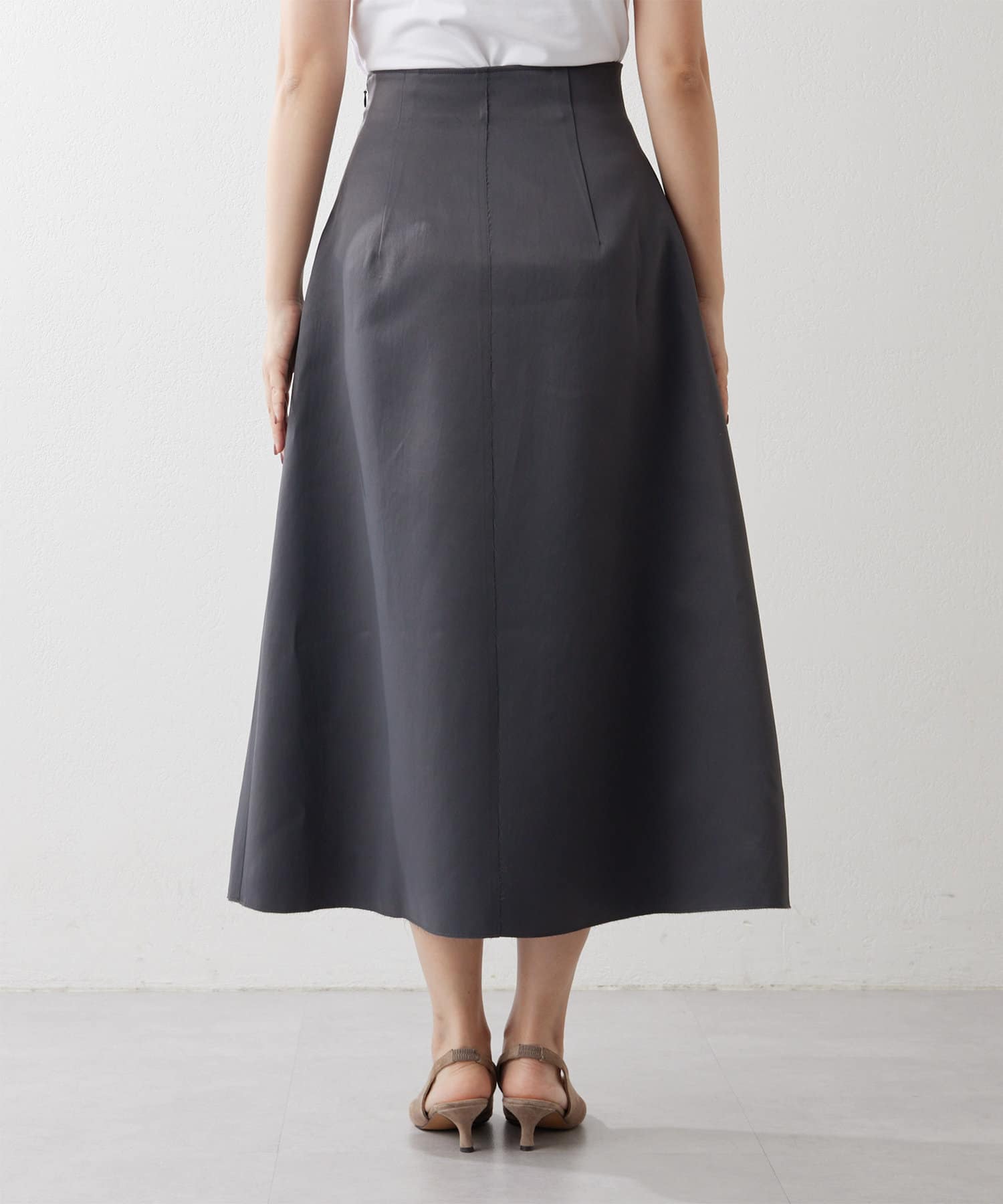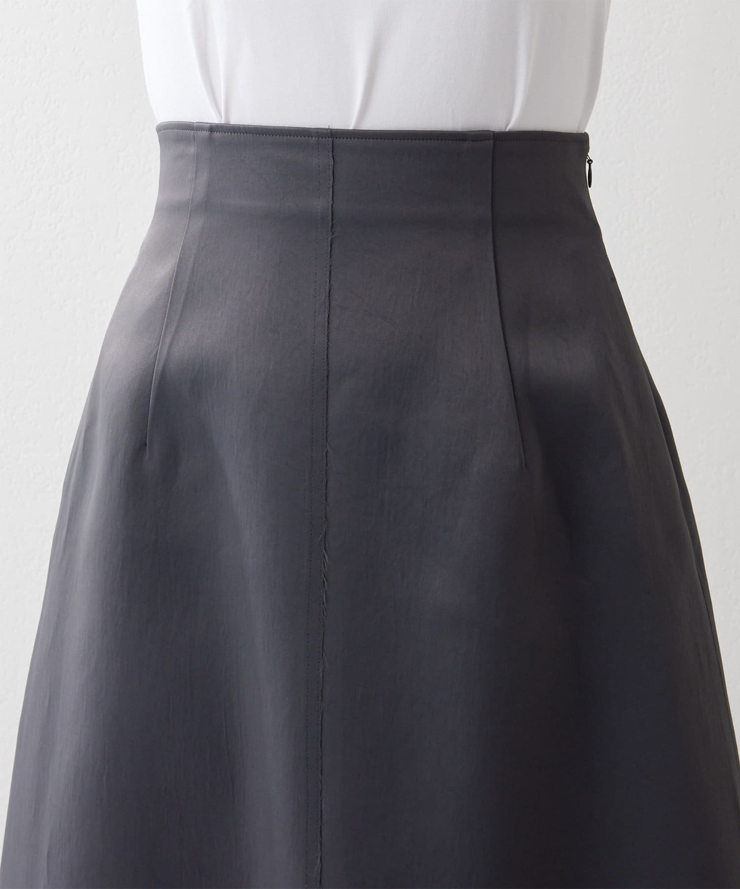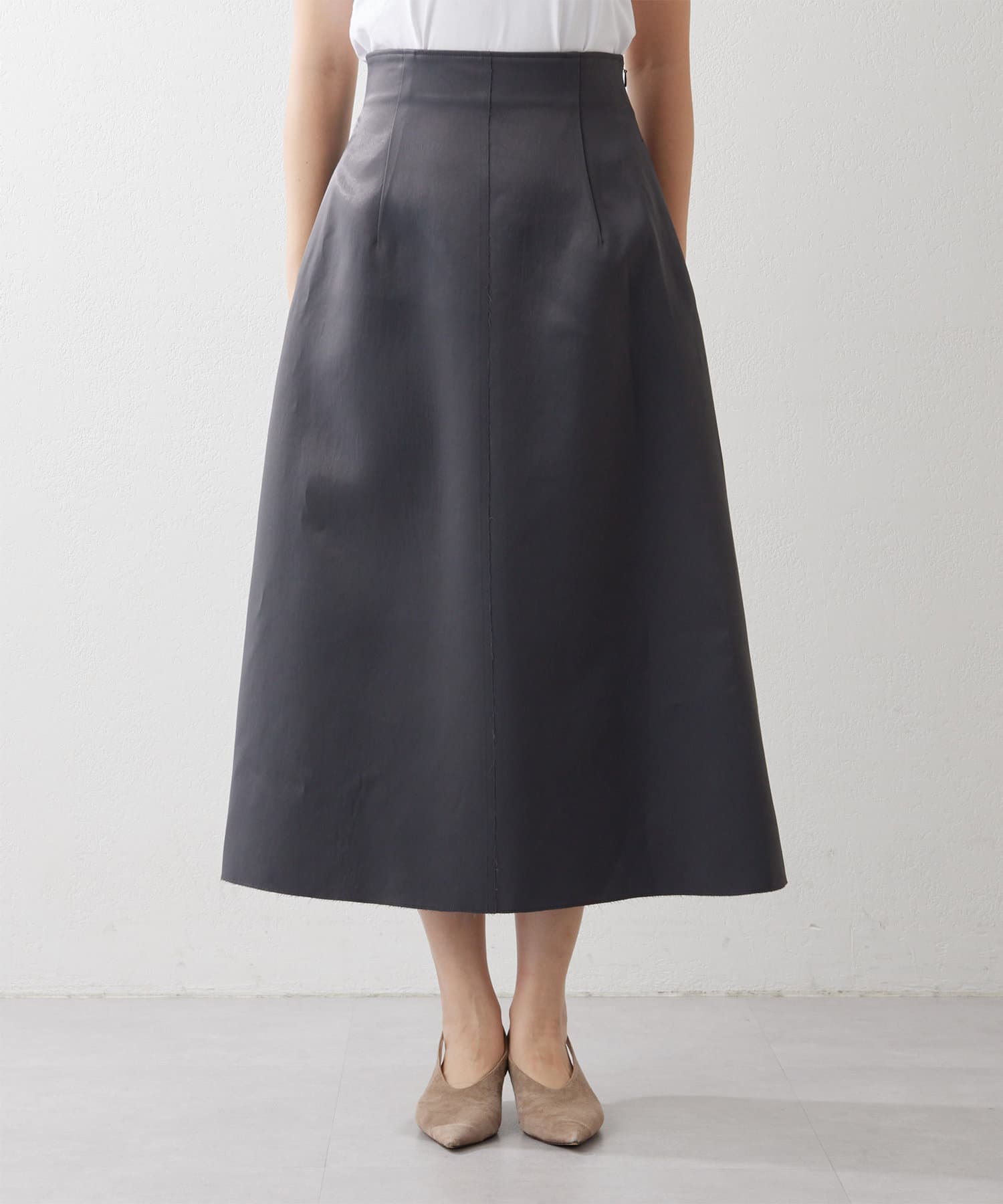 ■ダルブライトのアセテートサテンをボンディングした素材を使用したフレアスカート。