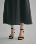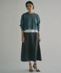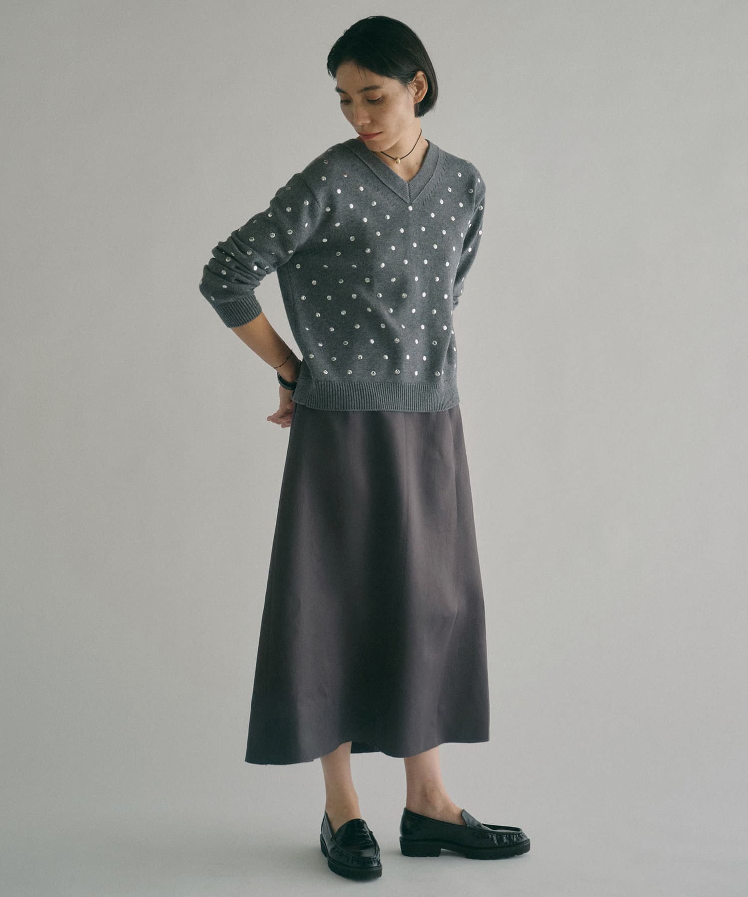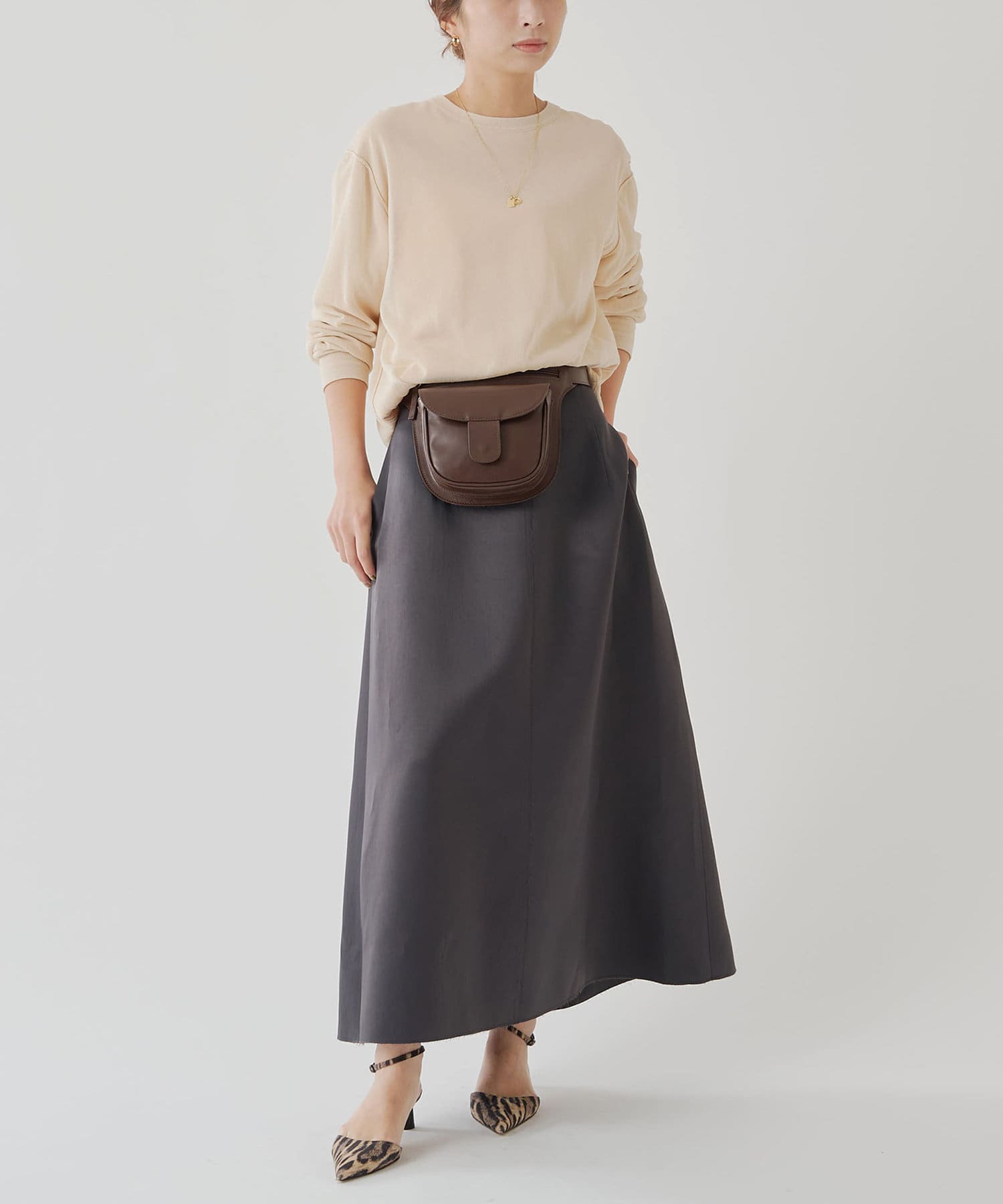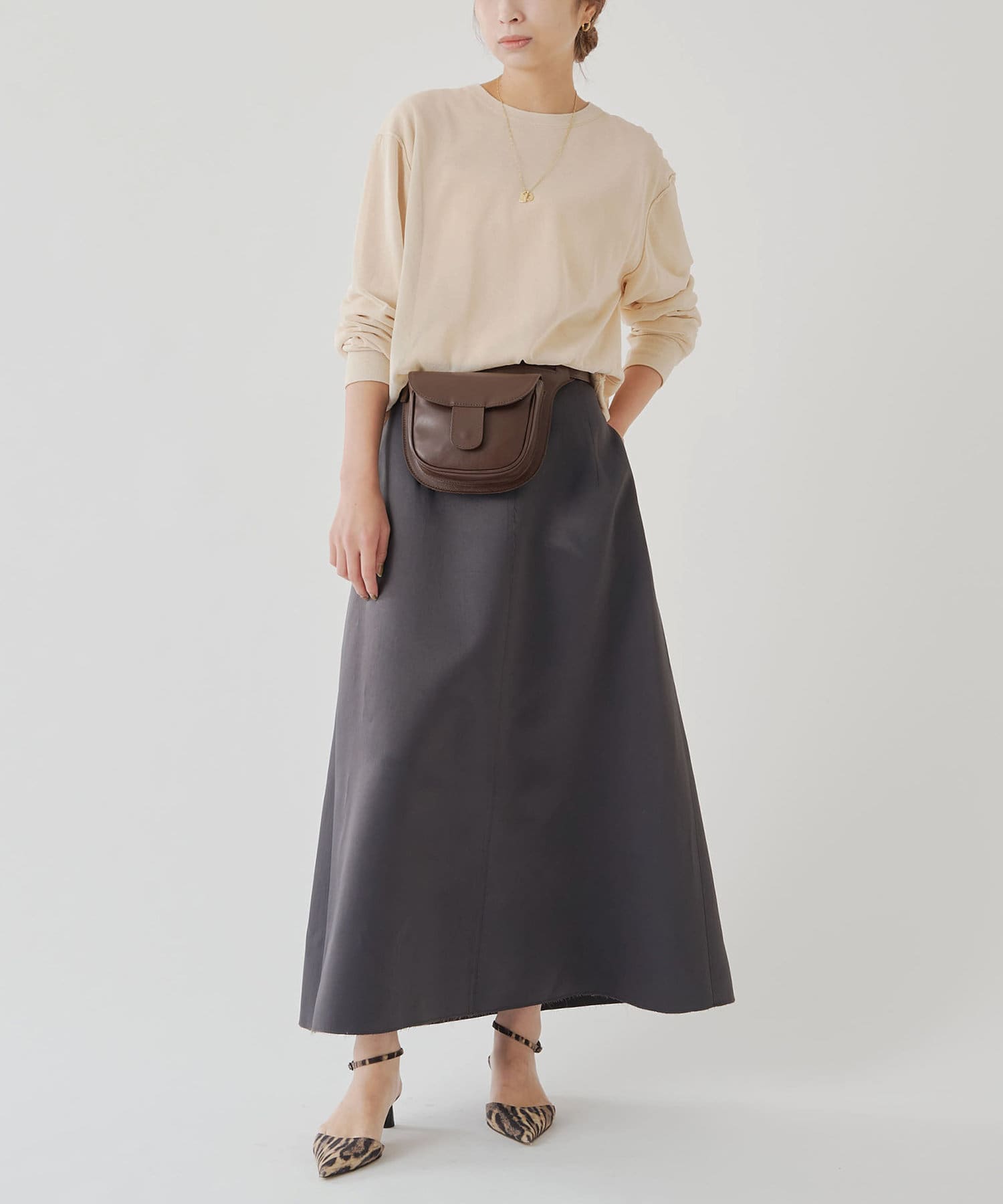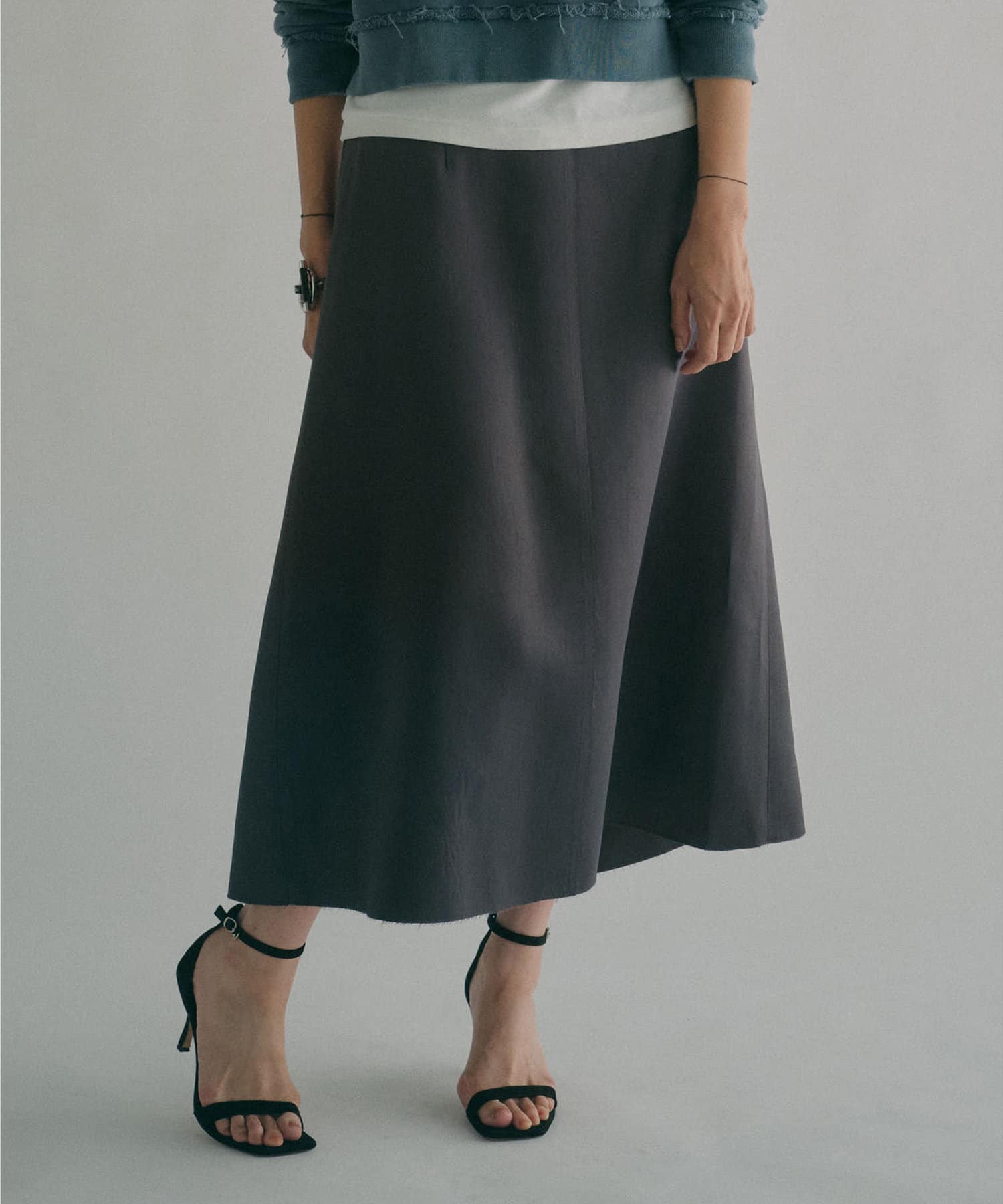 ■ダルブライトのアセテートサテンをボンディングした素材を使用したフレアスカート。