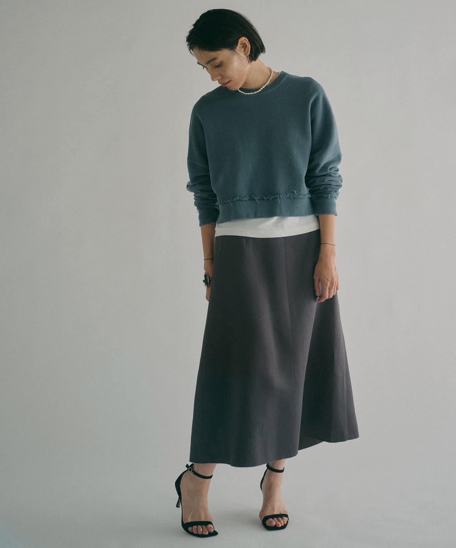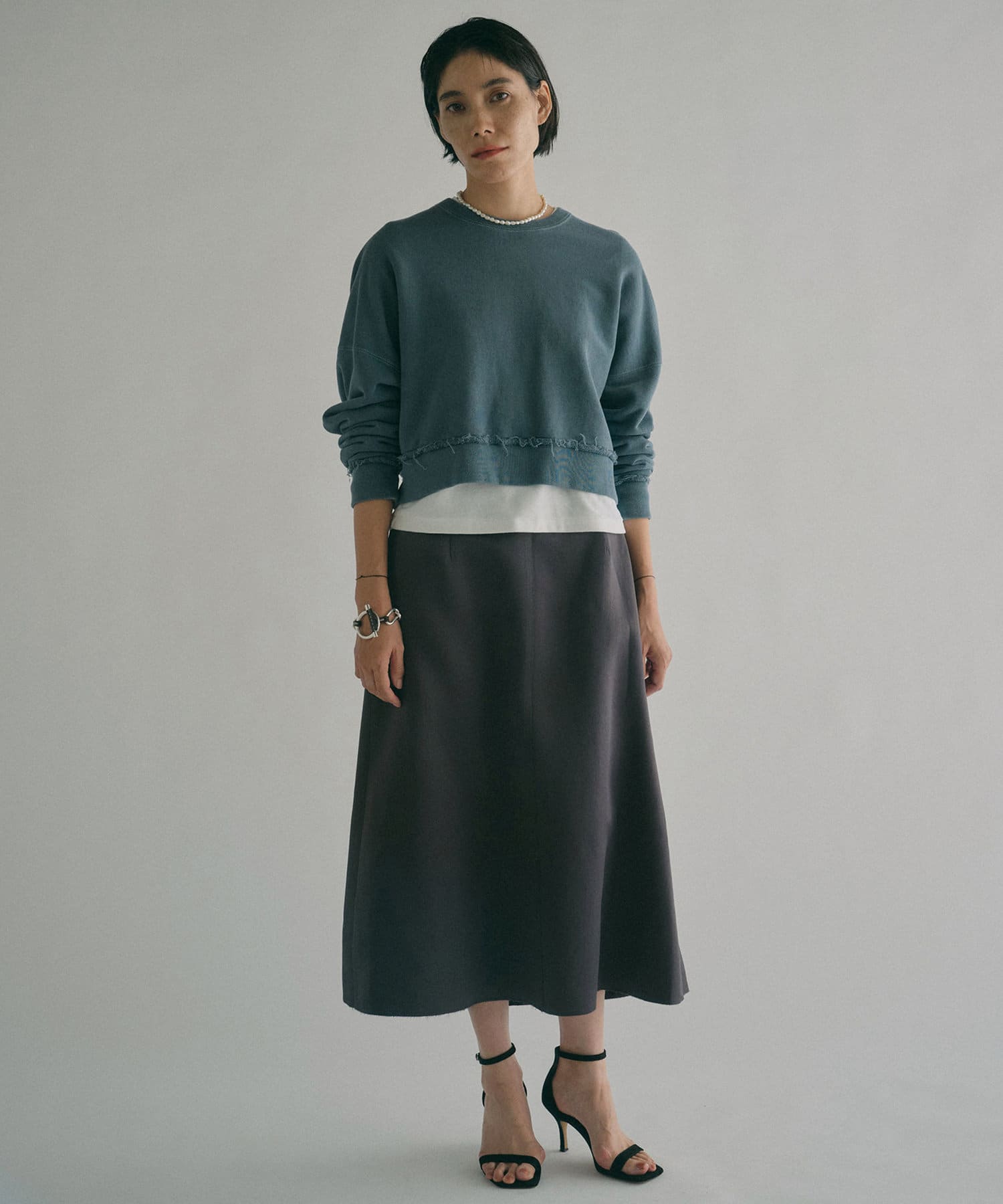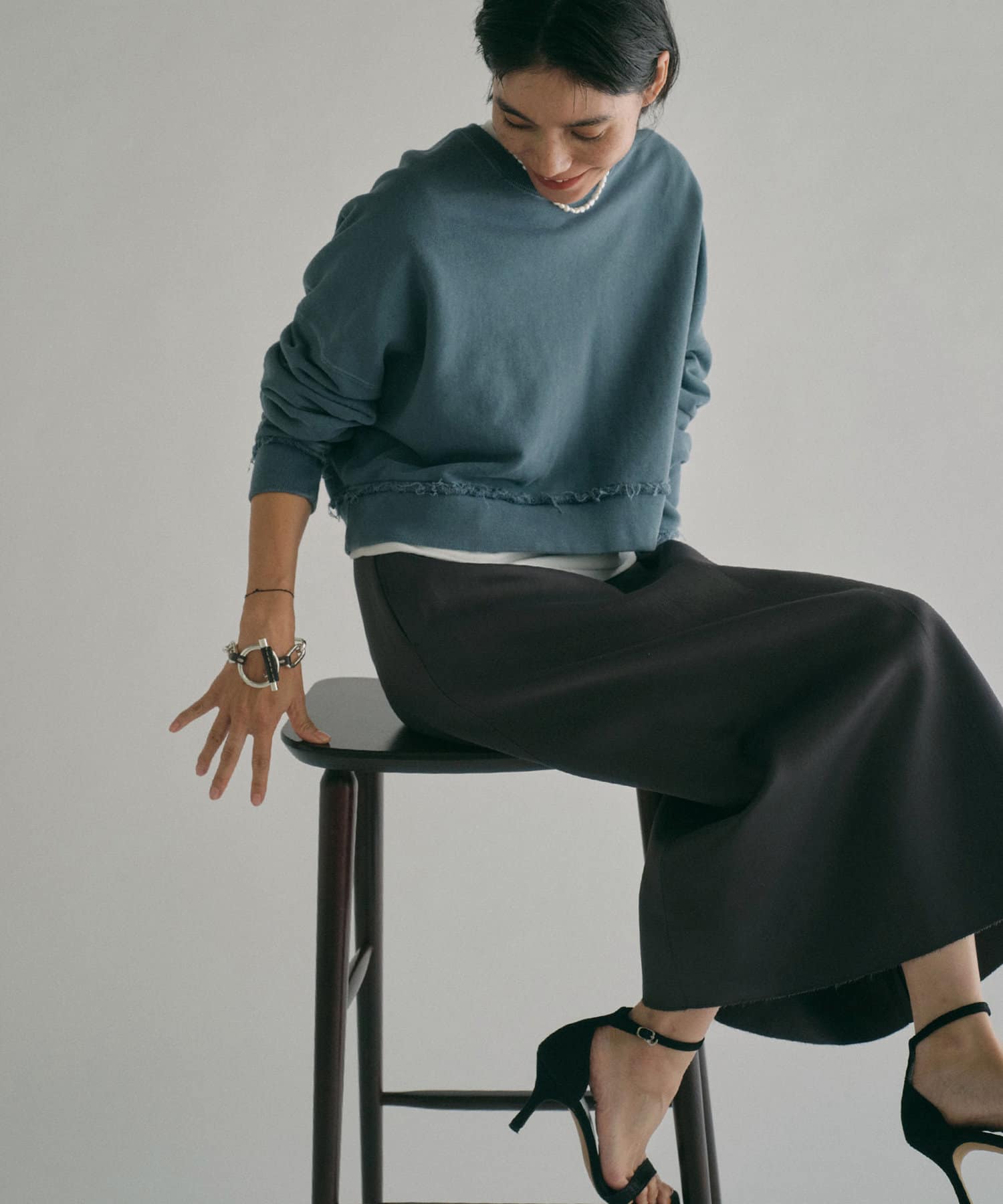 ■前ハギ、裾部分を断ち切り仕様にすることできれいな印象になり過ぎない仕上げに。