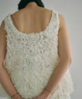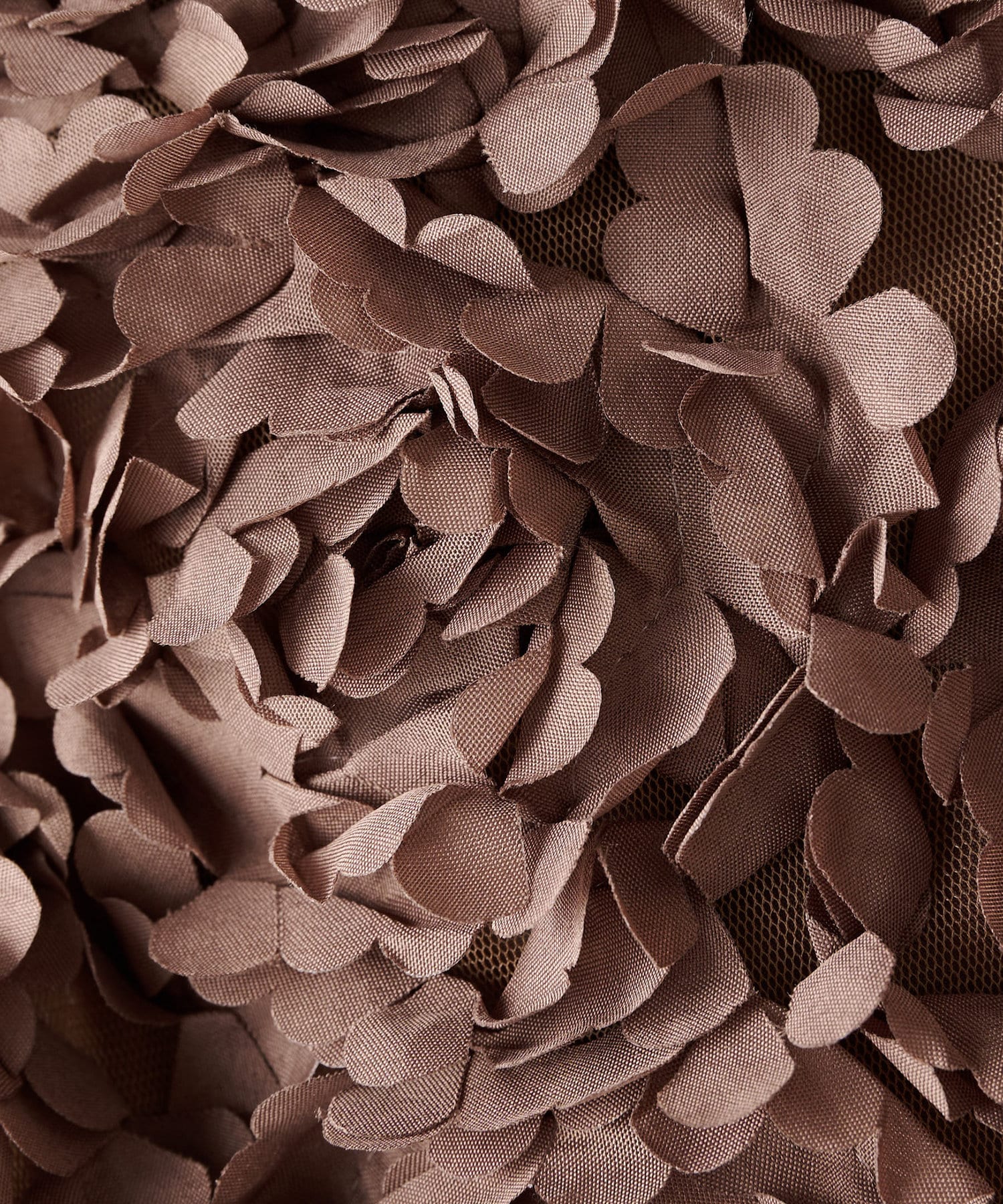 ■繊細ながらもタフなチュールに、カットしたファブリックを縫い付けた生地は、華やかさと豊かな立体感が特徴。