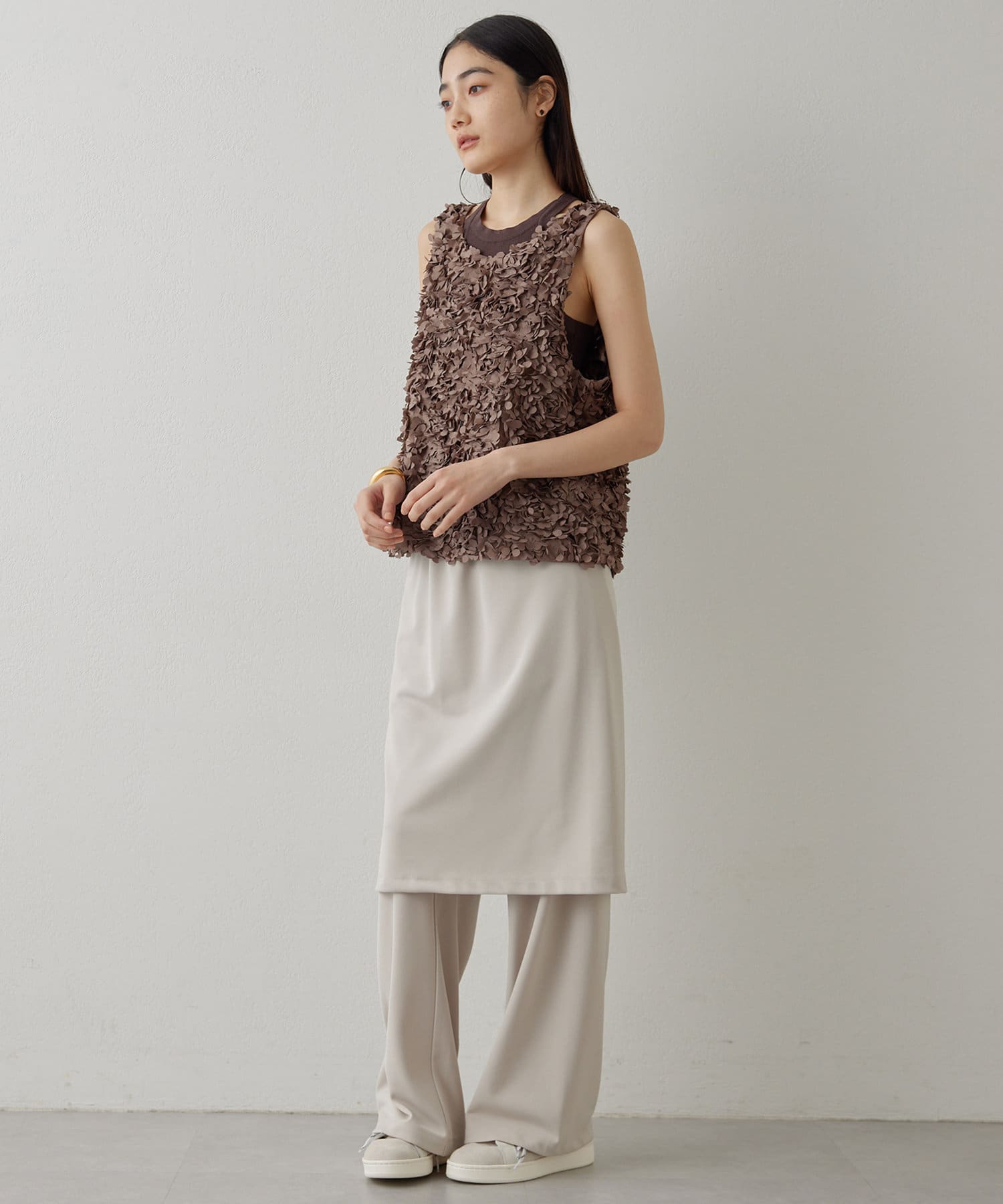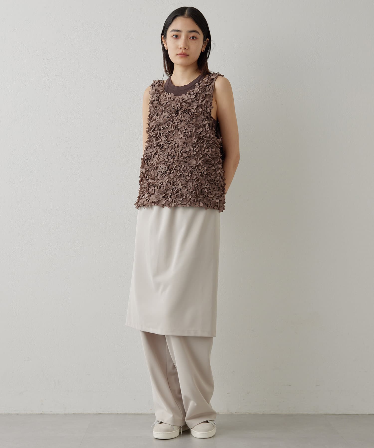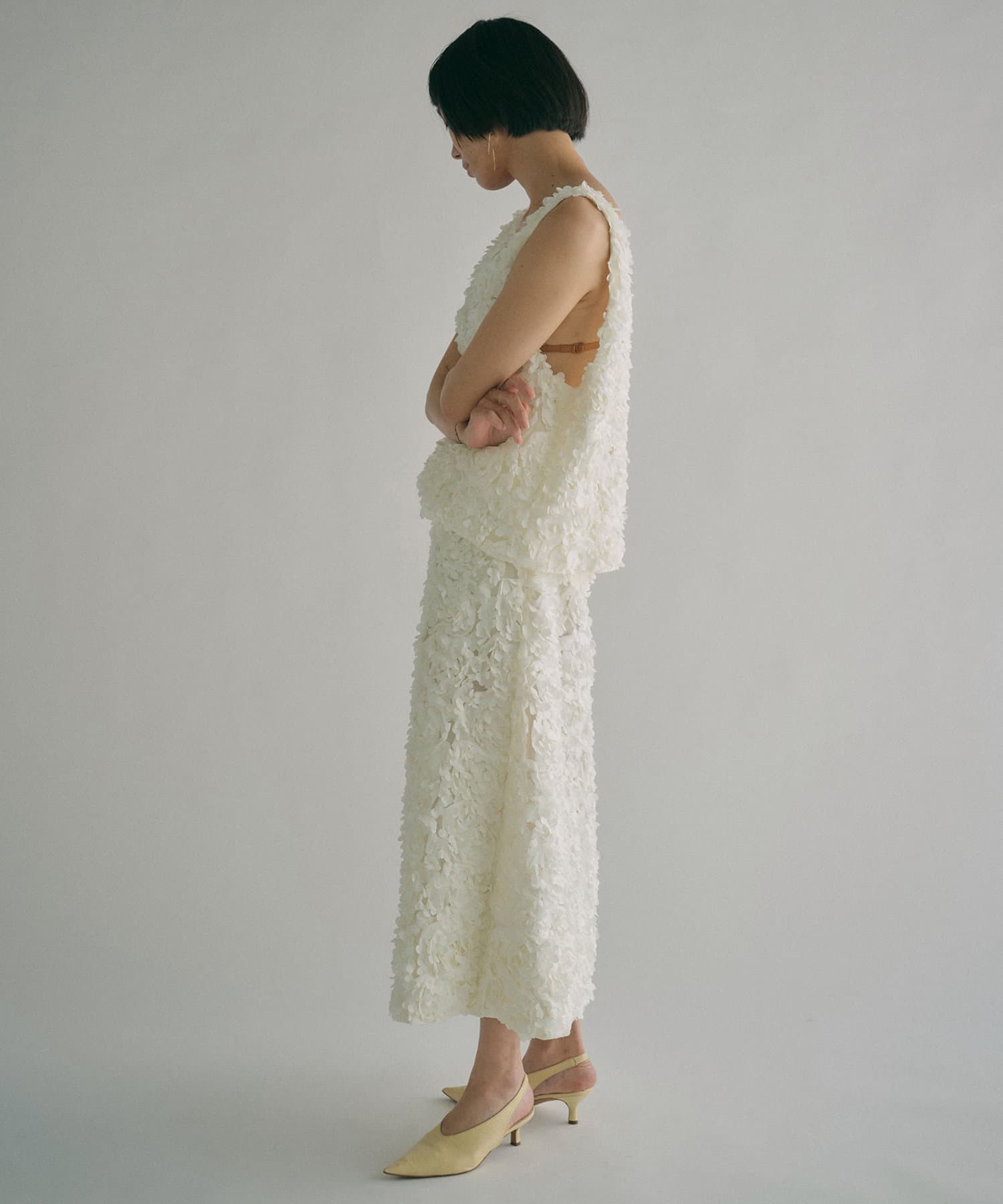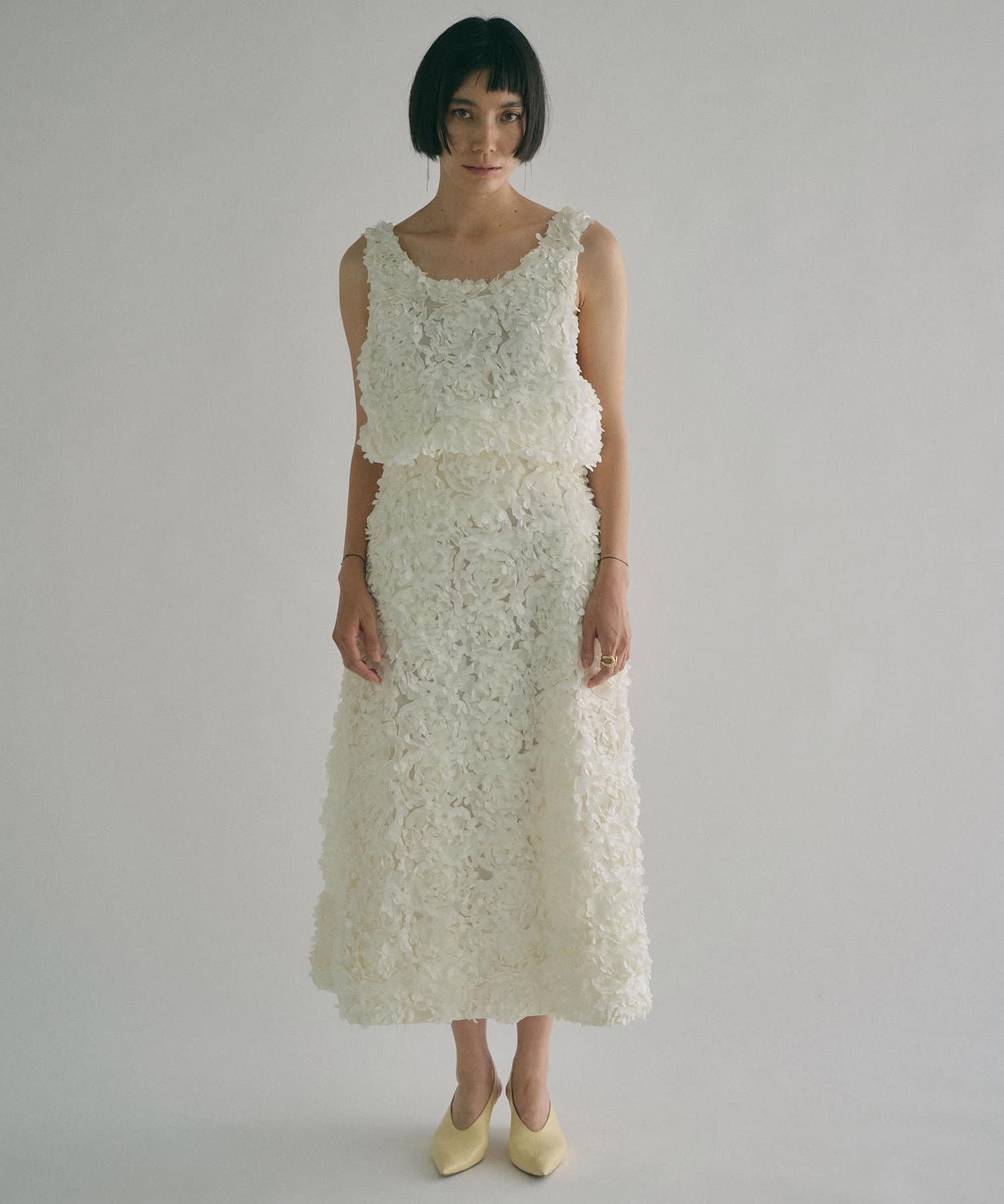 ■同素材の【GEMINI】フラワーモチーフスカート(ブランド品番:WGG1042501A0002)と合わせてワンピースのように着用いただくのもおすすめ。