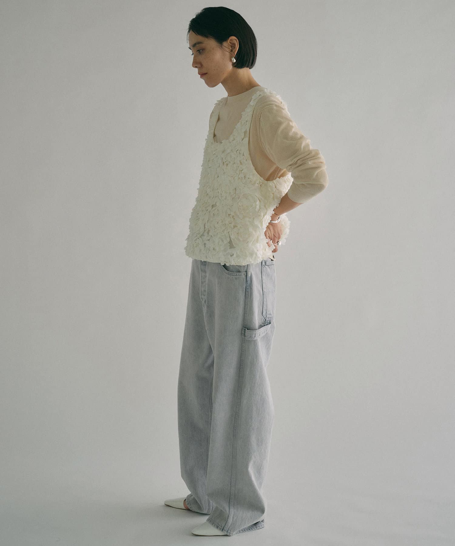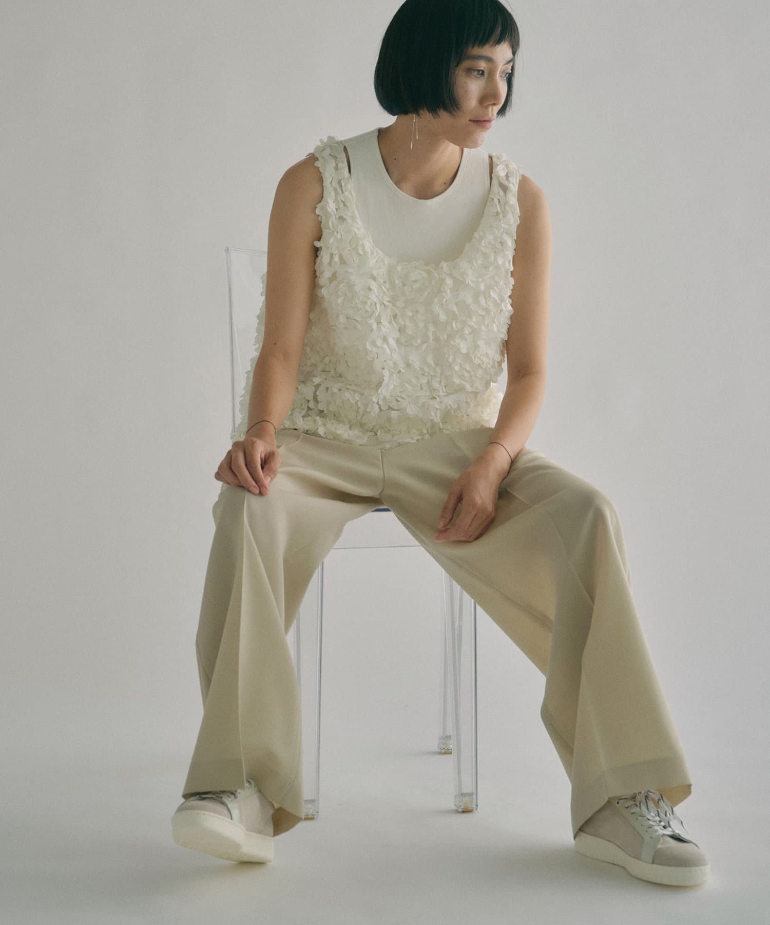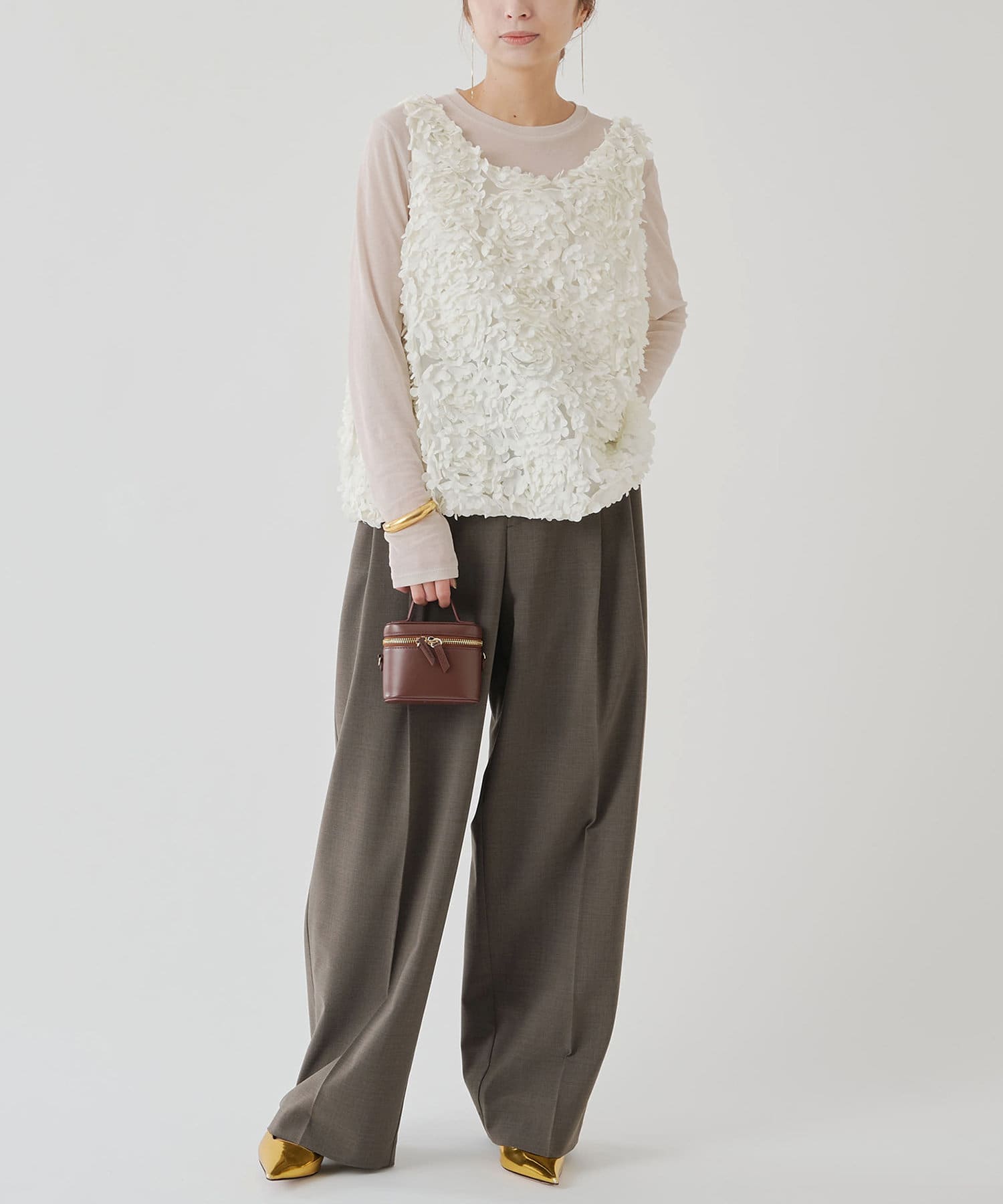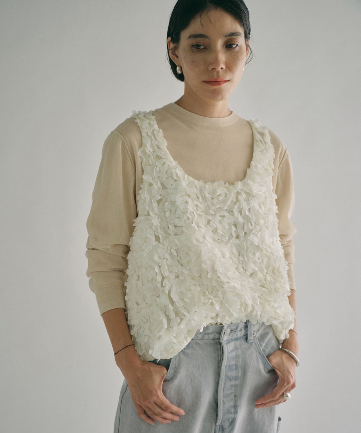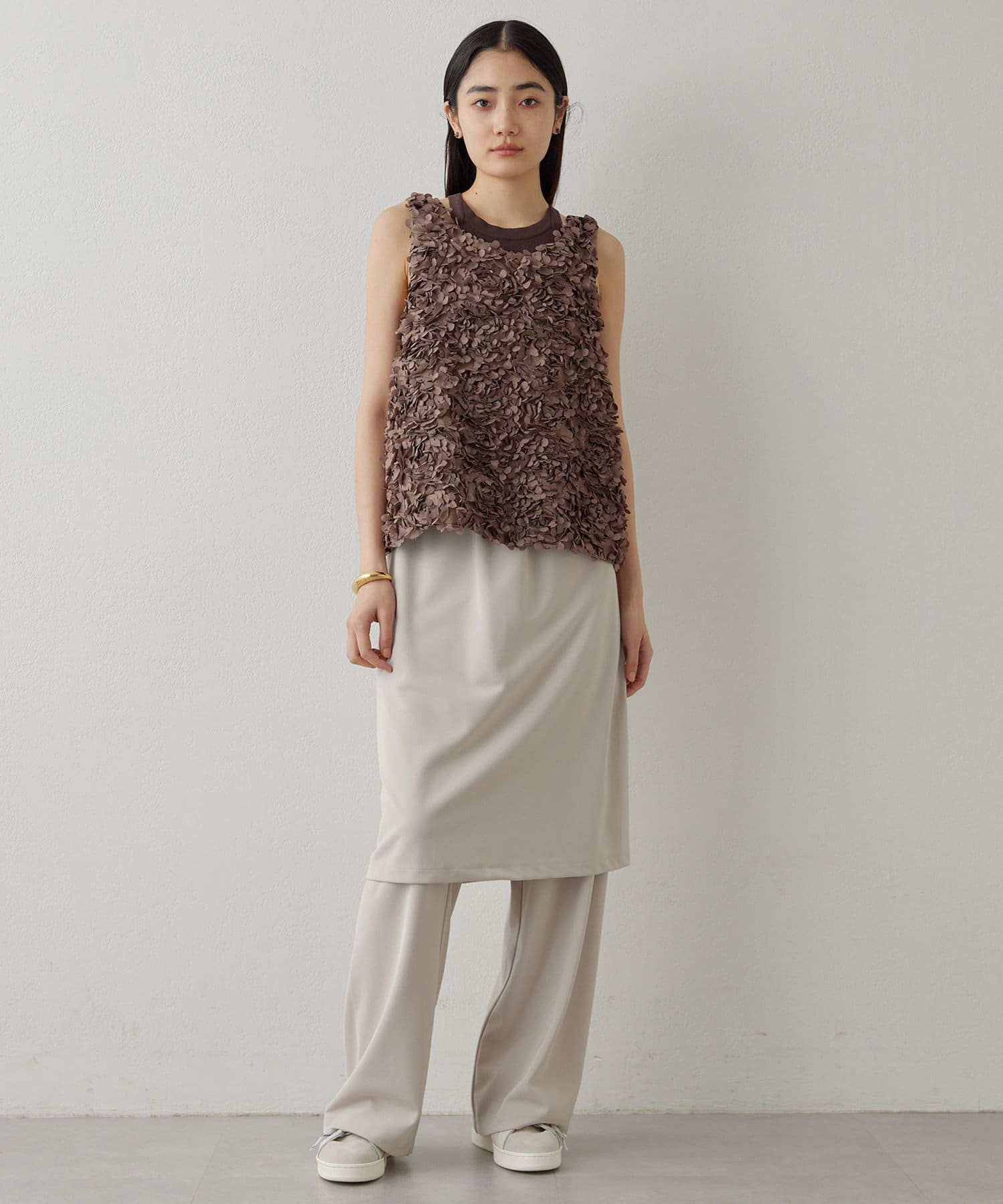 ■同素材の【GEMINI】フラワーモチーフスカート(ブランド品番:WGG1042501A0002)と合わせてワンピースのように着用いただくのもおすすめ。