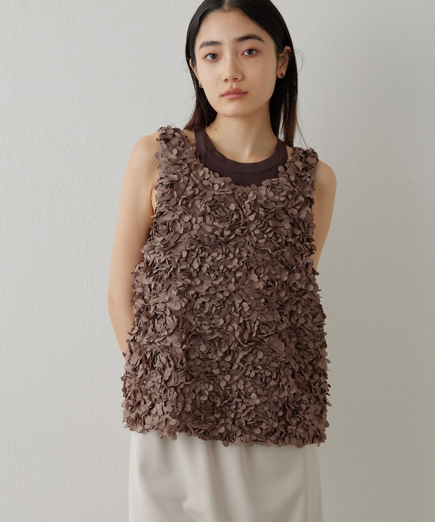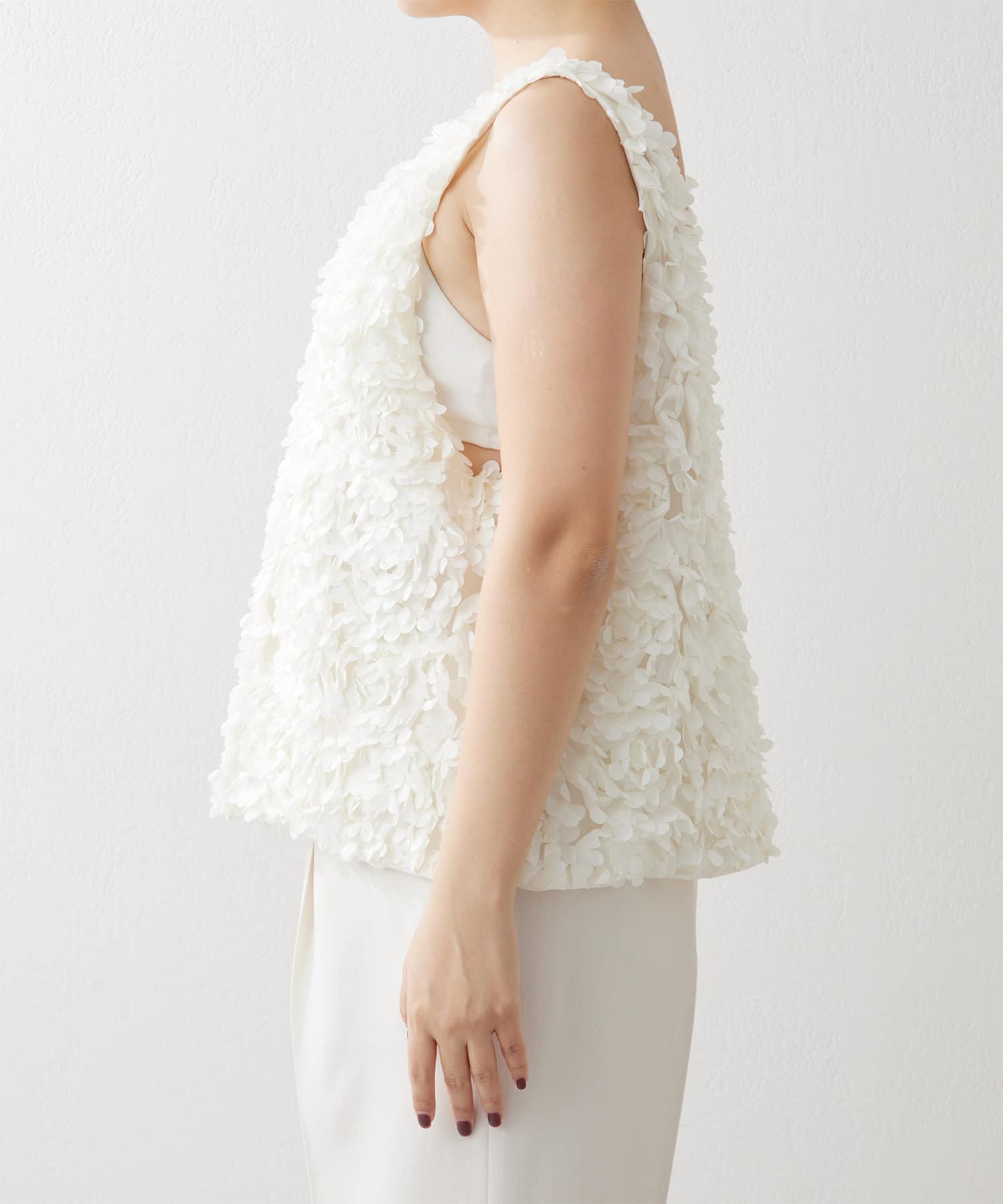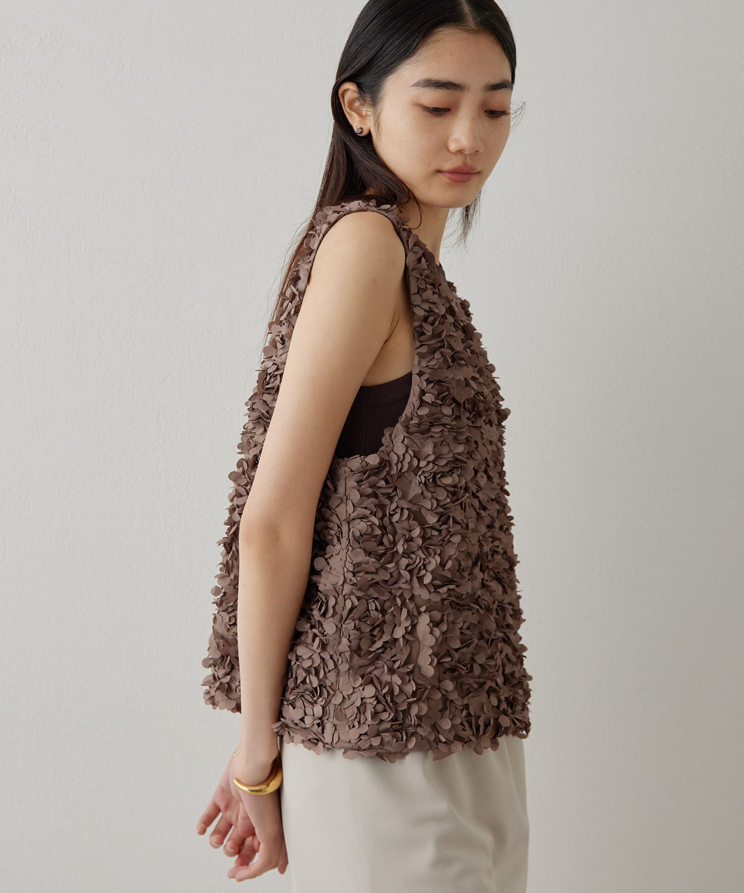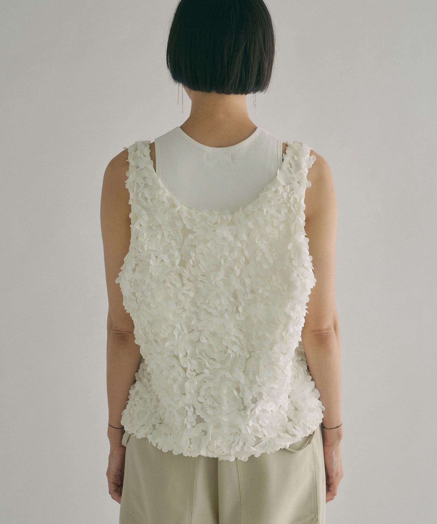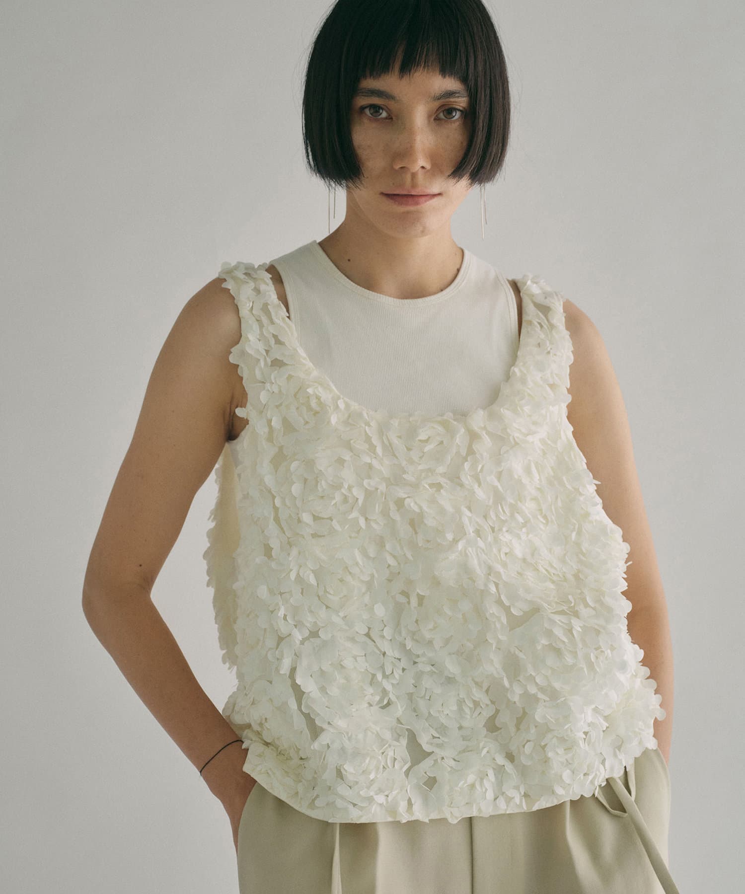 ■イタリアCAFISSI社のチュールベースの総刺繍生地を使用したスリーブレスブラウス。