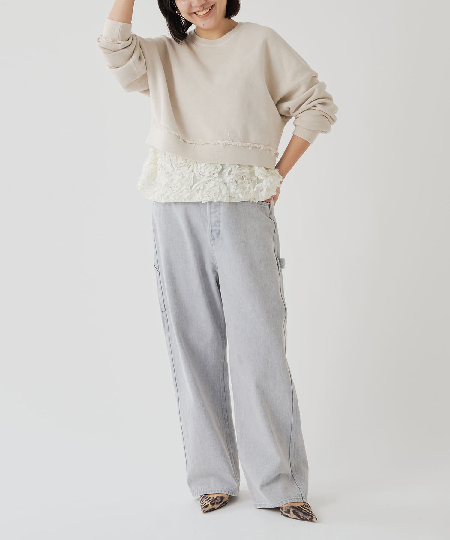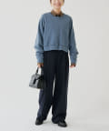 ■オーバーサイズのものをショート丈にしたようなシルエットはワイドボトムとも相性抜群。