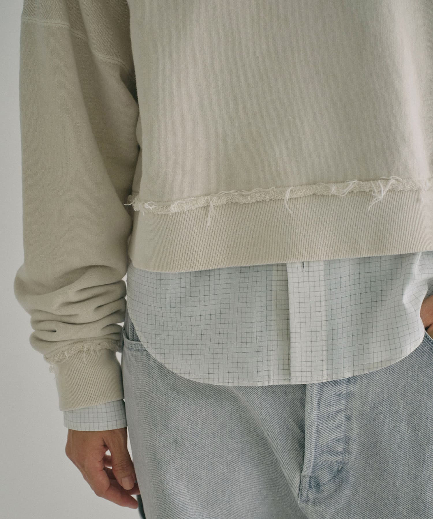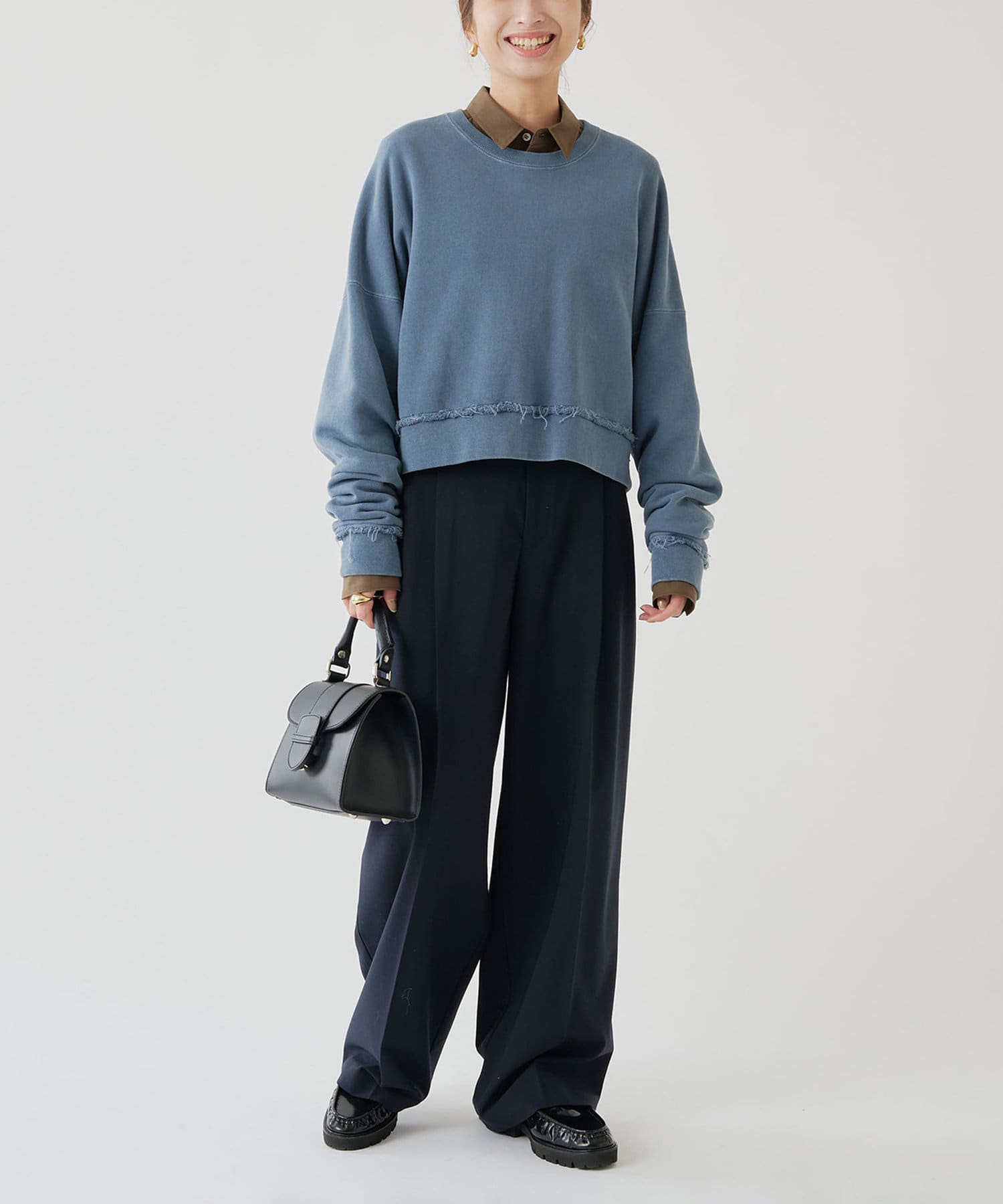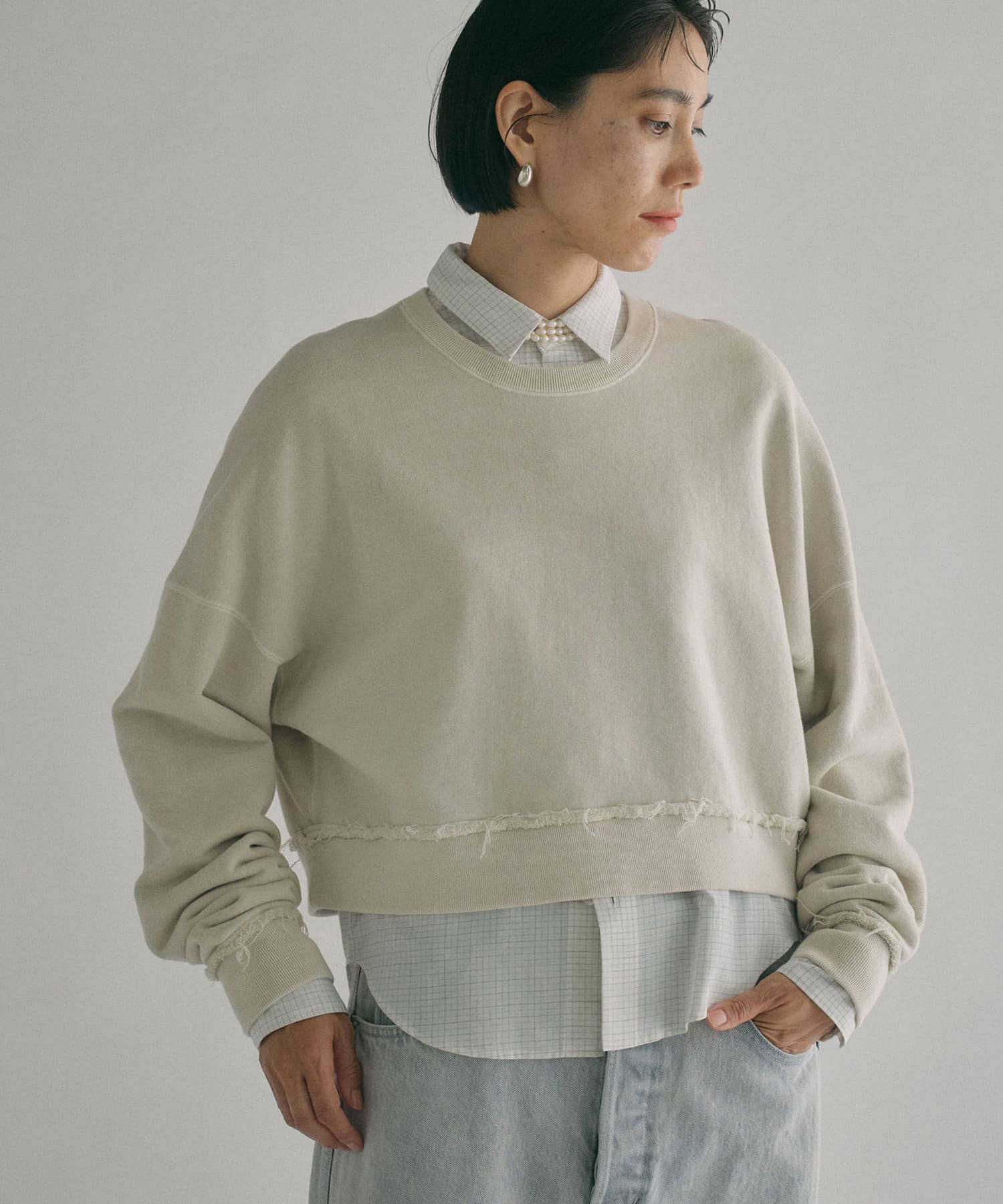 一枚でもレイヤードでも使いやすい、短丈オーバースウェット