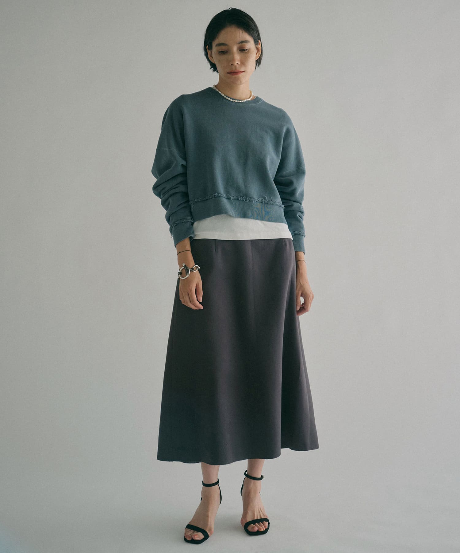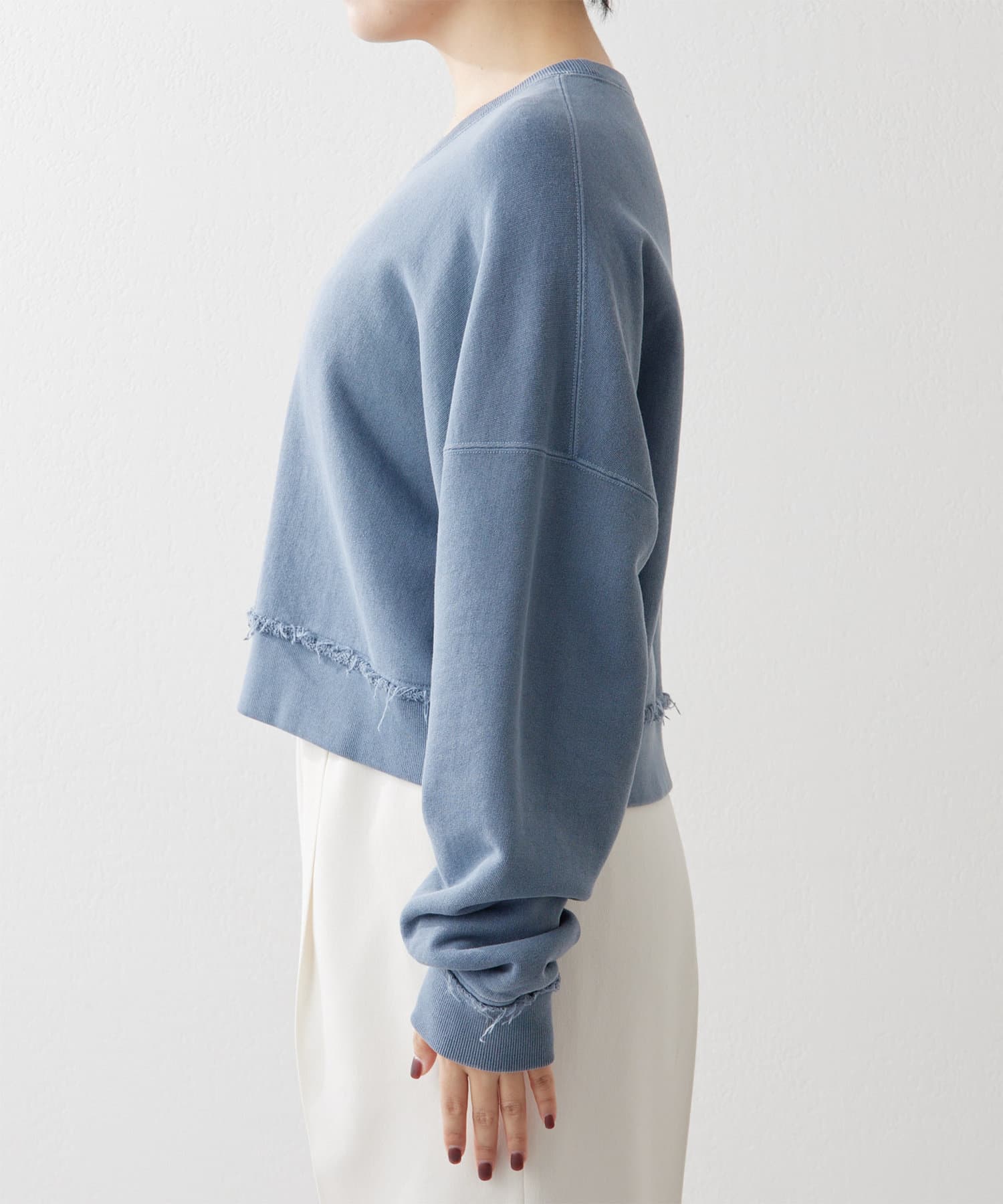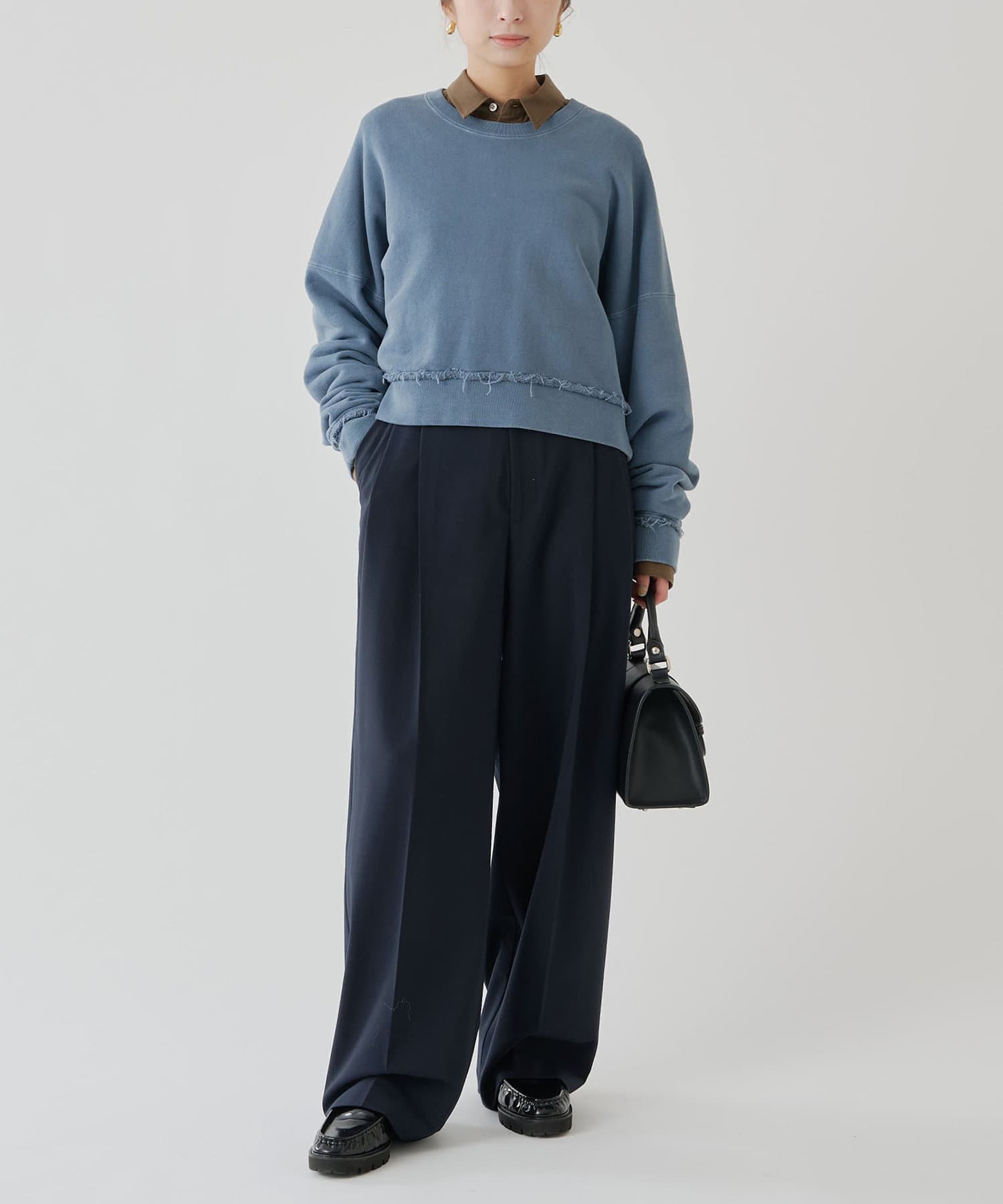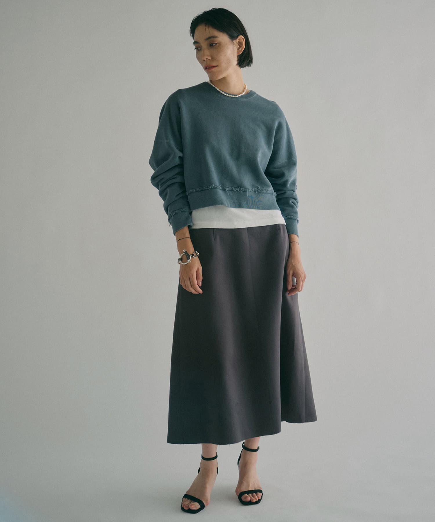一枚でもレイヤードでも使いやすい、短丈オーバースウェット