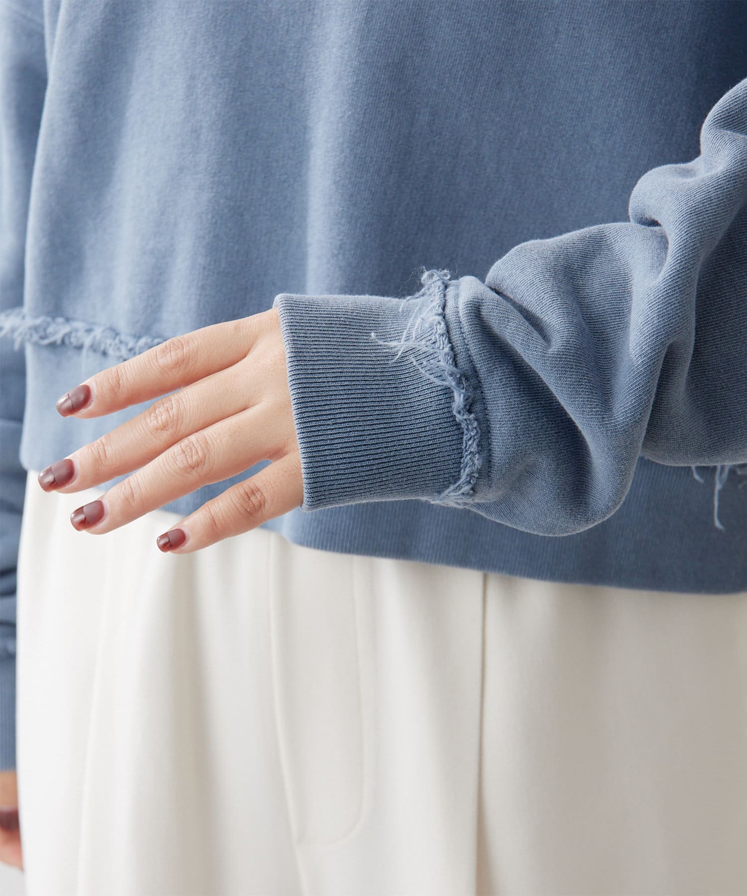 ■ガーメントダイによる独特の色味と、袖や裾の裁ち切り仕様がポイント。