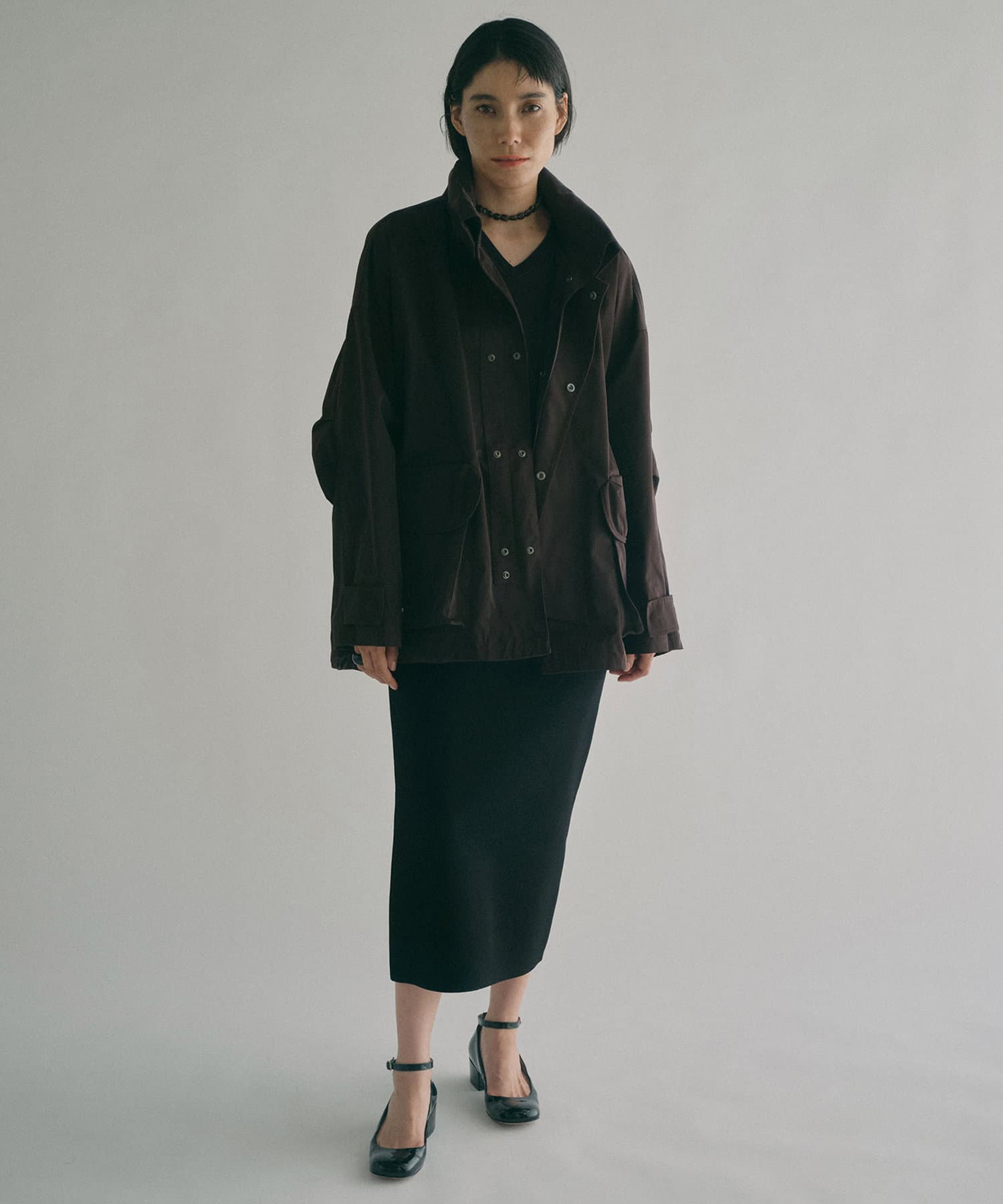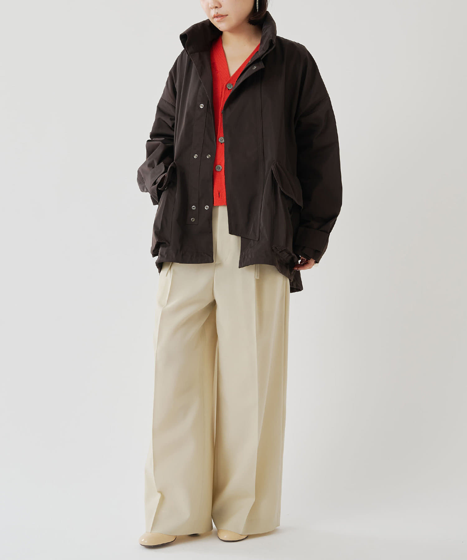 ■裾のストリングでシルエットを変化でき、カジュアルコーデからきれいめコーデの外しにもおすすめの一着。