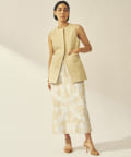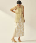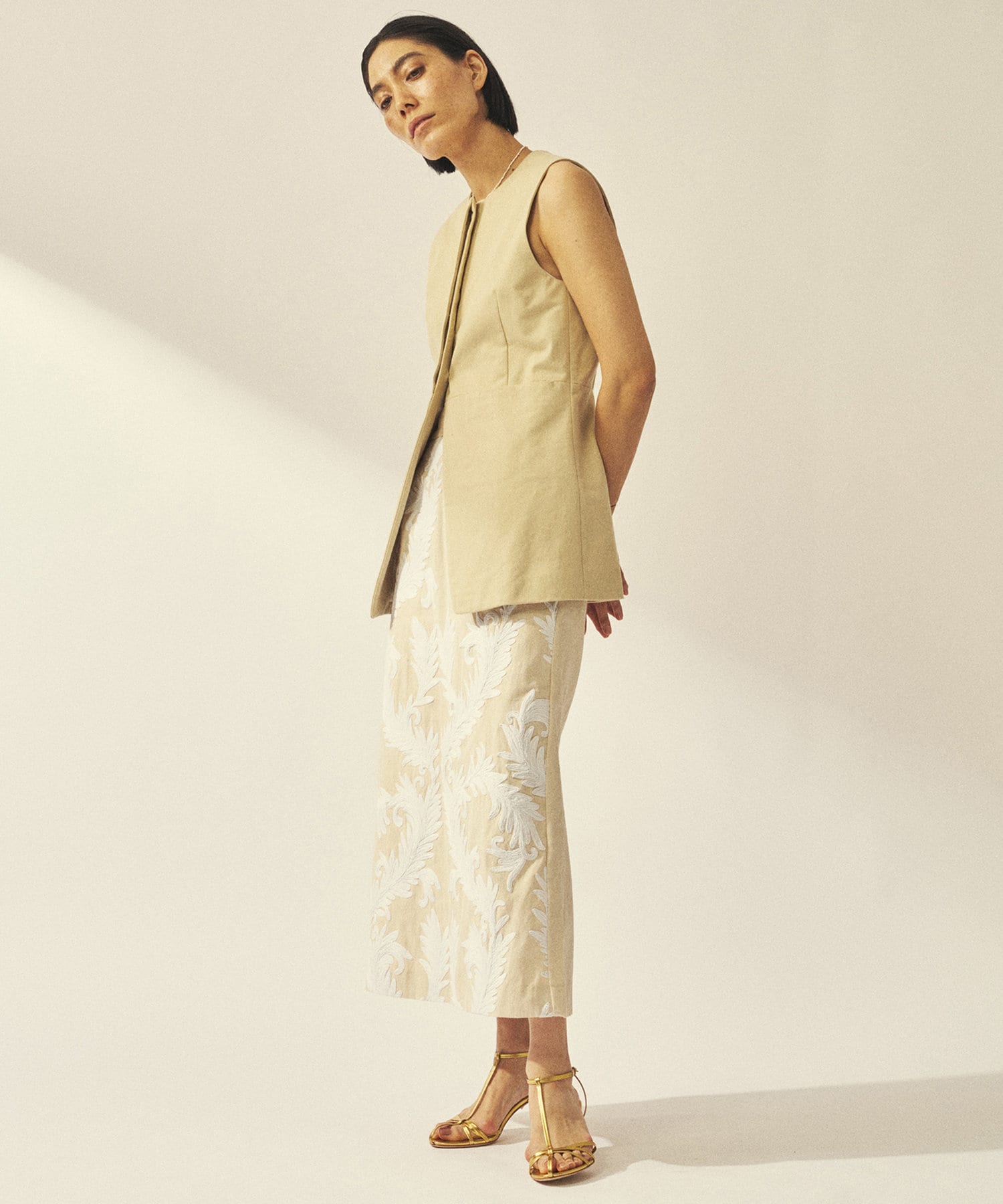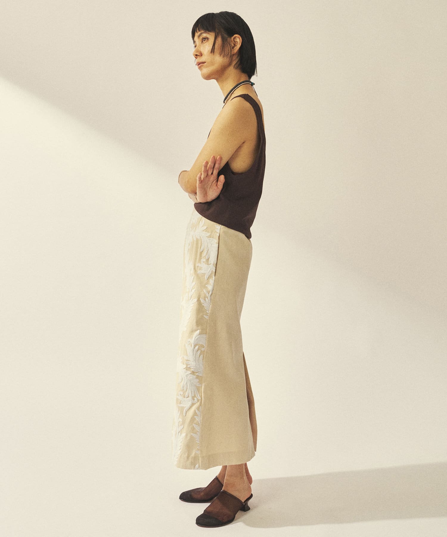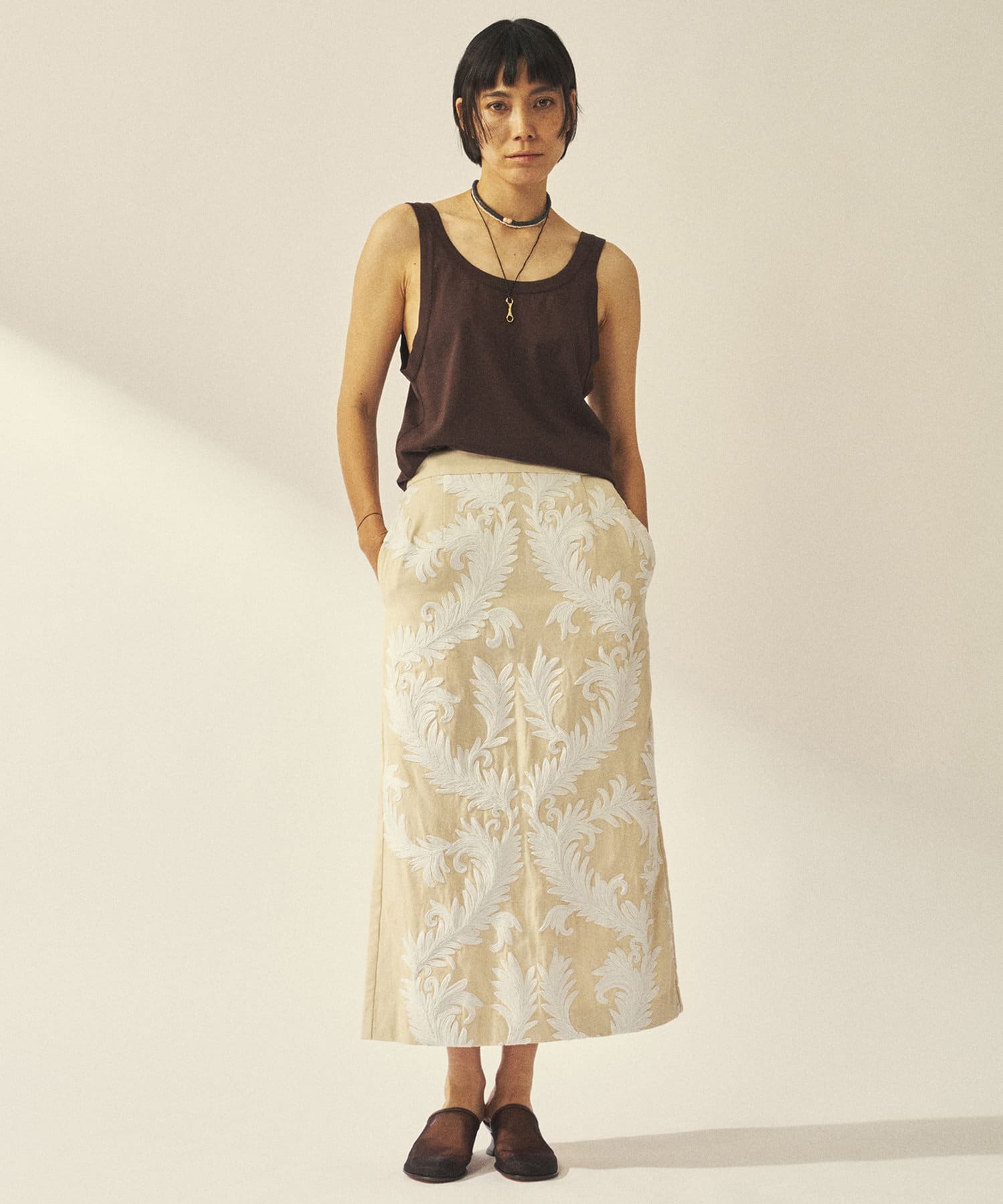 ■コットンオックスの生地にコード刺繍を施したタイトスカート。