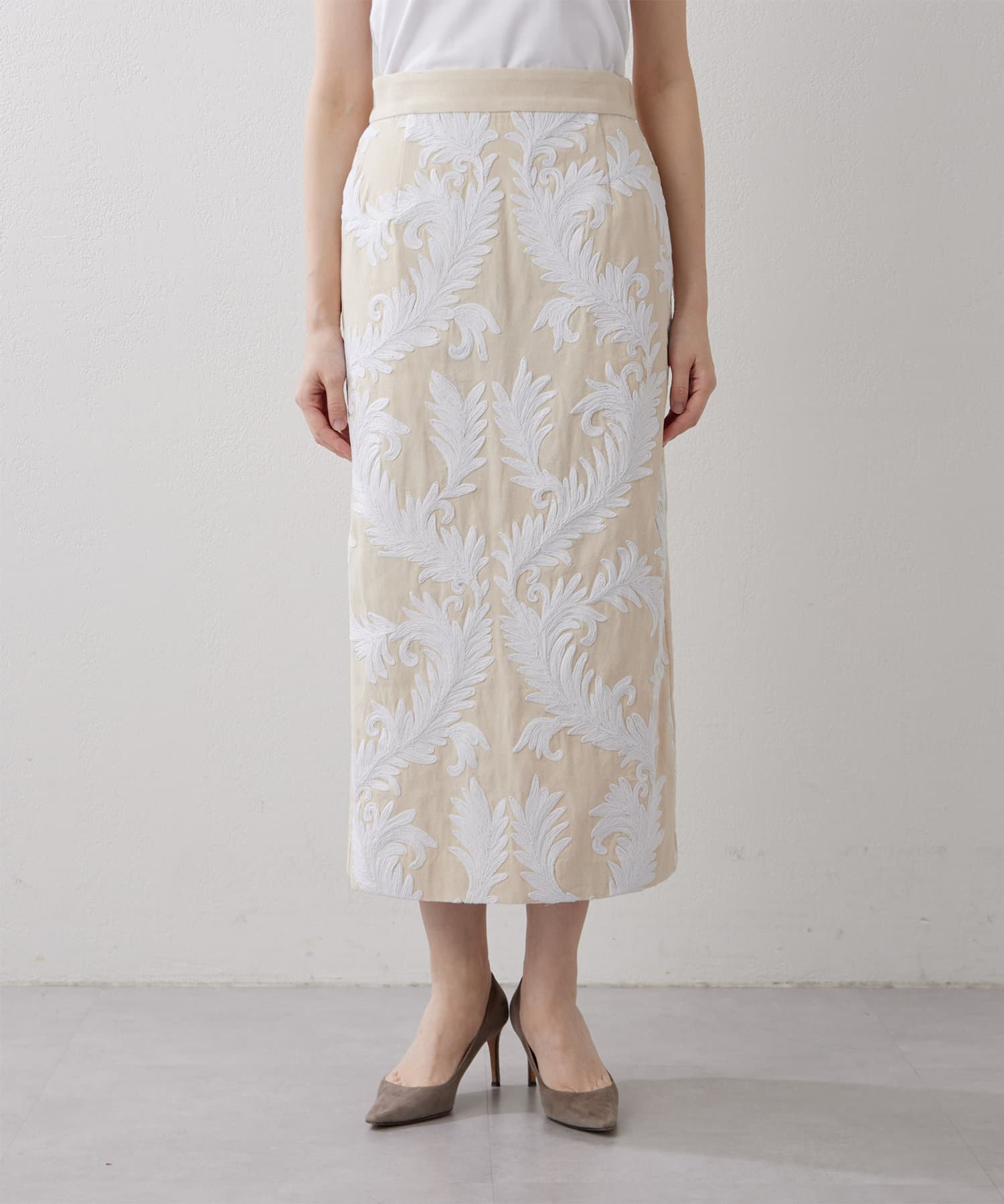 華やかなコード刺繍が目を惹く、着映えタイトスカート