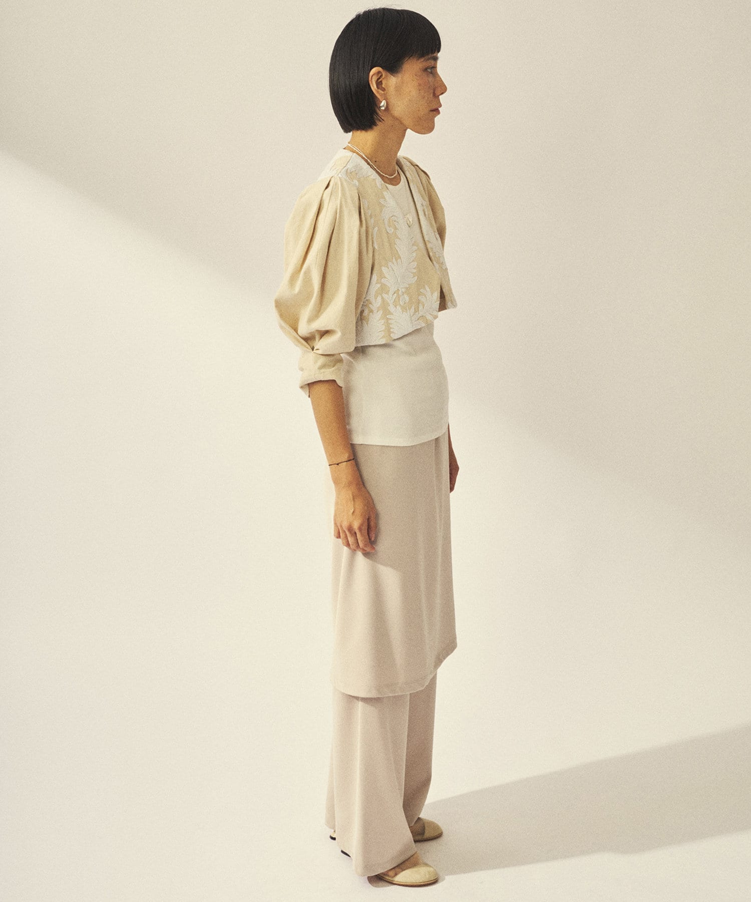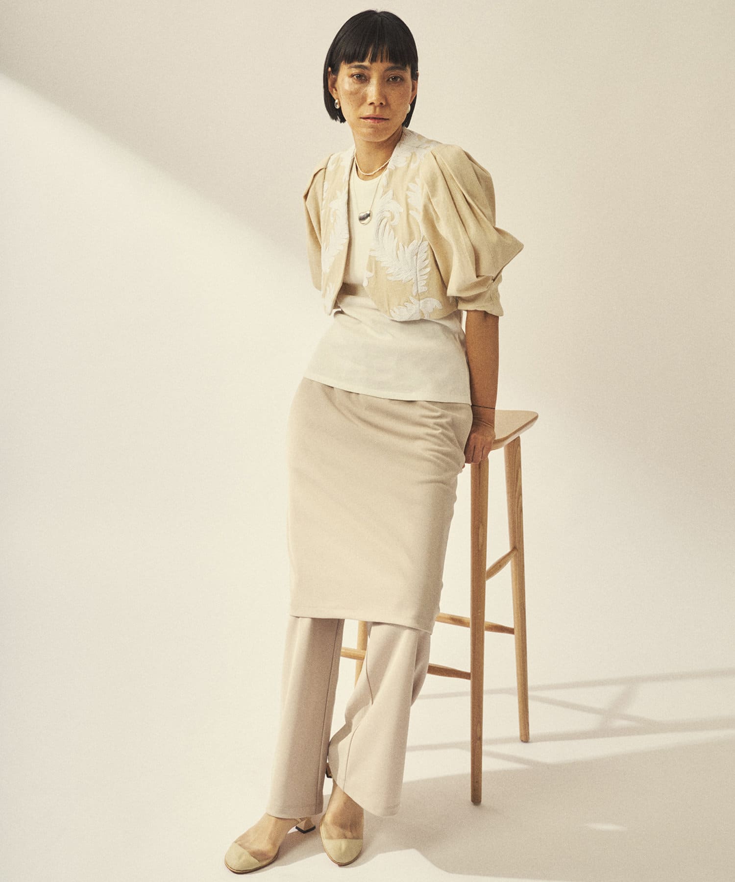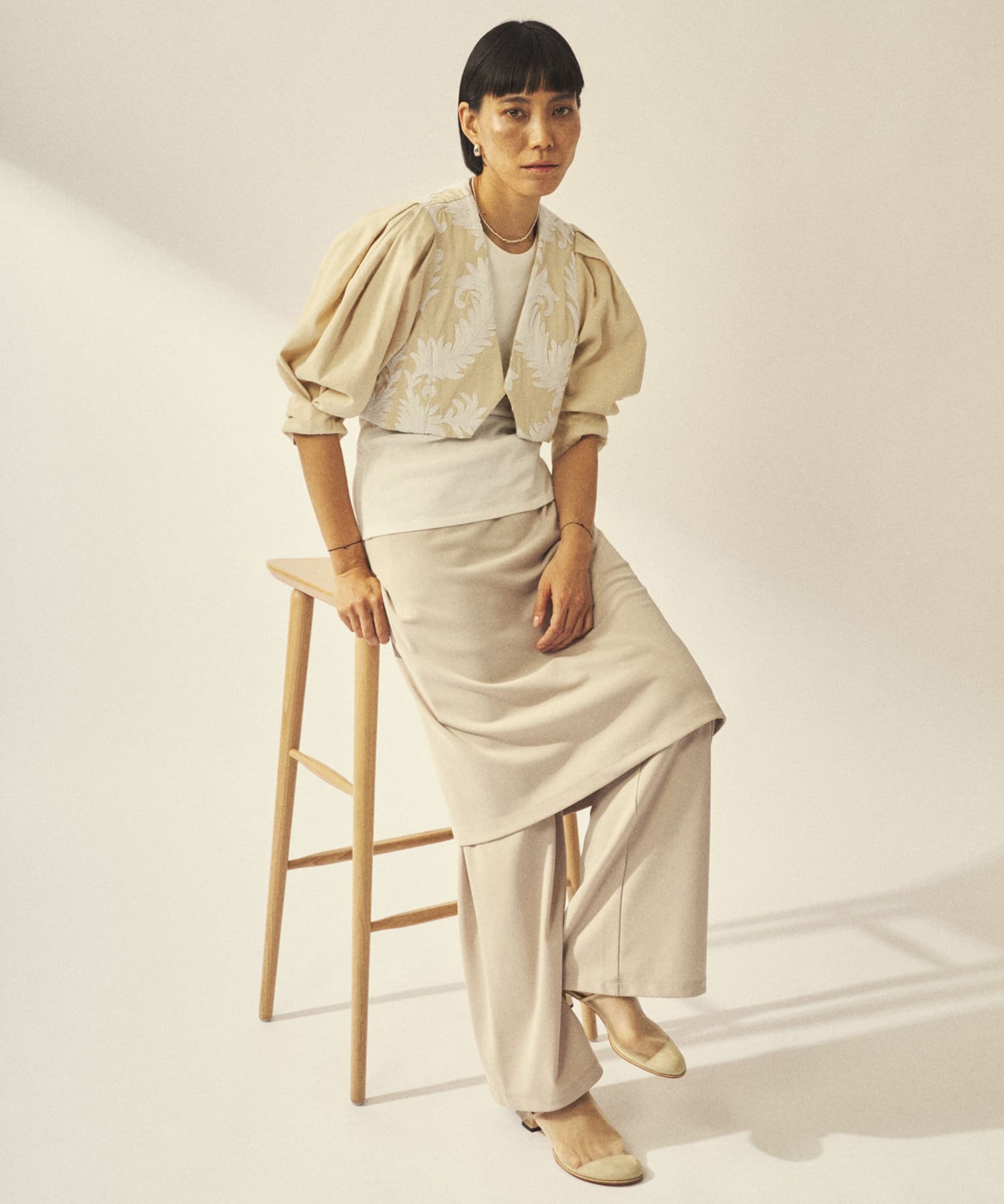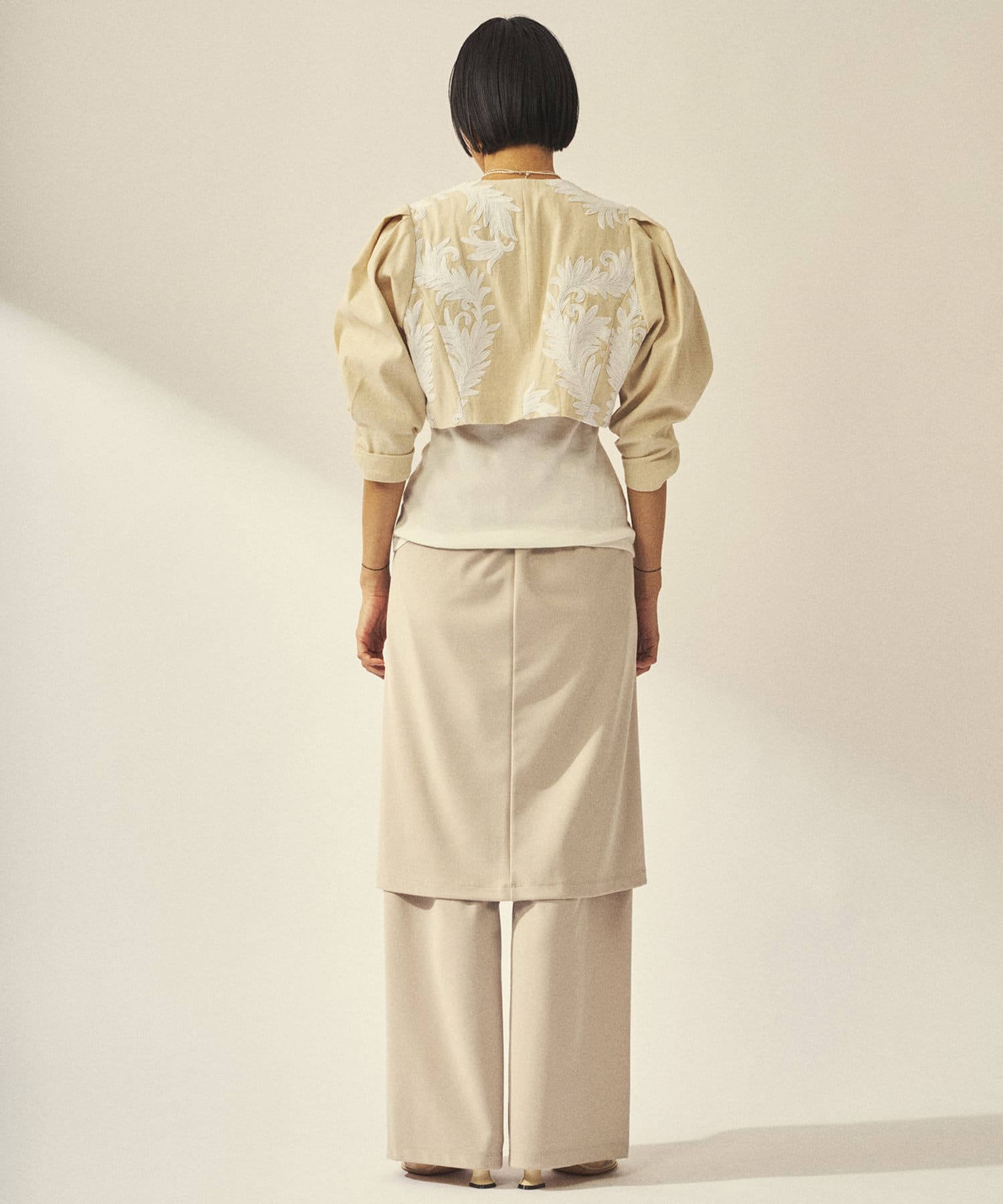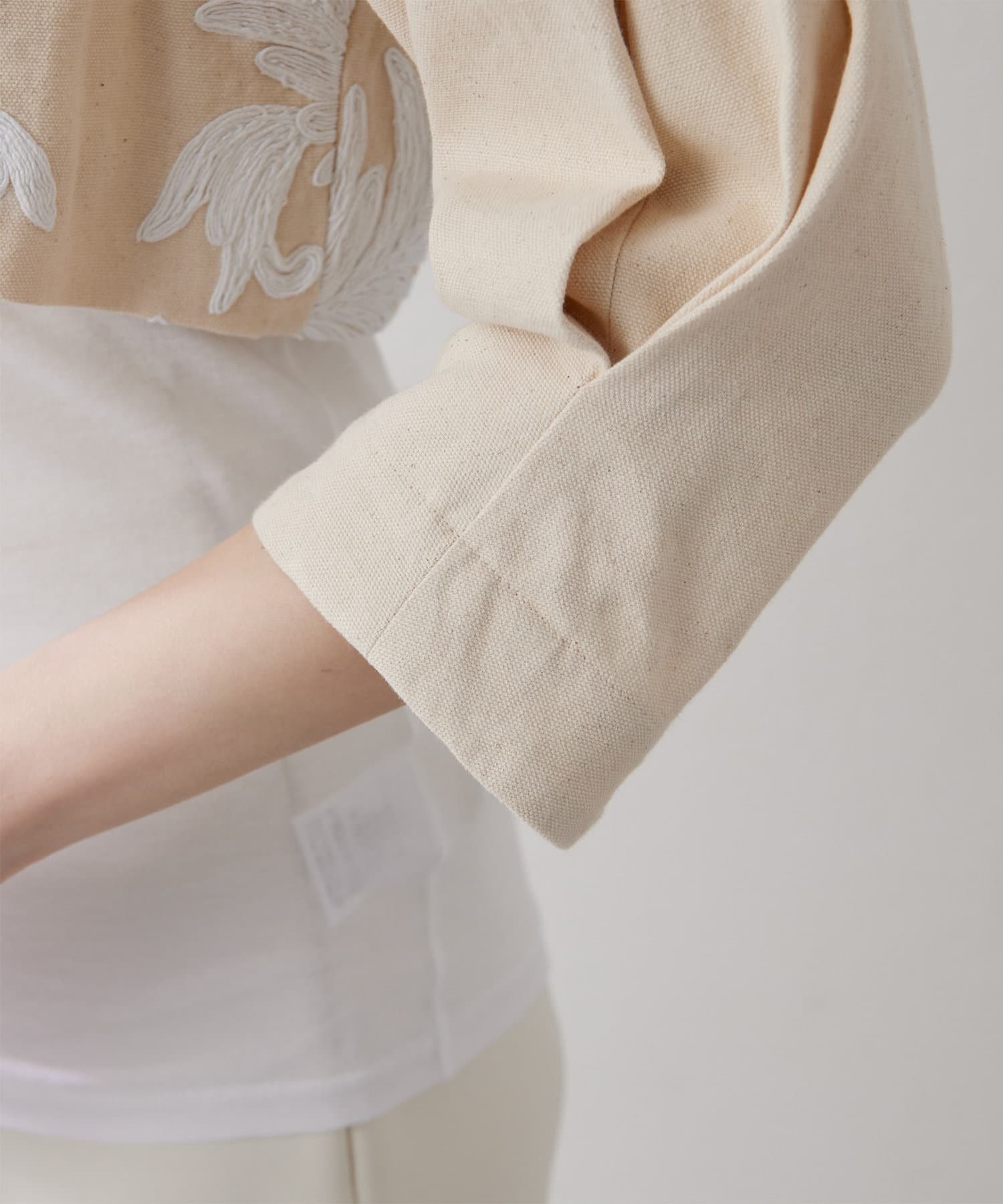 ■コットンオックスの生地にコード刺繍を施したボレロジャケット。