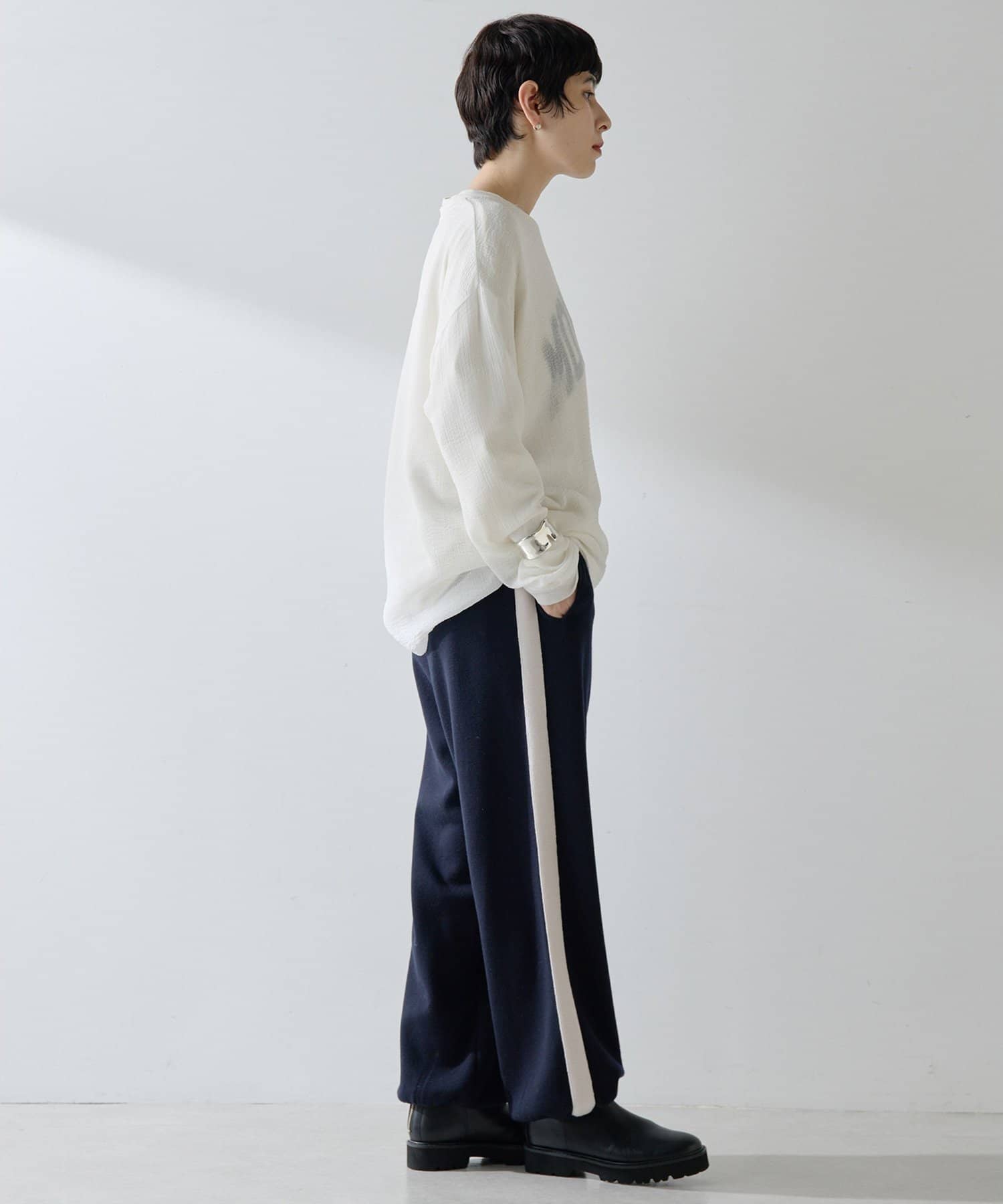 ■裾を少し絞ることでややすっきりと見せ、様々なシューズとのコーディネートを楽しめるアイテム。
