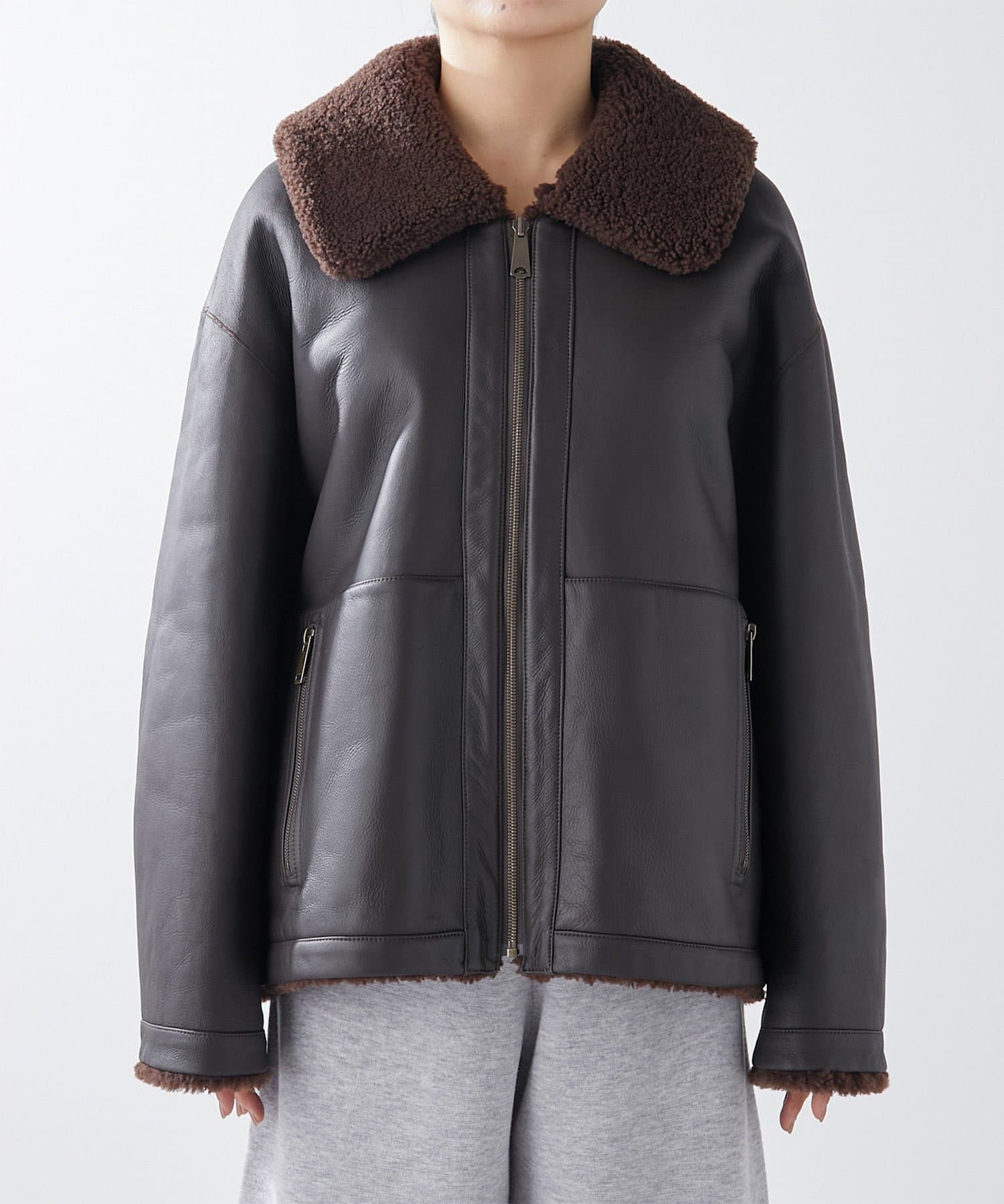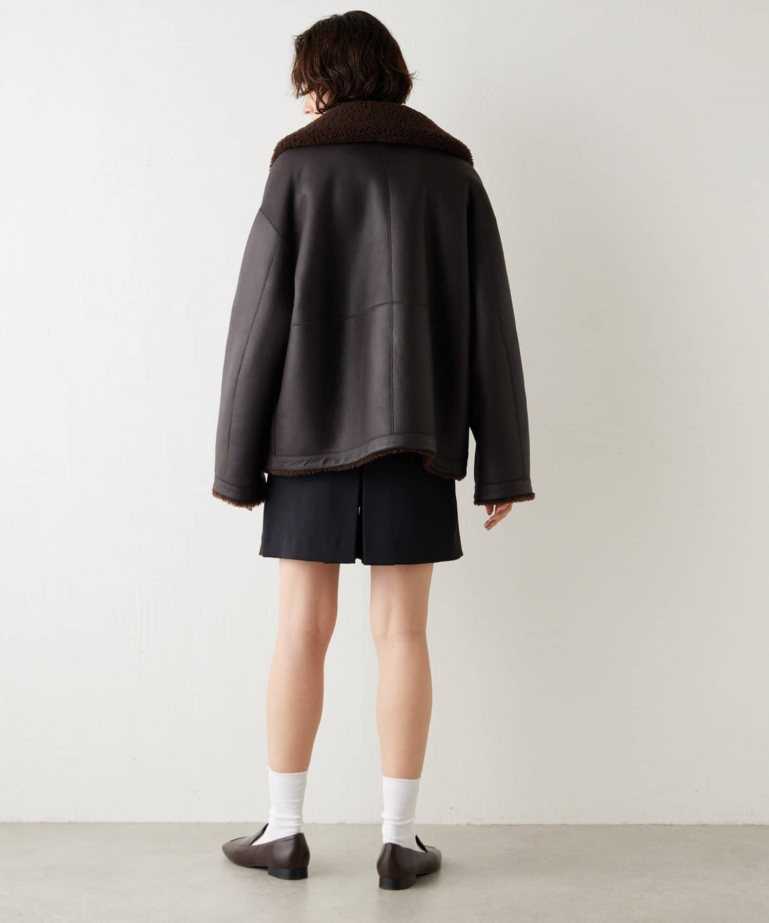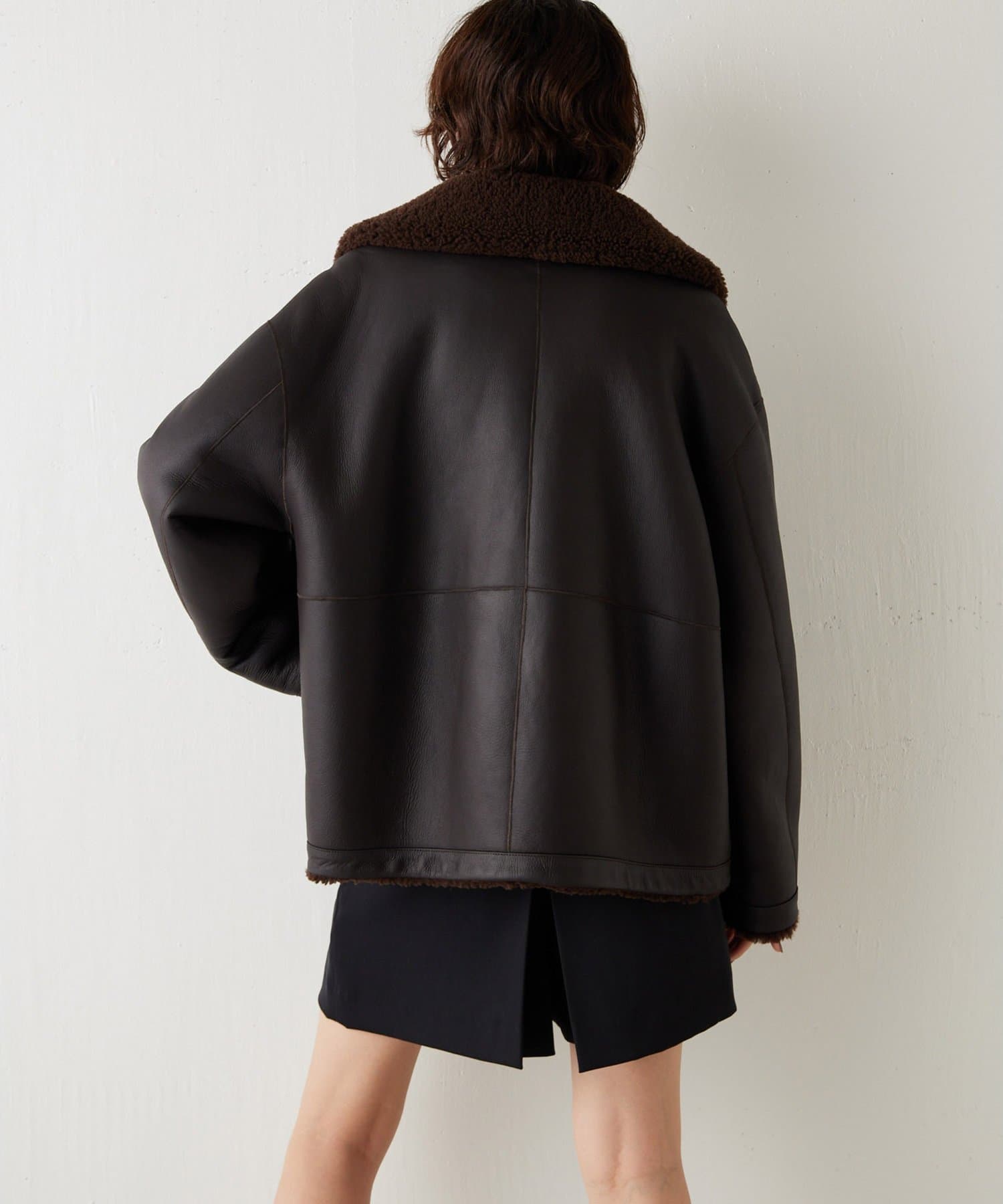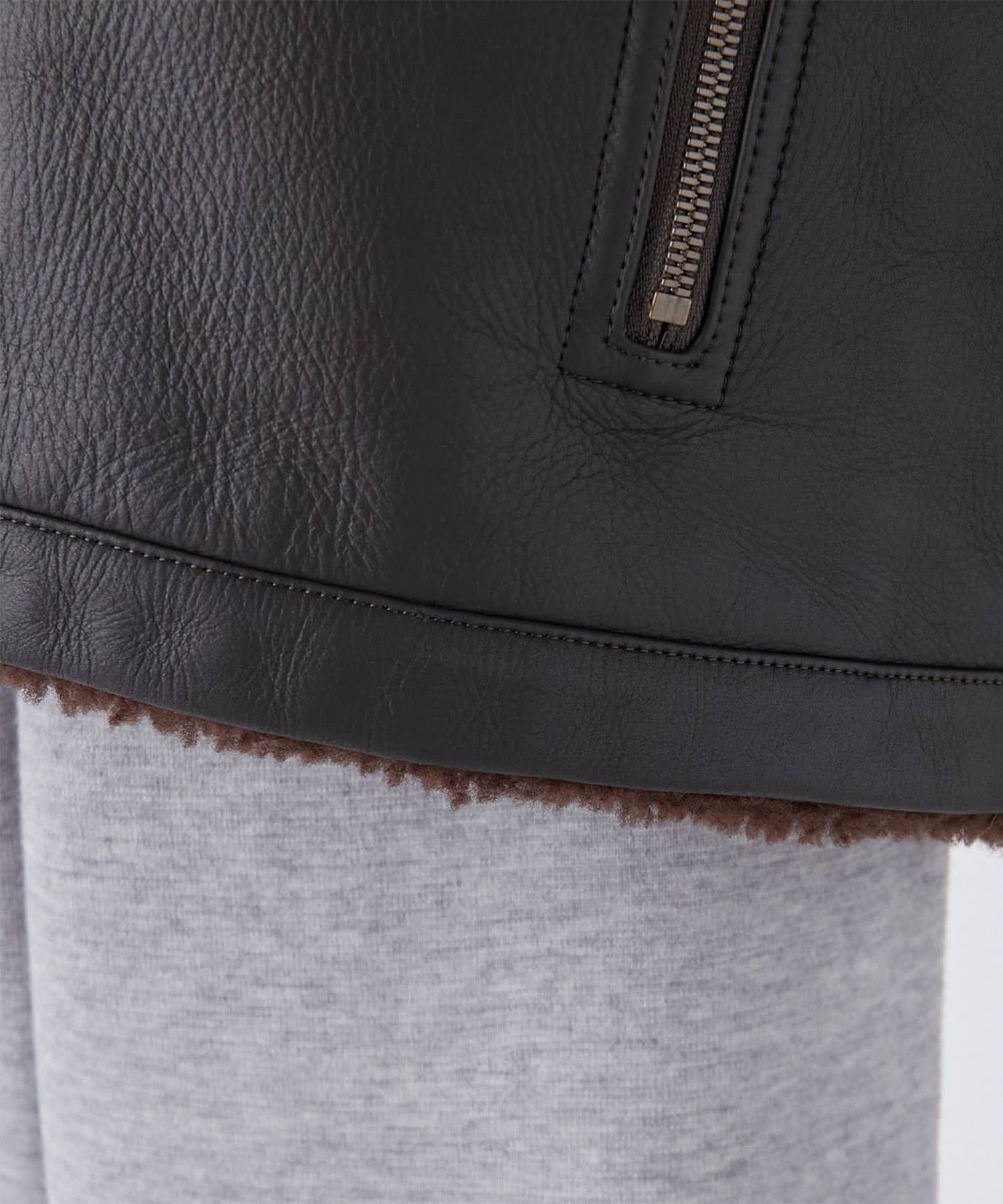 ■レザー面はボンバージャケットのようなややハードな表情を楽しめ、毛足面を表にすればボアブルゾンのようなスポーティな雰囲気に。