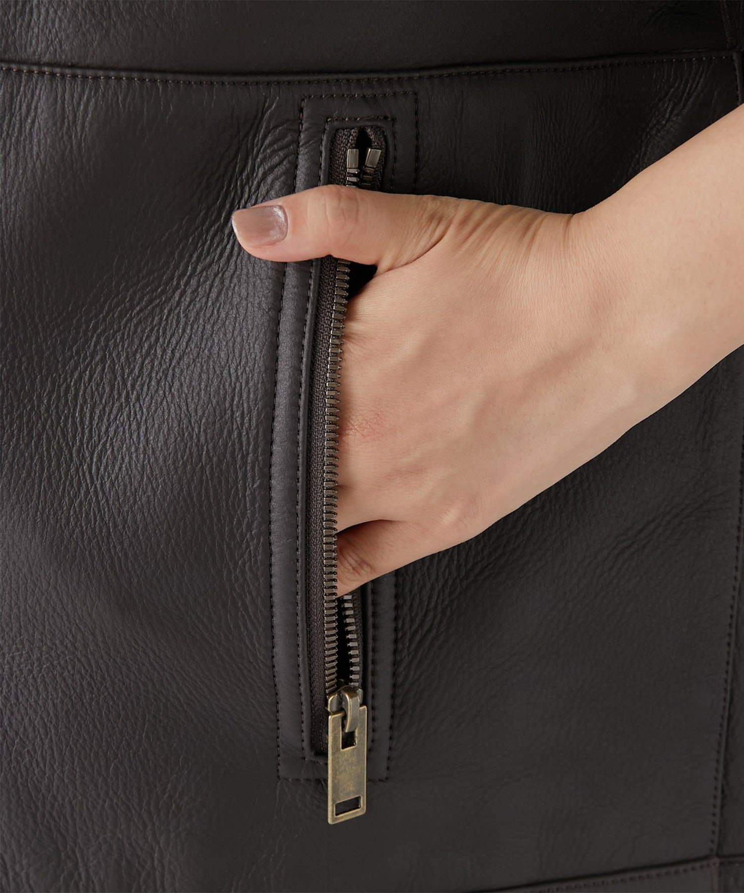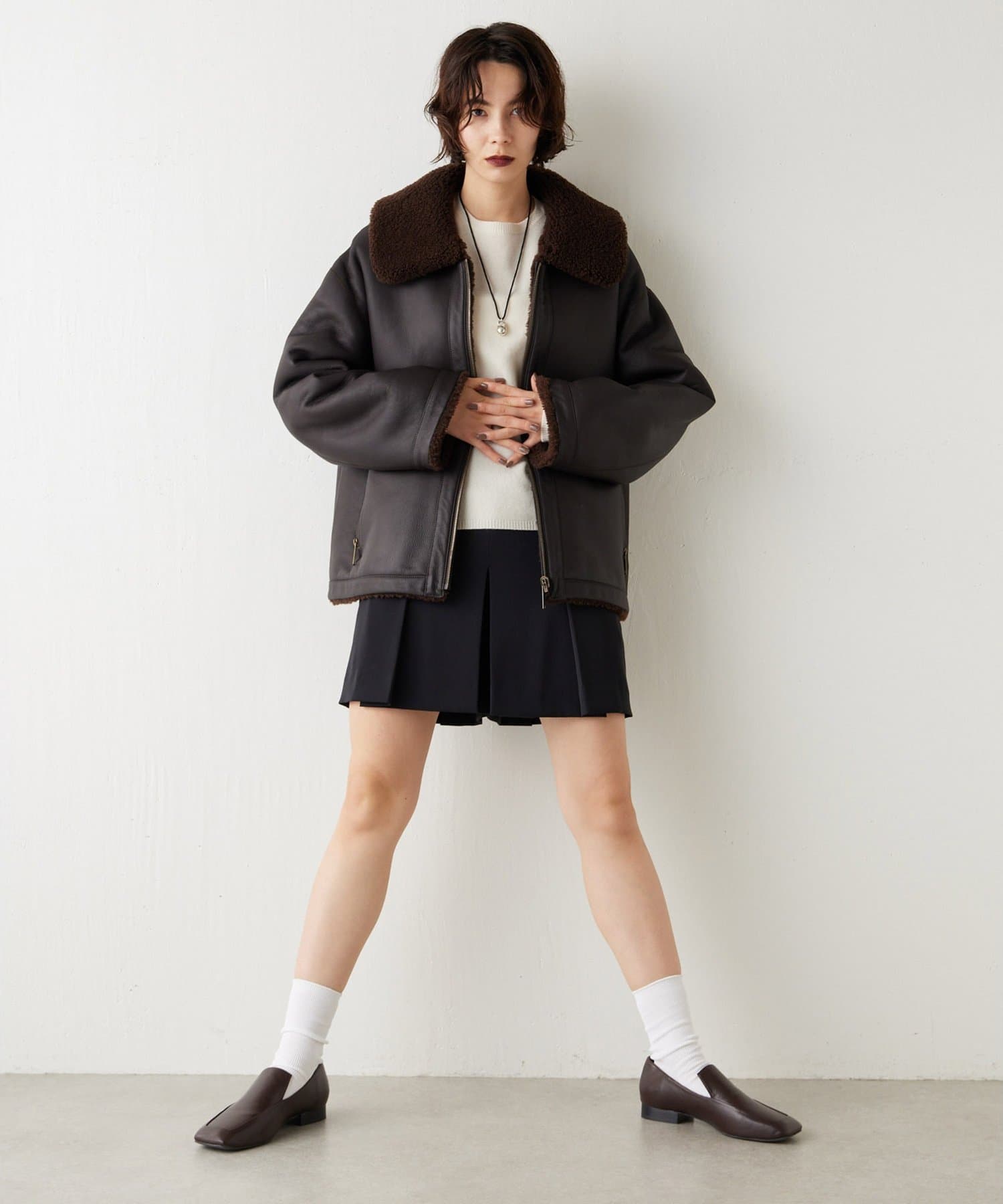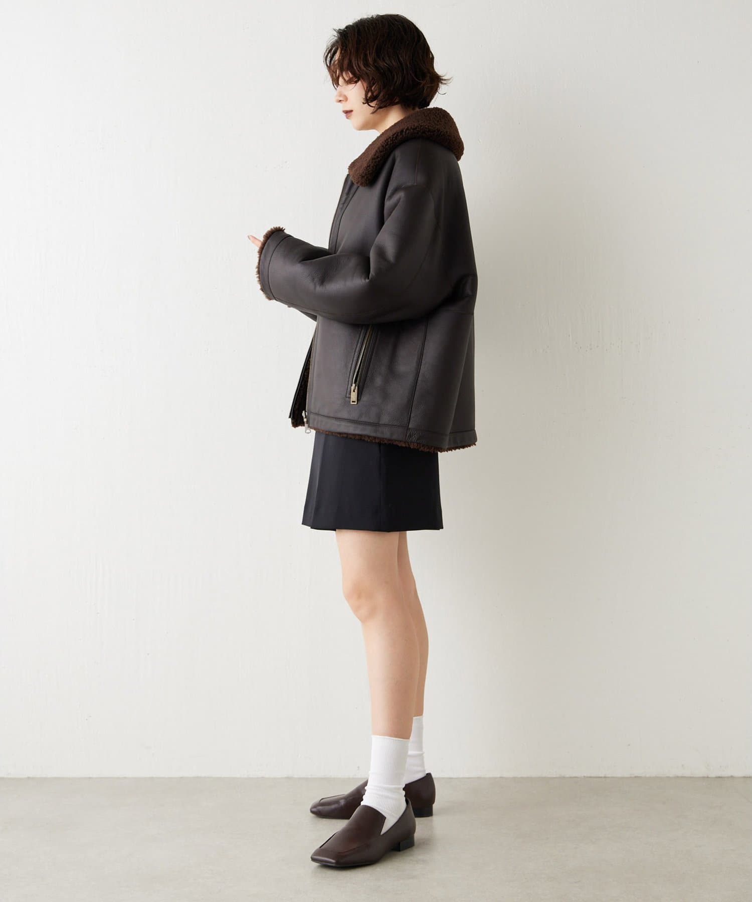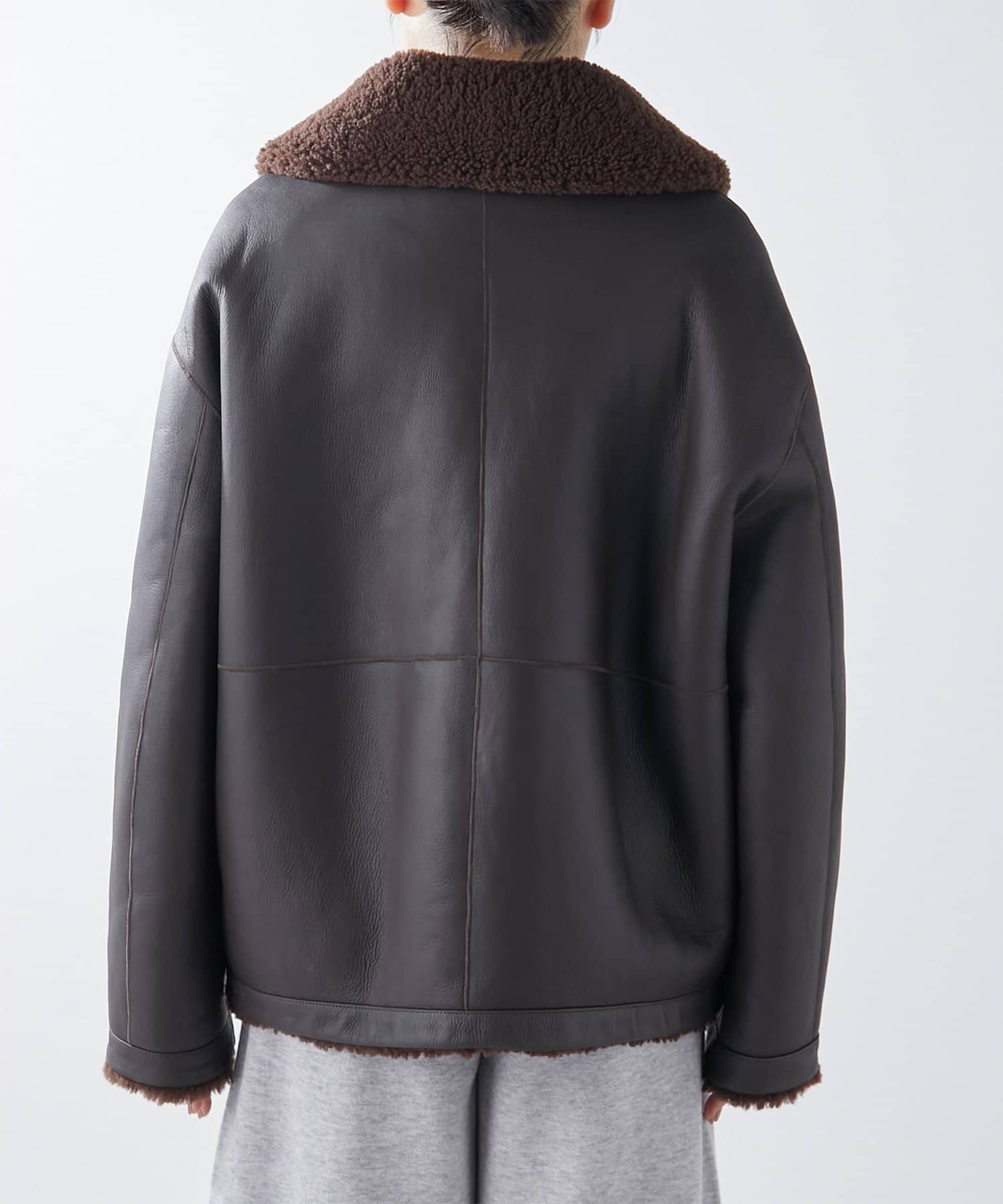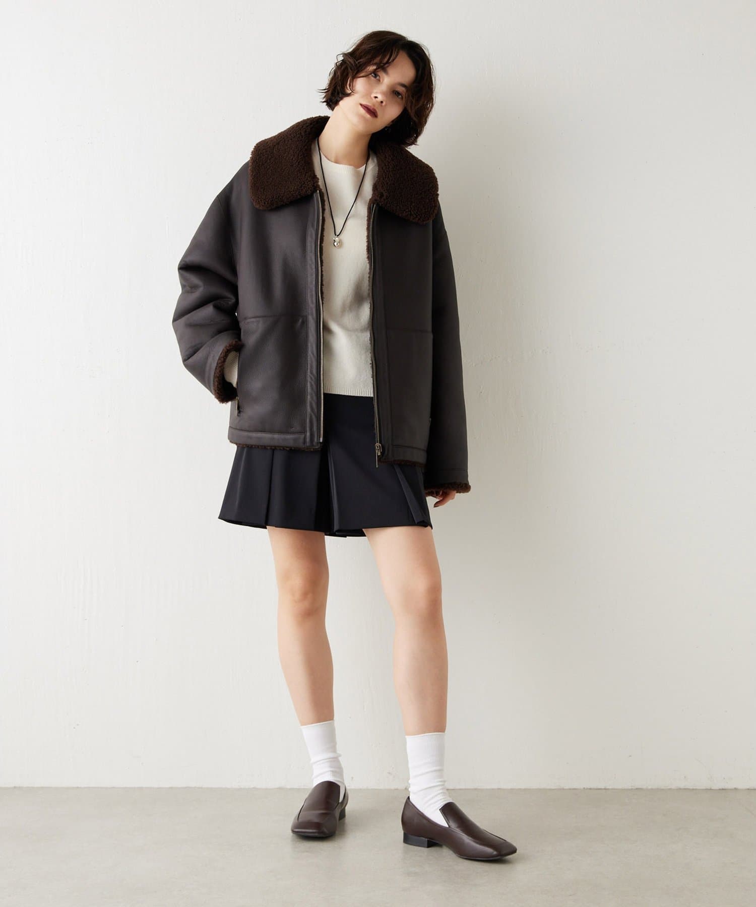 ■レザー面はボンバージャケットのようなややハードな表情を楽しめ、毛足面を表にすればボアブルゾンのようなスポーティな雰囲気に。