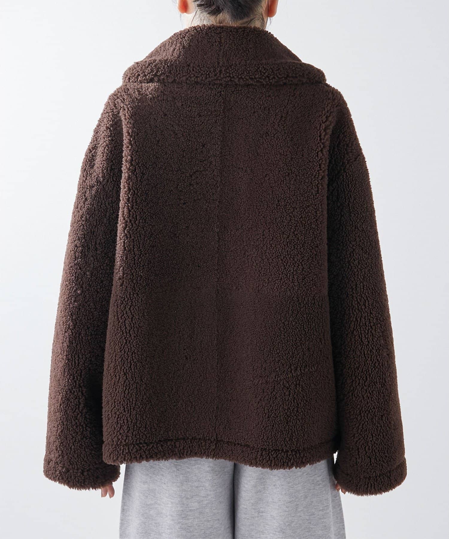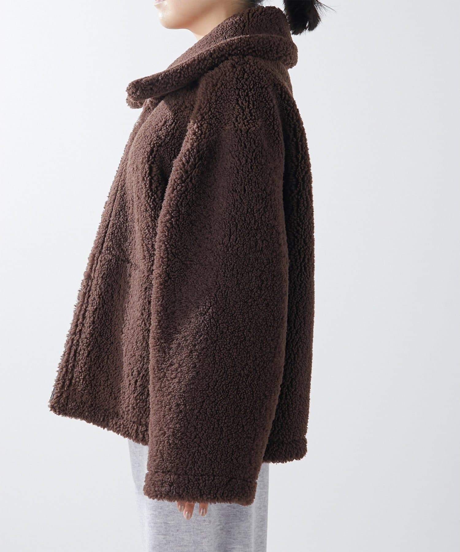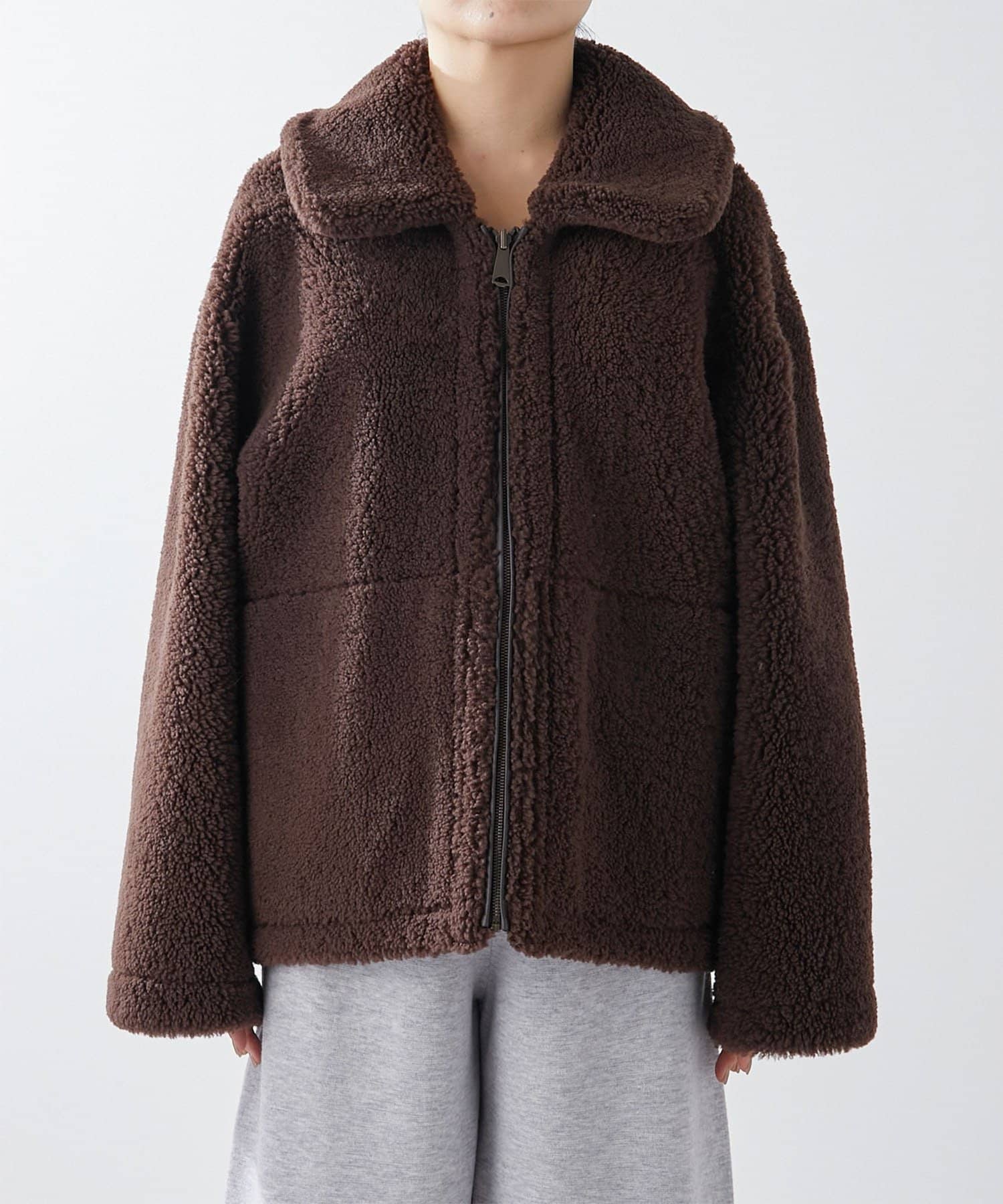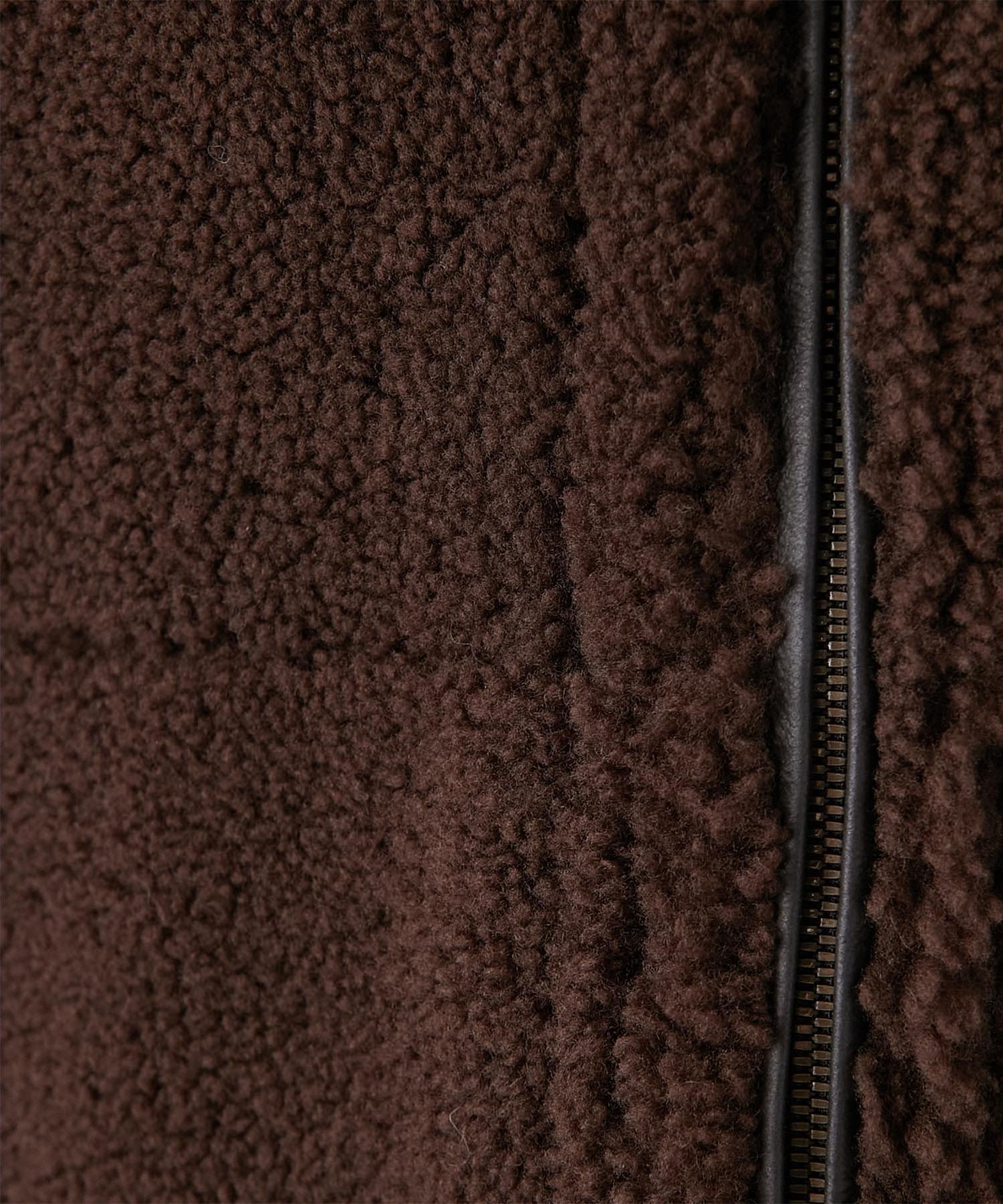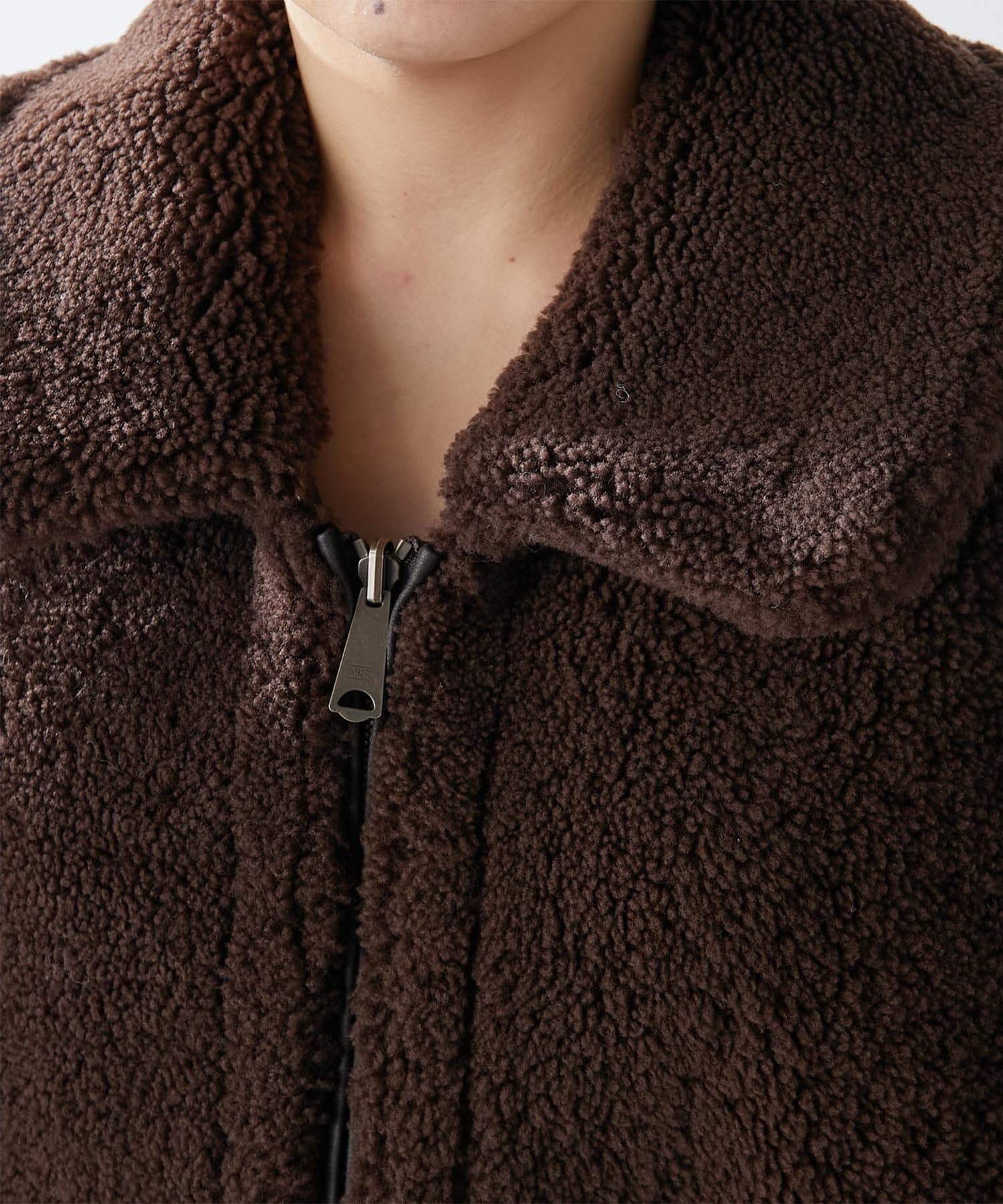 ■カーリーな毛足のムートンを使用したリバーシブルジップブルゾン。