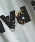 ■ゴールドとシルバーの重ね付けや、サイズ違いのピアスなどとの重ね付けを楽しむのもおすすめ。