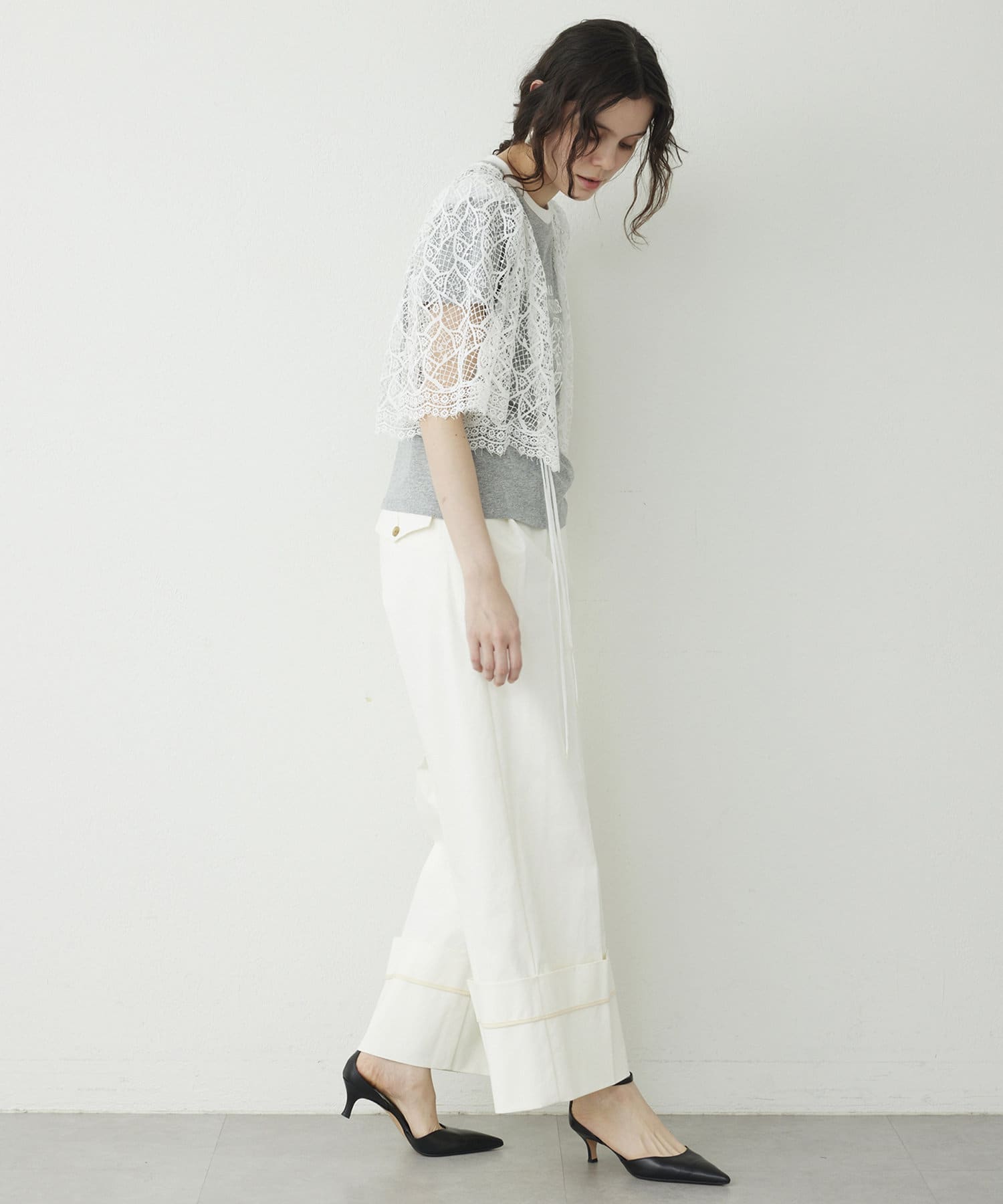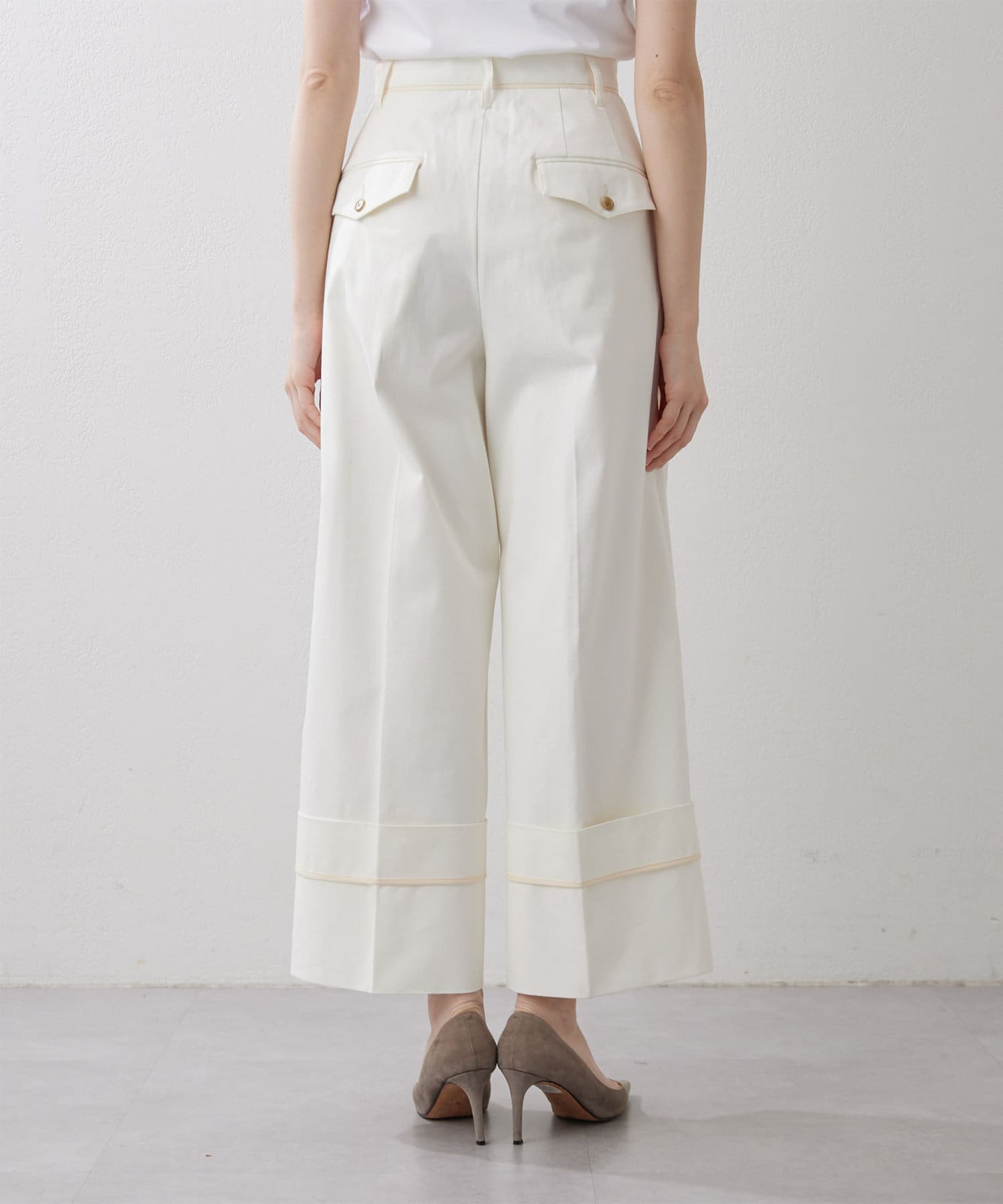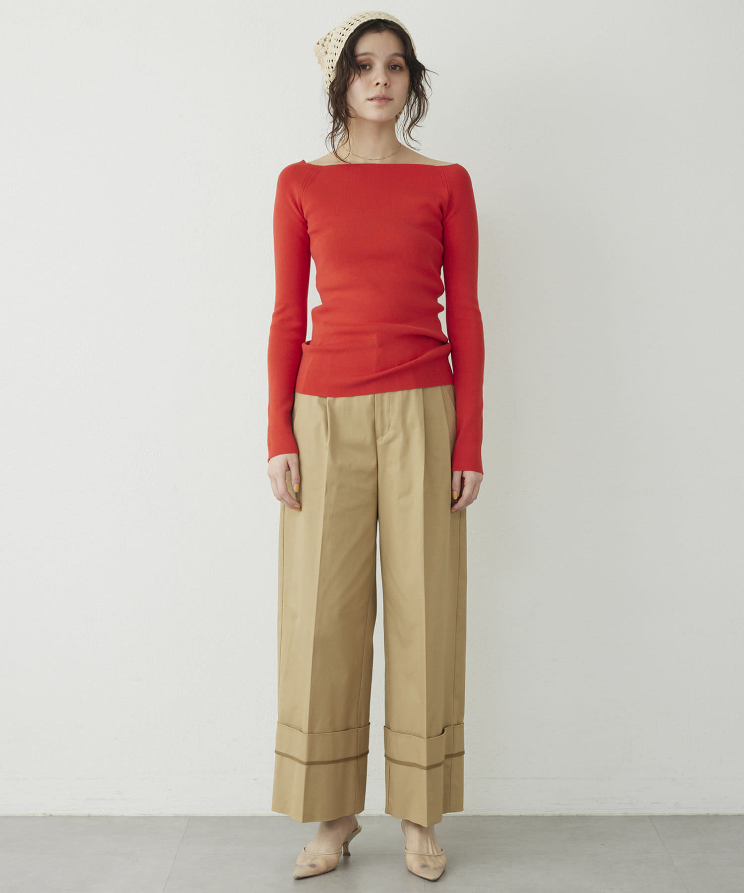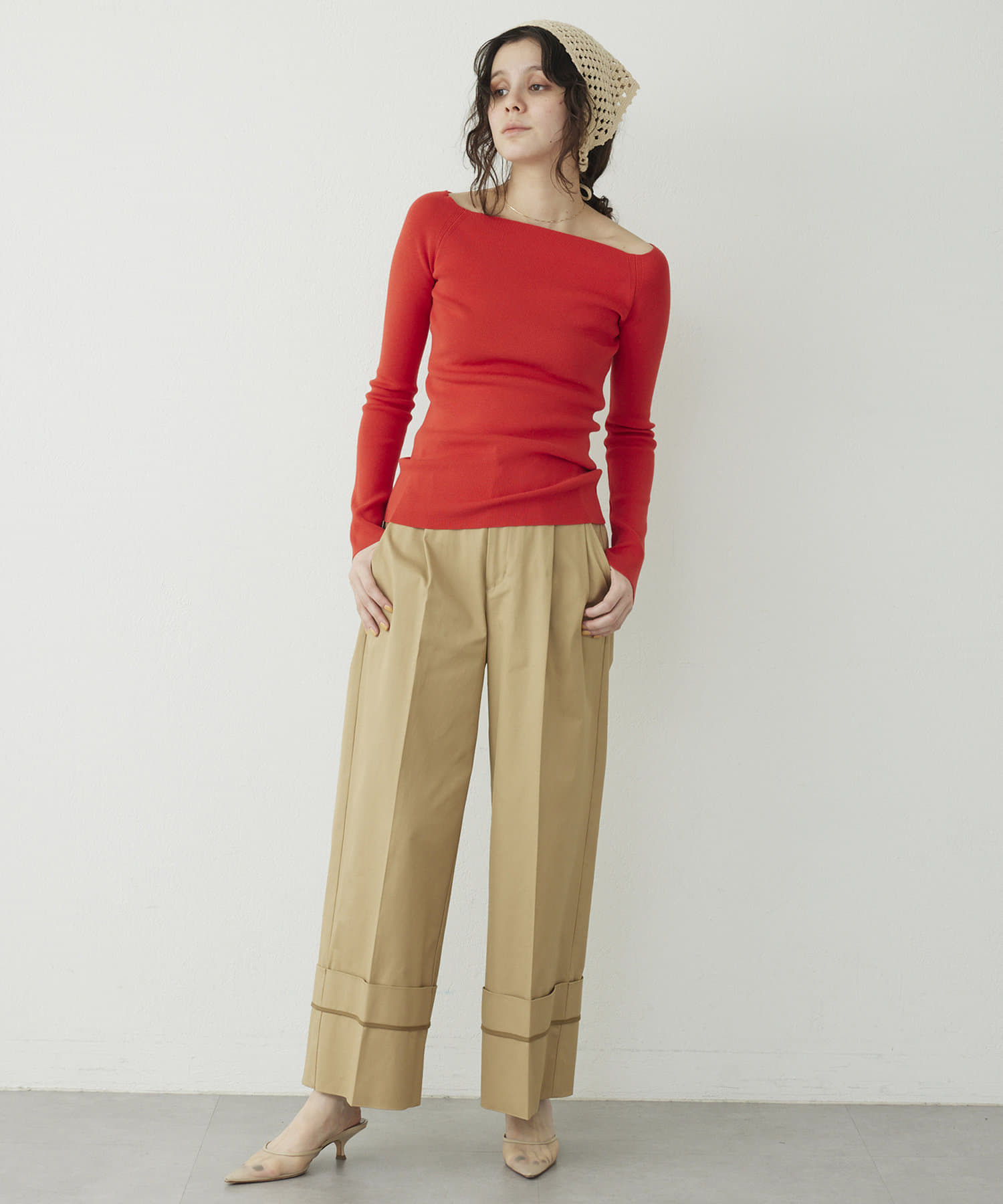 ■裾を太めにロールアップしたデザインが印象的なチノパンツ。