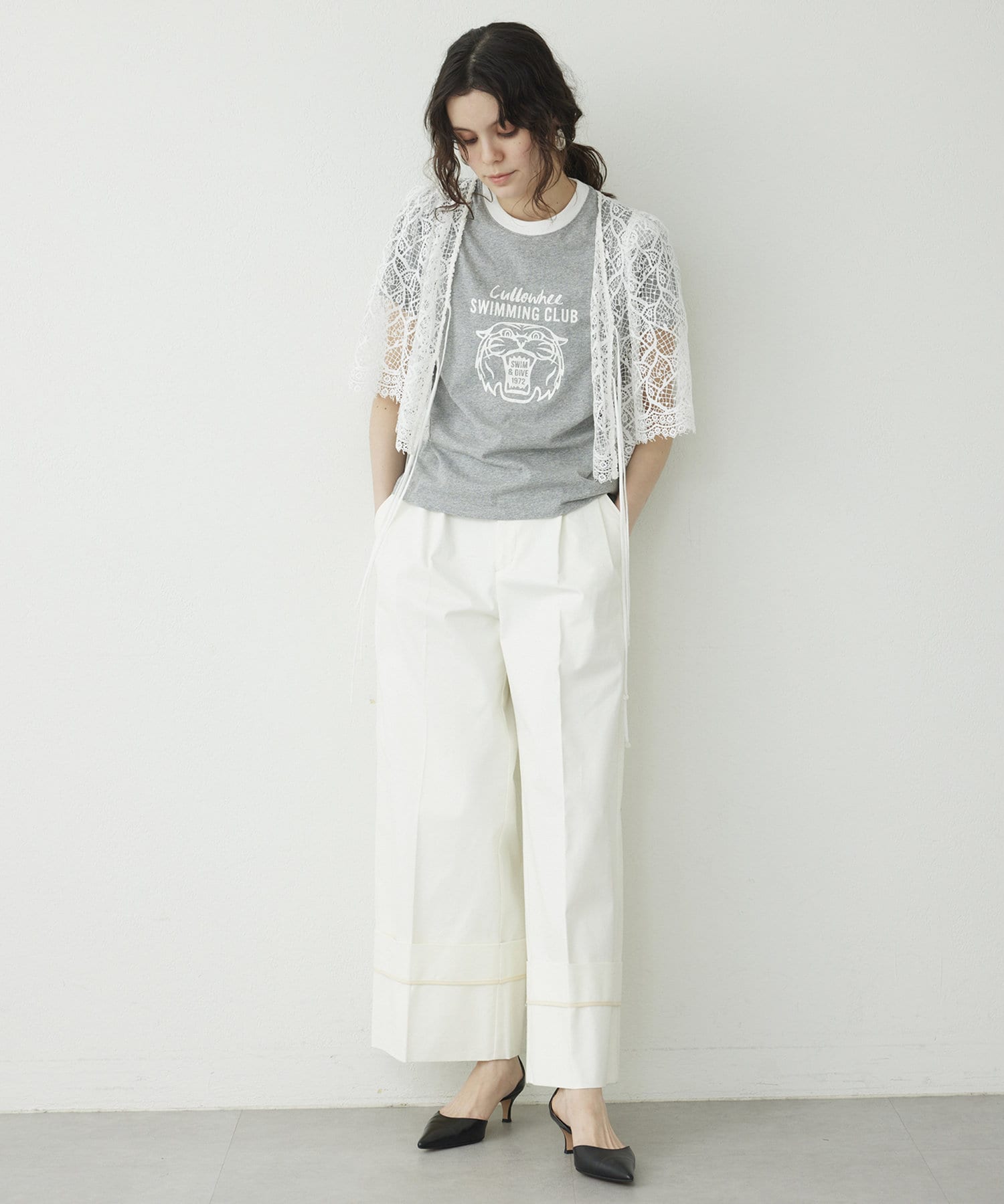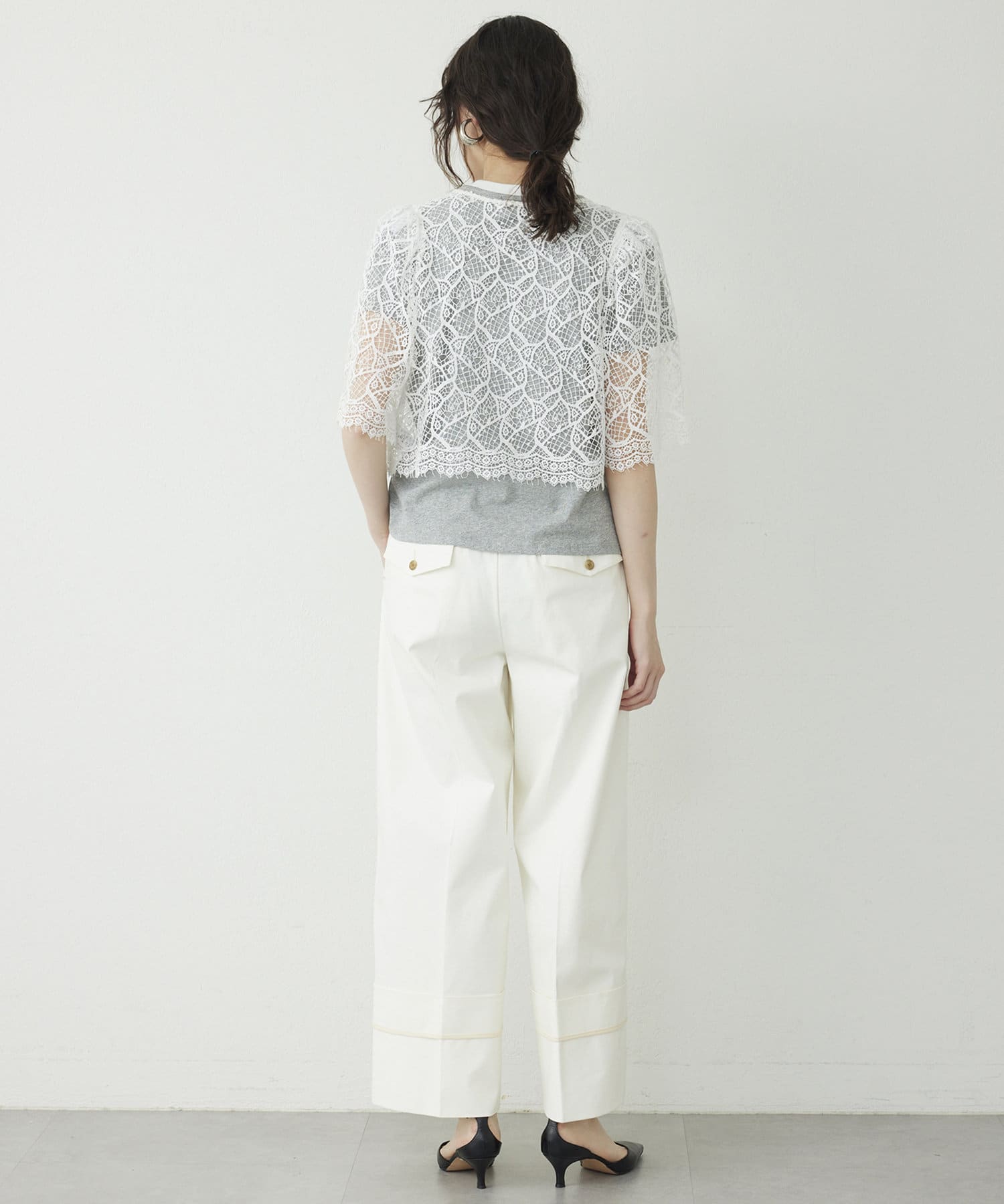 ■腰回りから裾にかけてはゆったりとしたシルエットのため、ハイウエストでボトムラインがきれいに見えるバランスに。