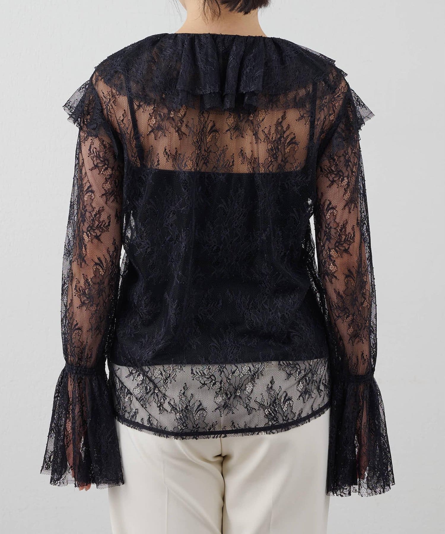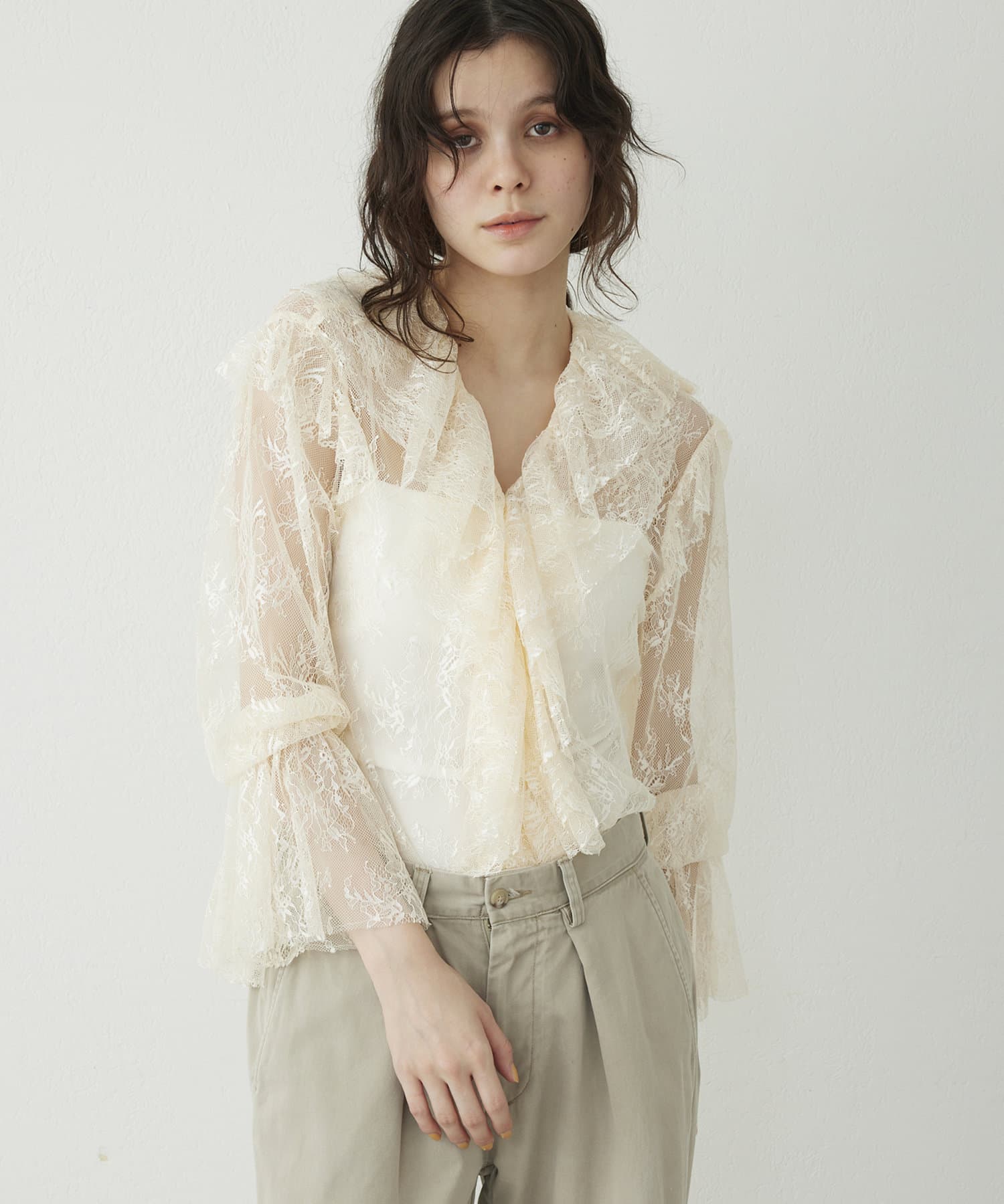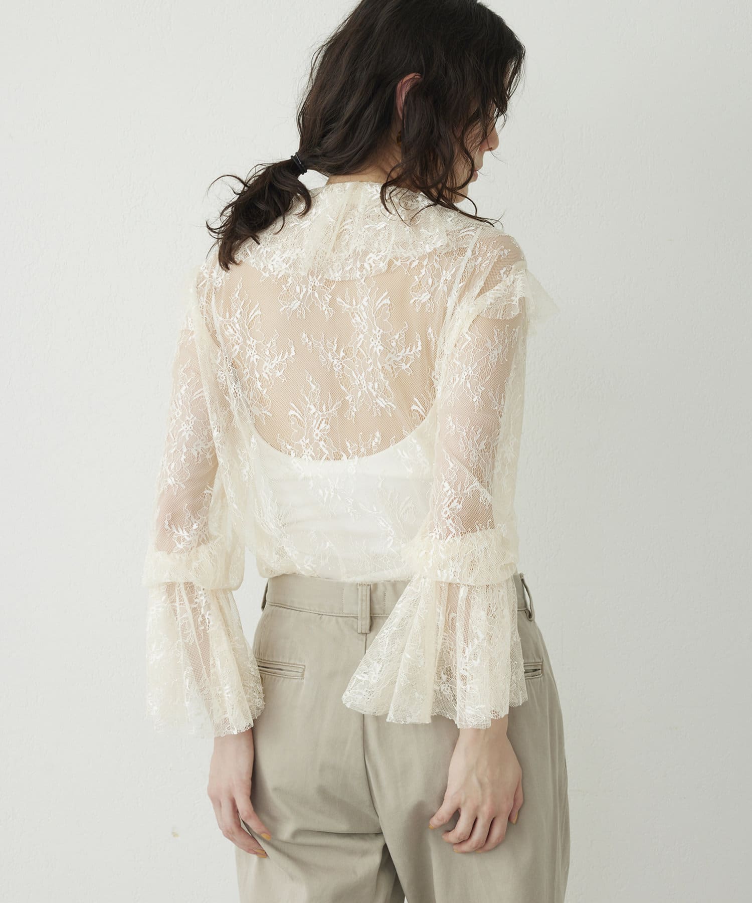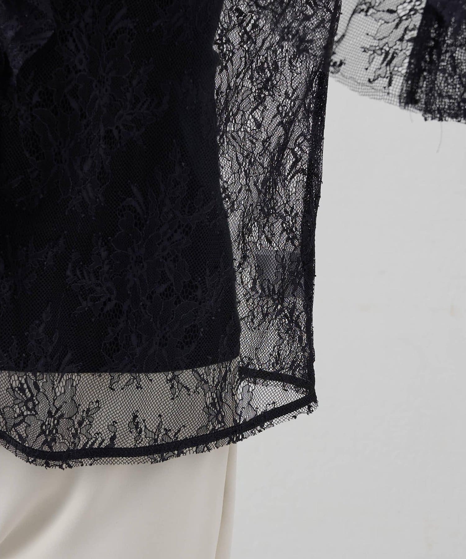 ■やや光沢のある繊細なレースを重ねたブラウス。