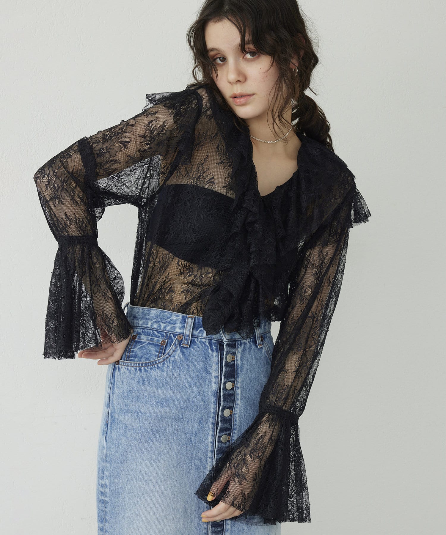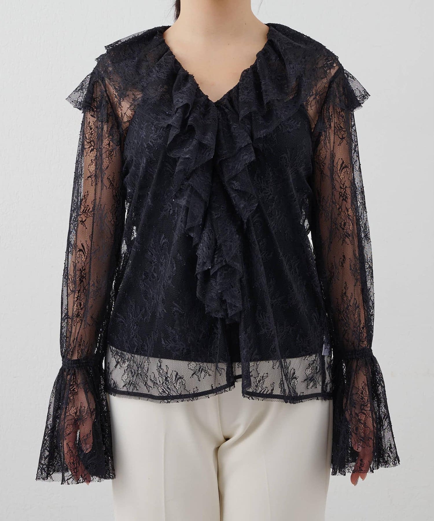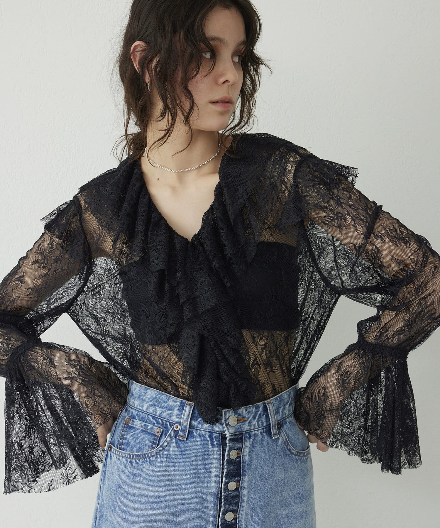 ■やや光沢のある繊細なレースを重ねたブラウス。