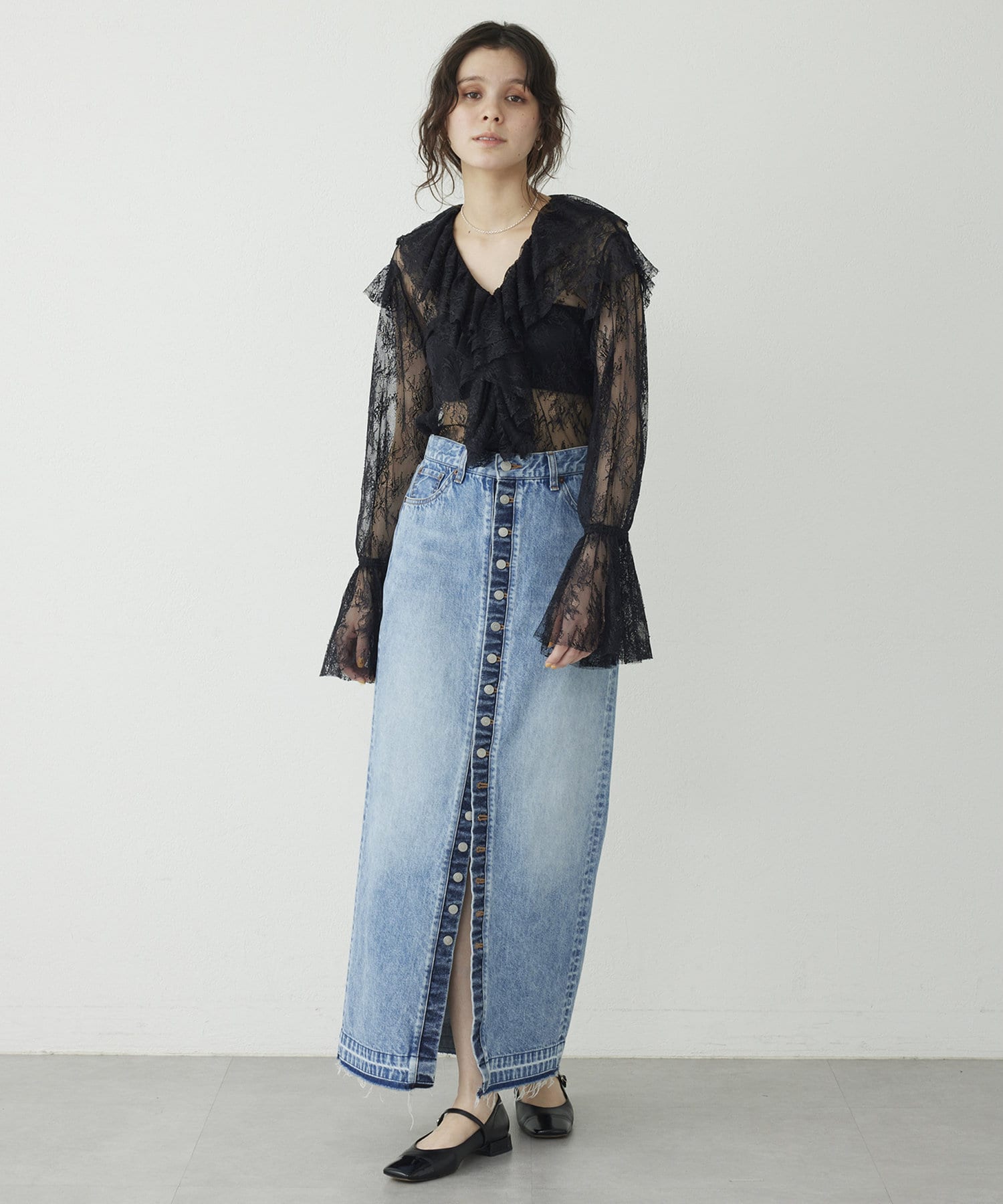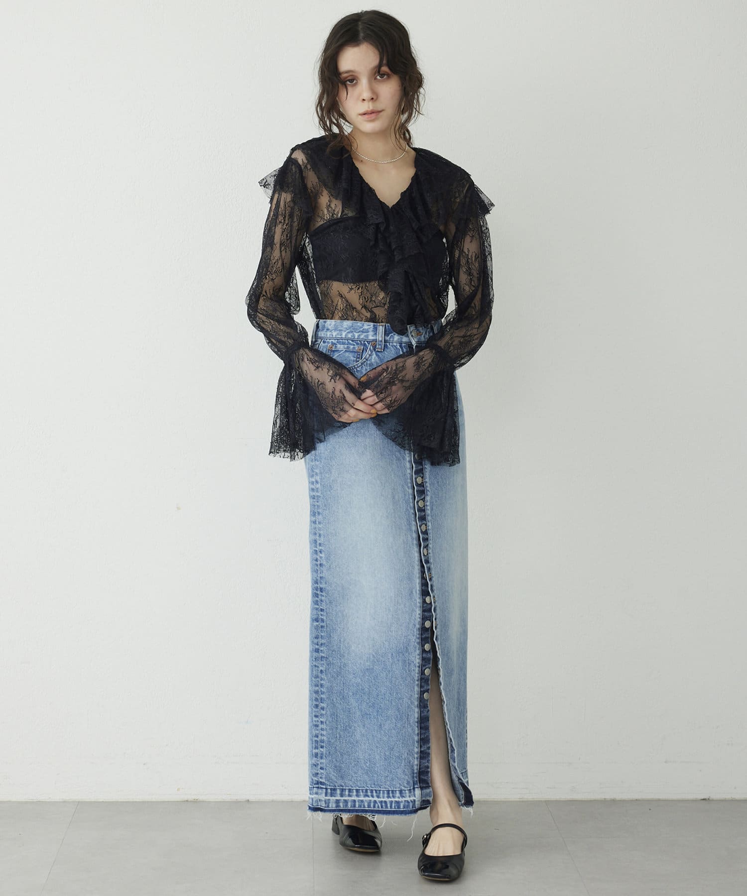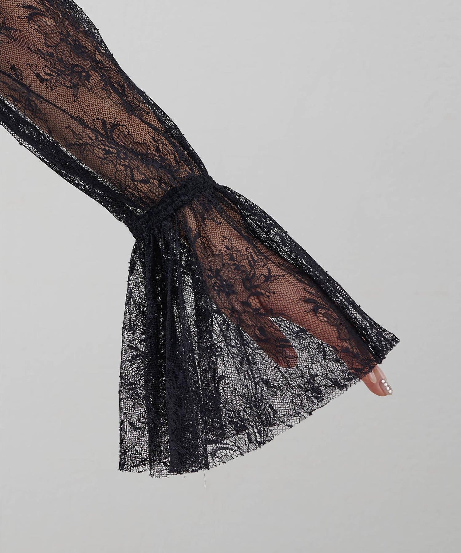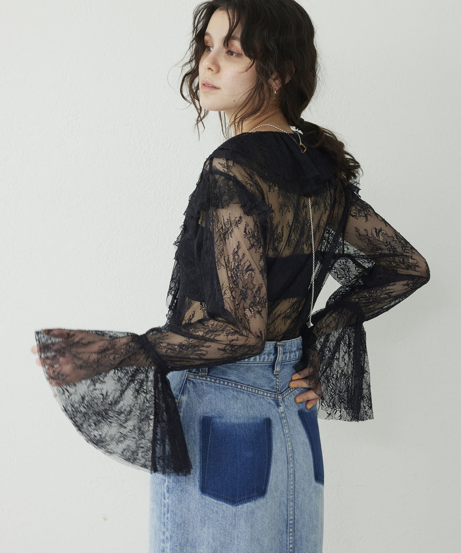 ■やや光沢のある繊細なレースを重ねたブラウス。