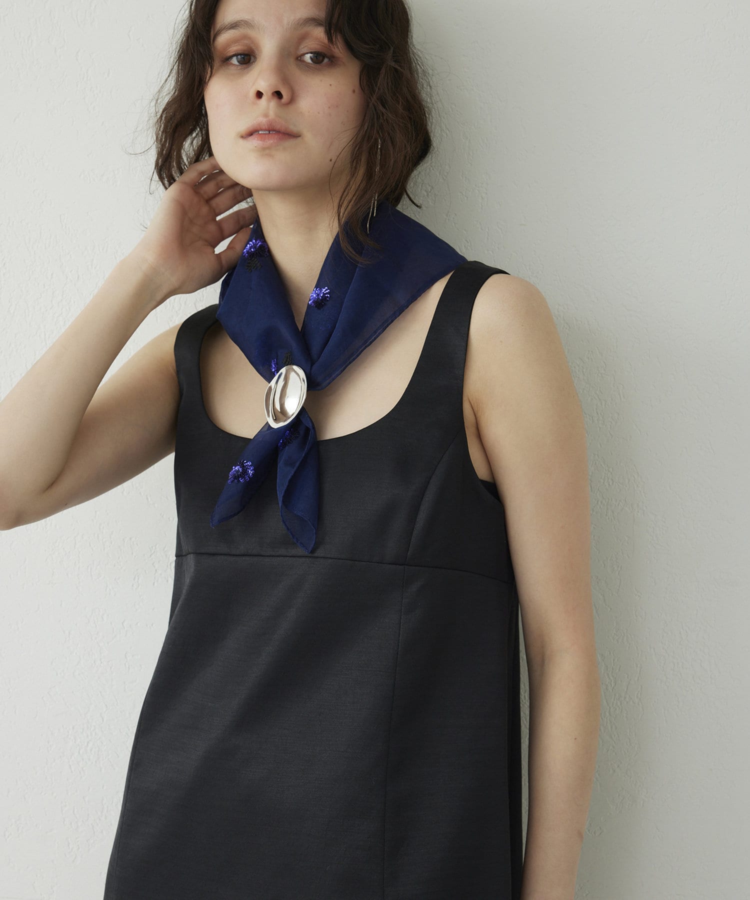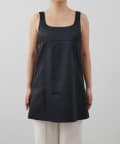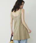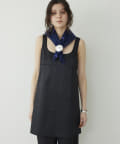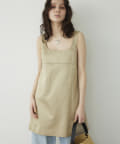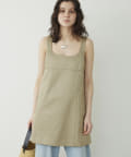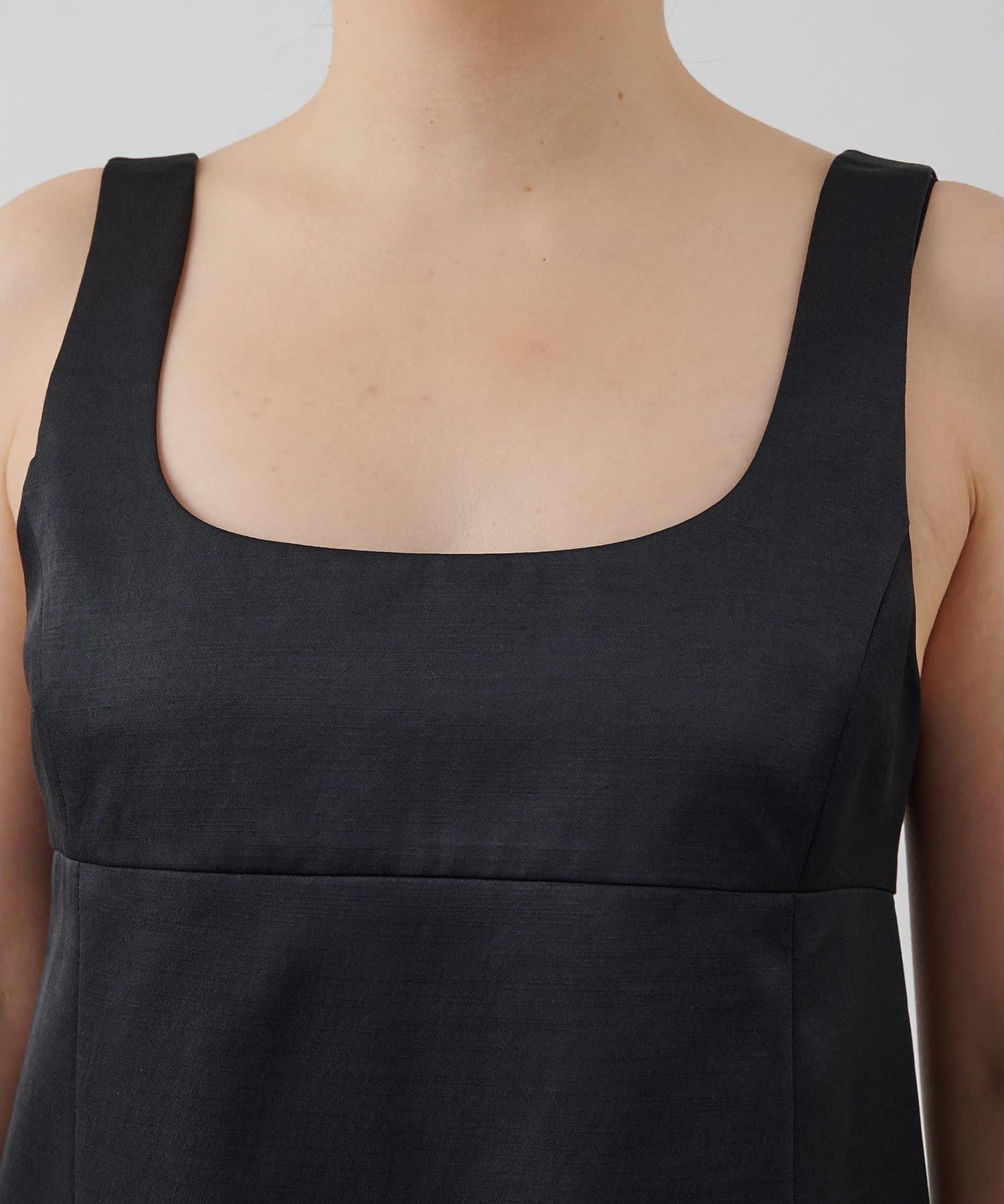 ■前後の首まわりが大きく開いたスクエアネックがヘルシーな印象のミニワンピース。