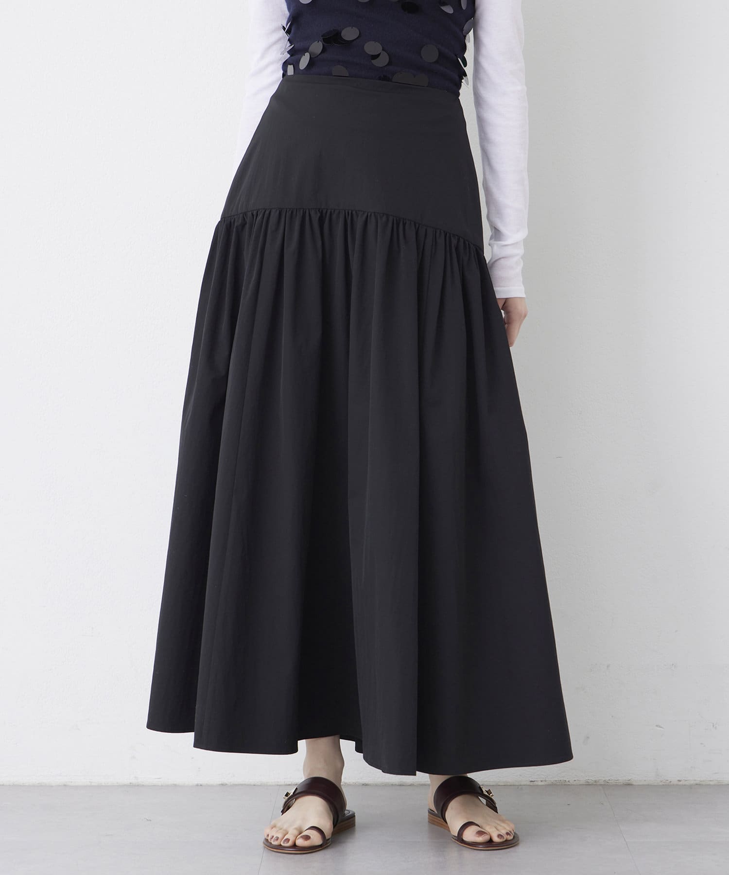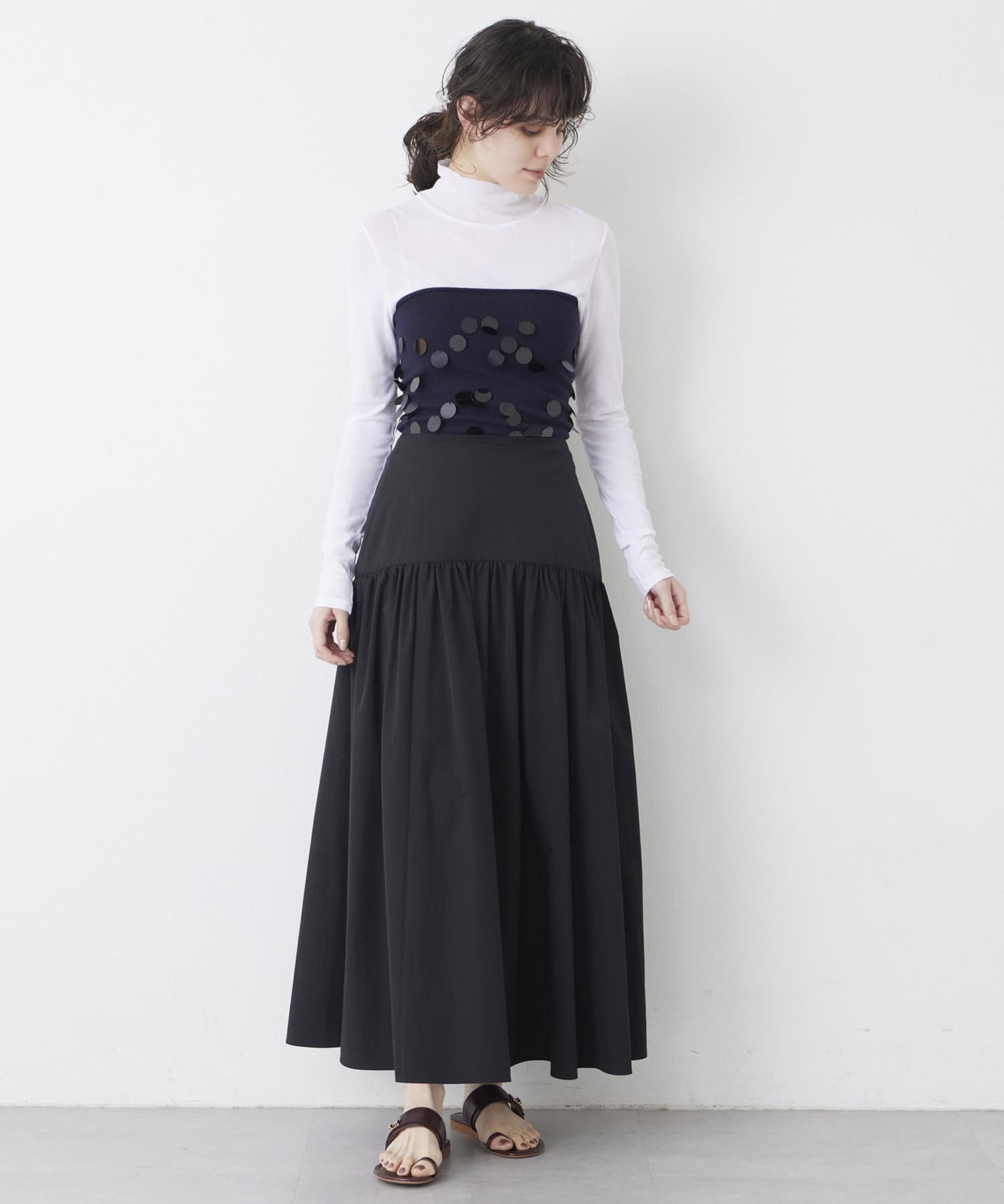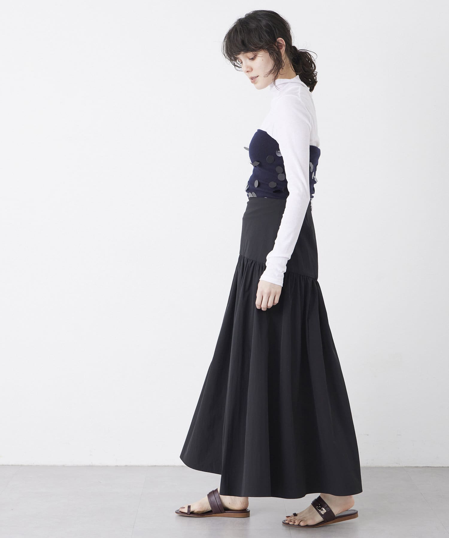 ■ウエスト~腰回りはすっきりと、裾に向かってボリュームを持たせ、一枚でも着映えるデザインがポイント。