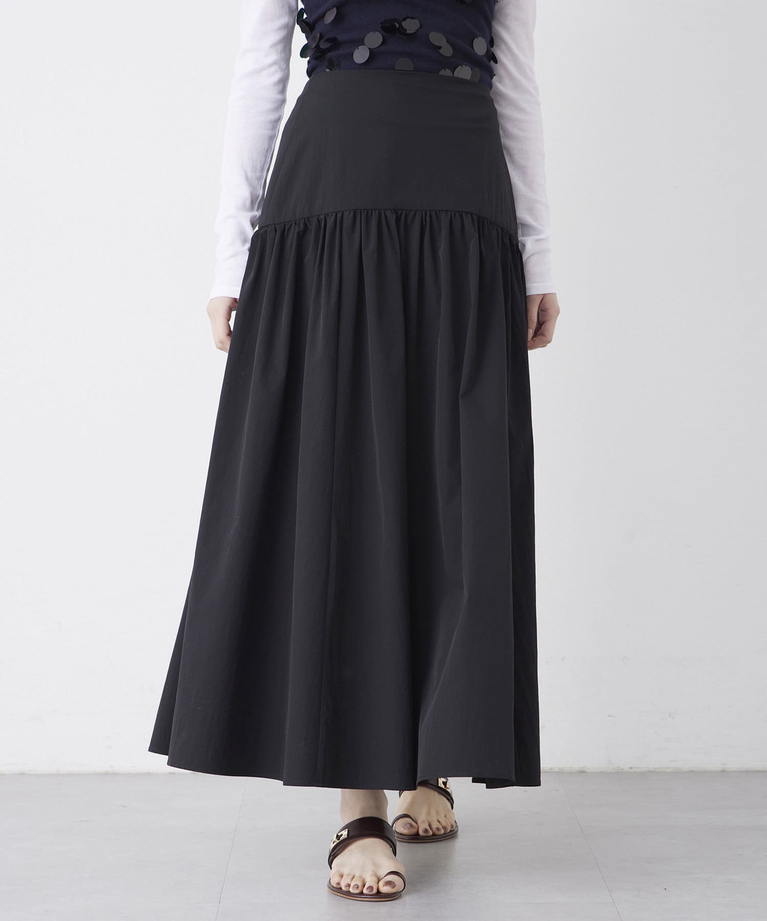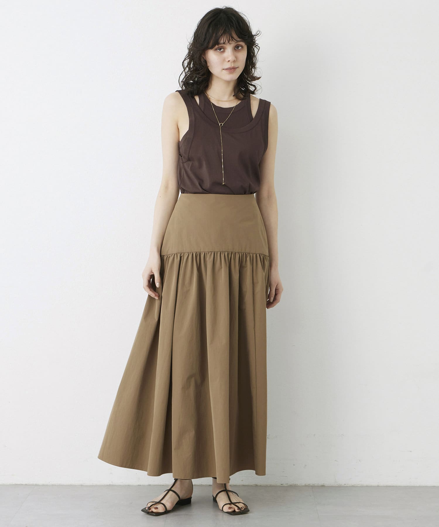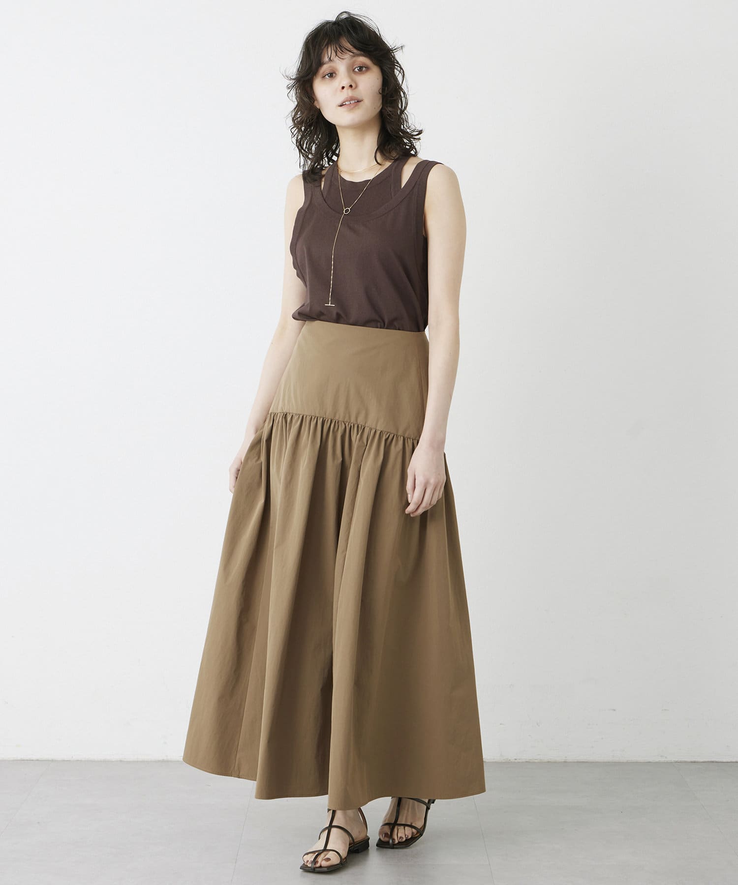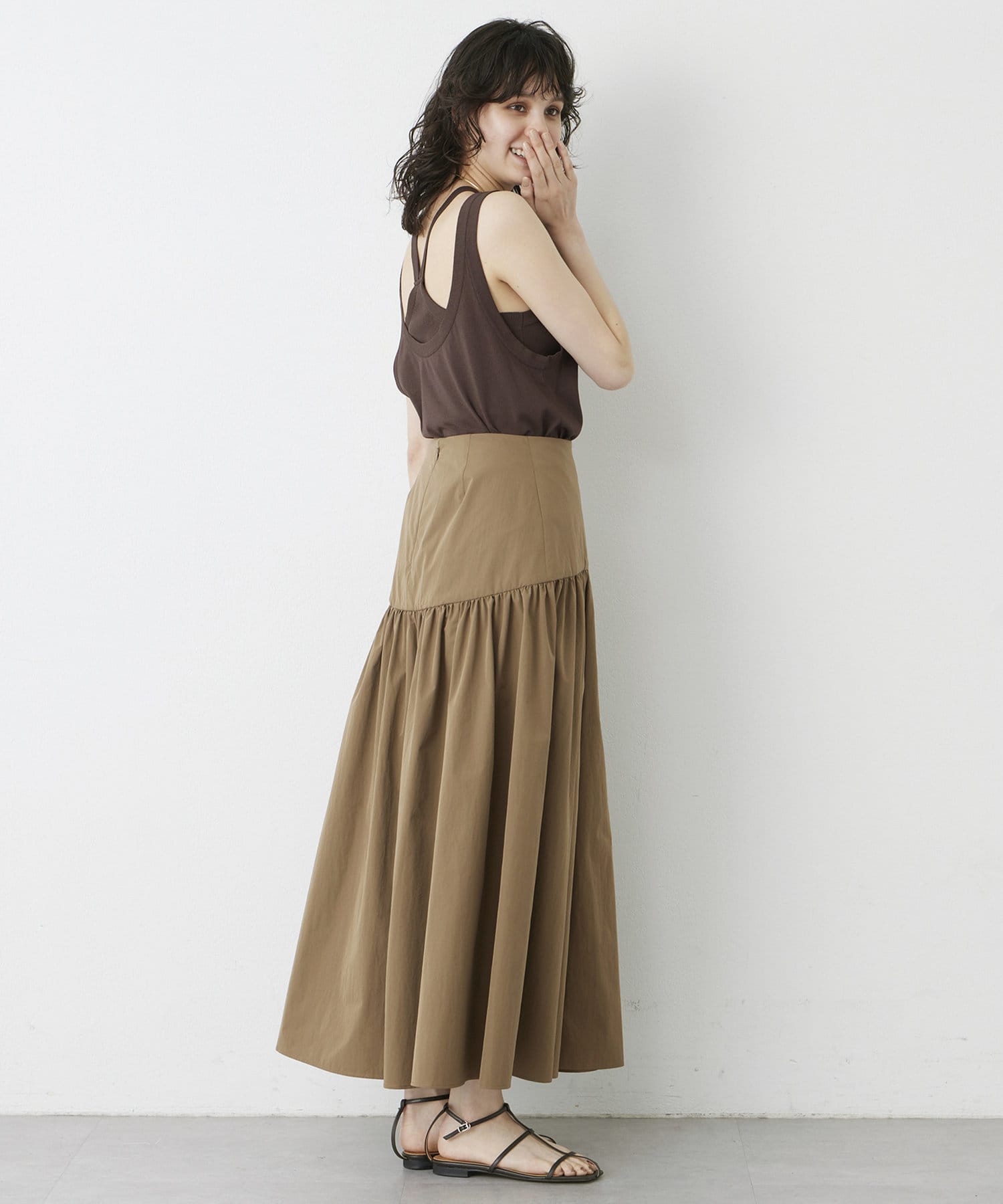 ■ウエスト~腰回りはすっきりと、裾に向かってボリュームを持たせ、一枚でも着映えるデザインがポイント。