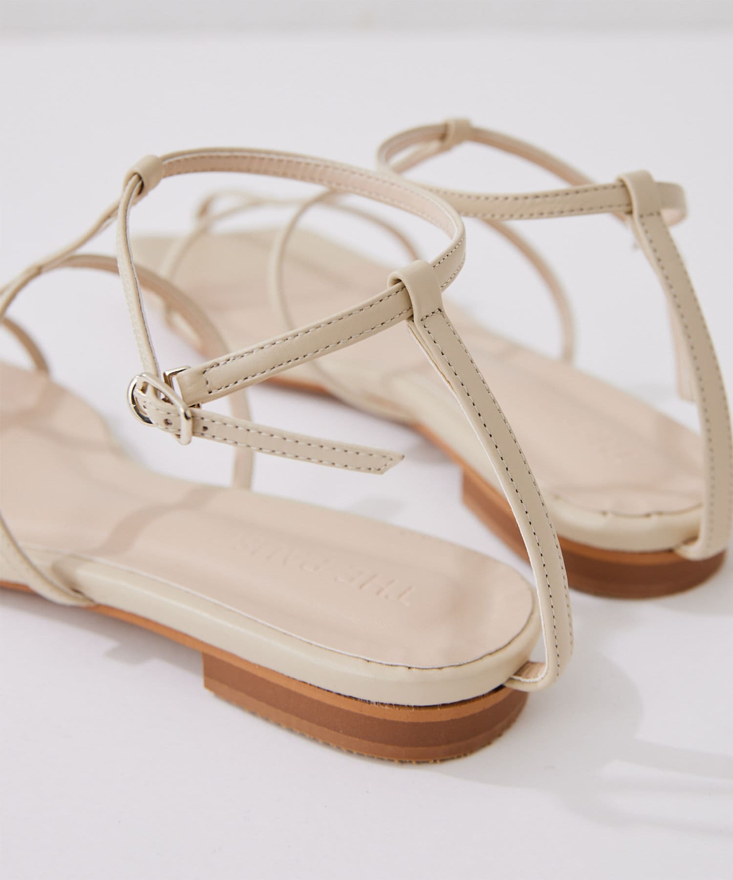 ■3本ストラップの安定感のある履き心地+フラットヒールの疲れにくいデザイン。