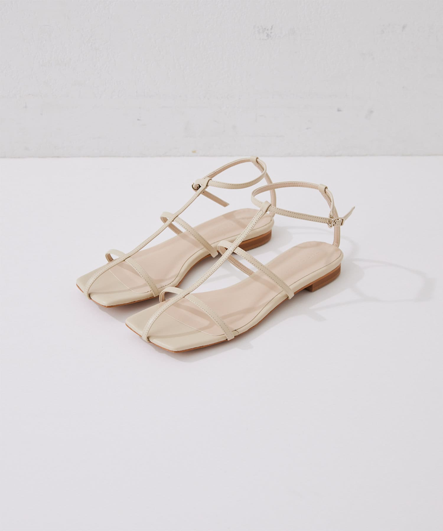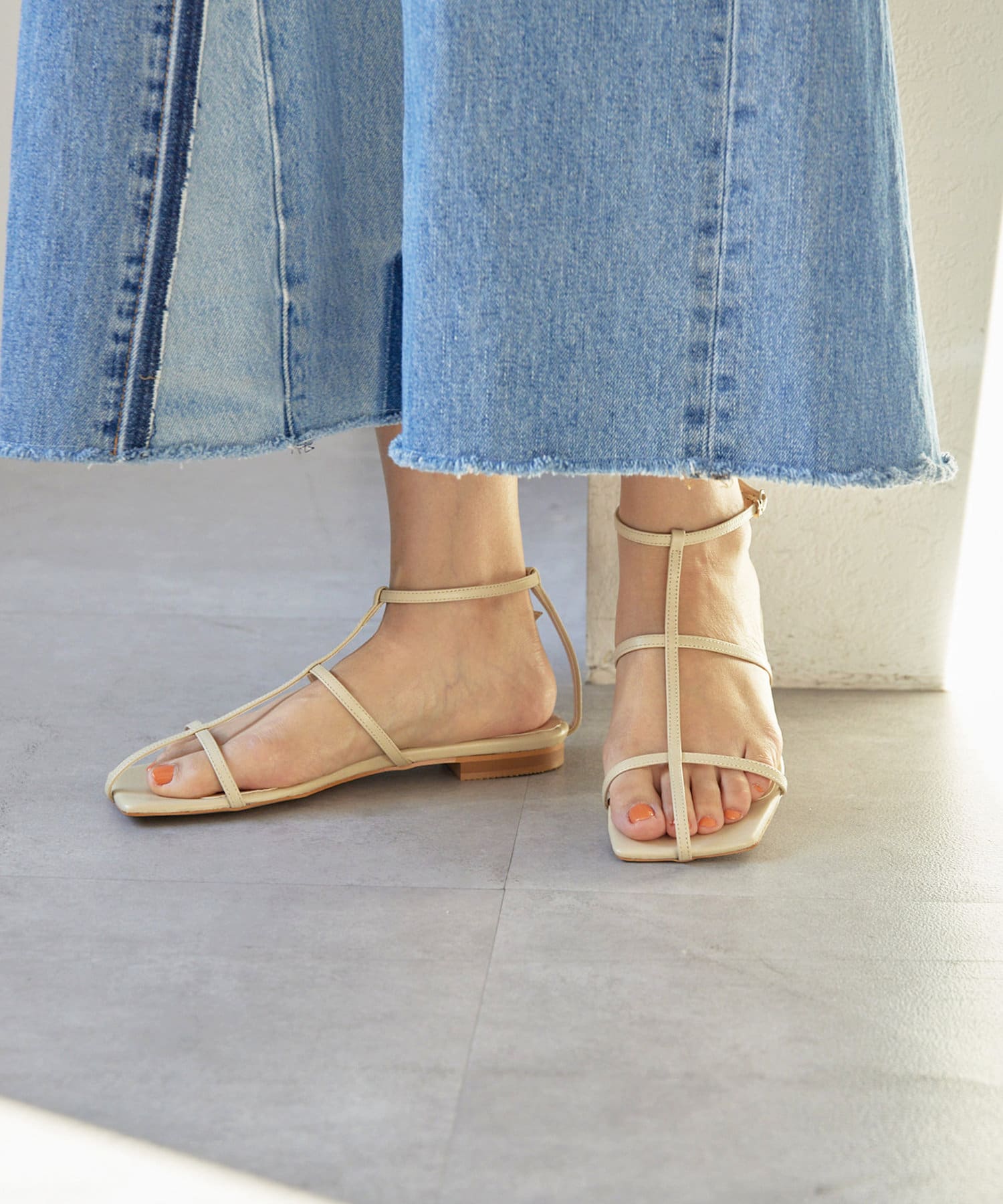 ■足元をすっきりと見せてくれるスクエアトゥサンダル。