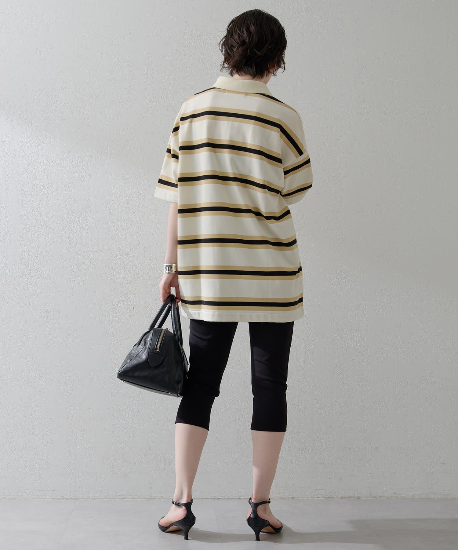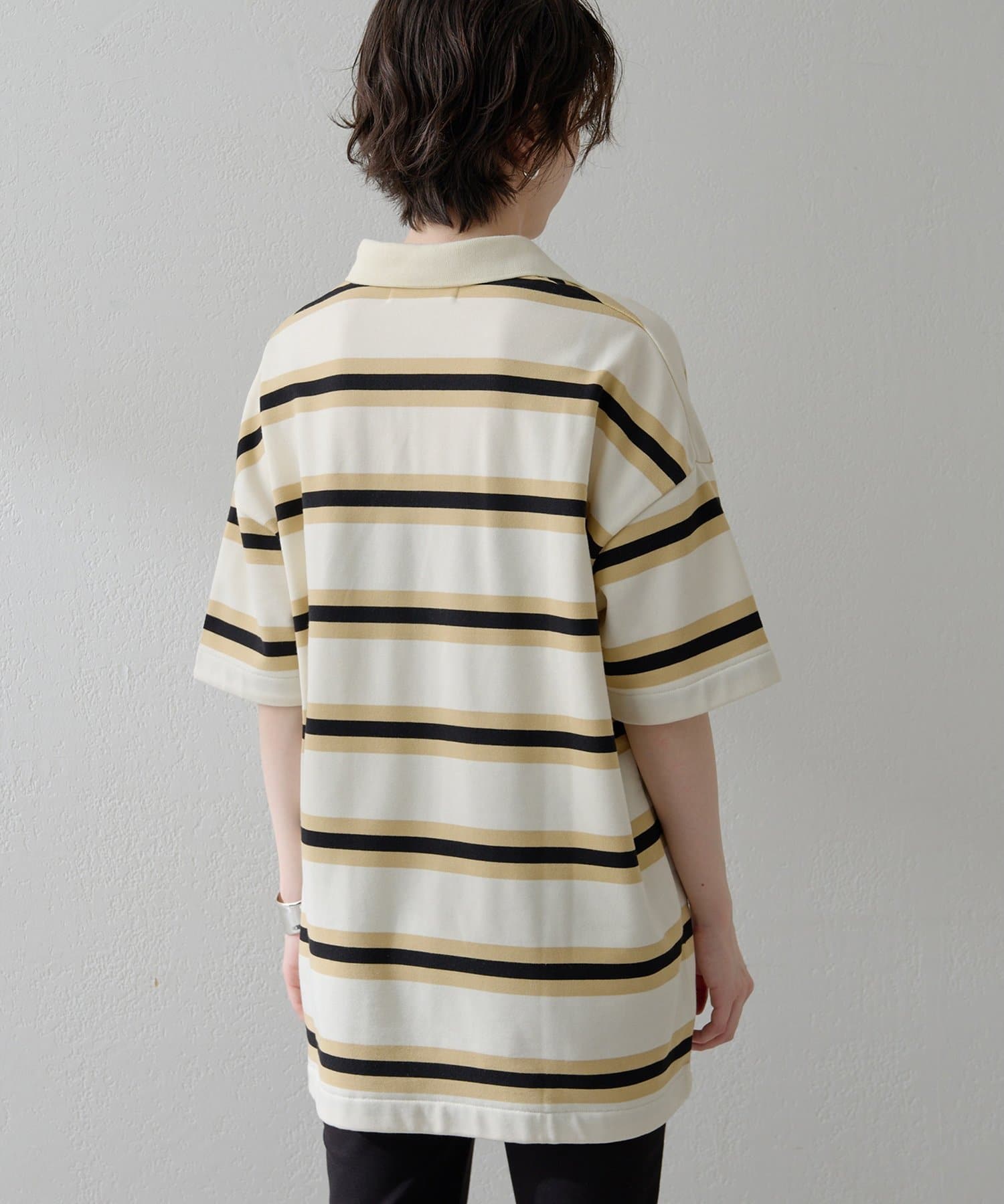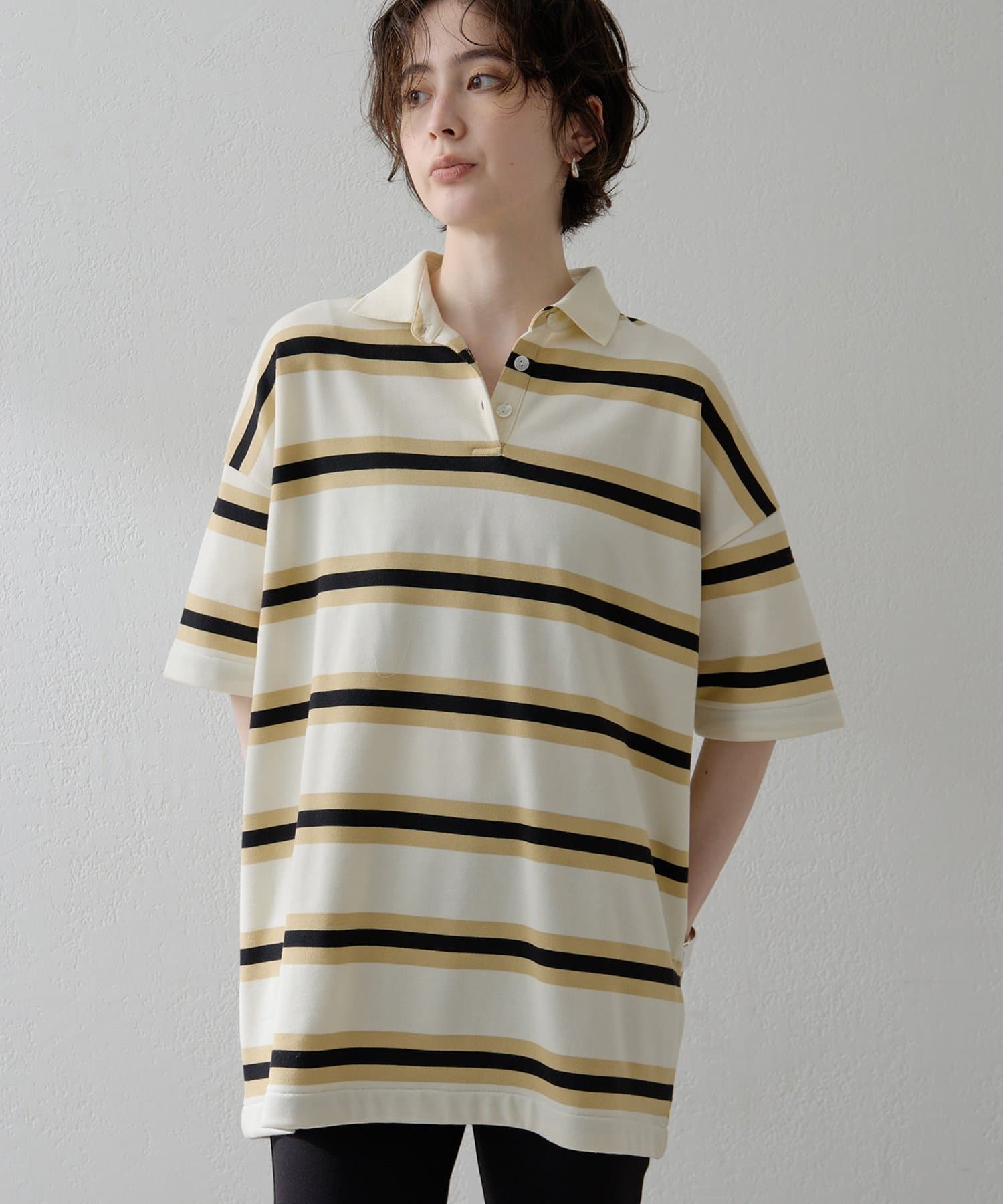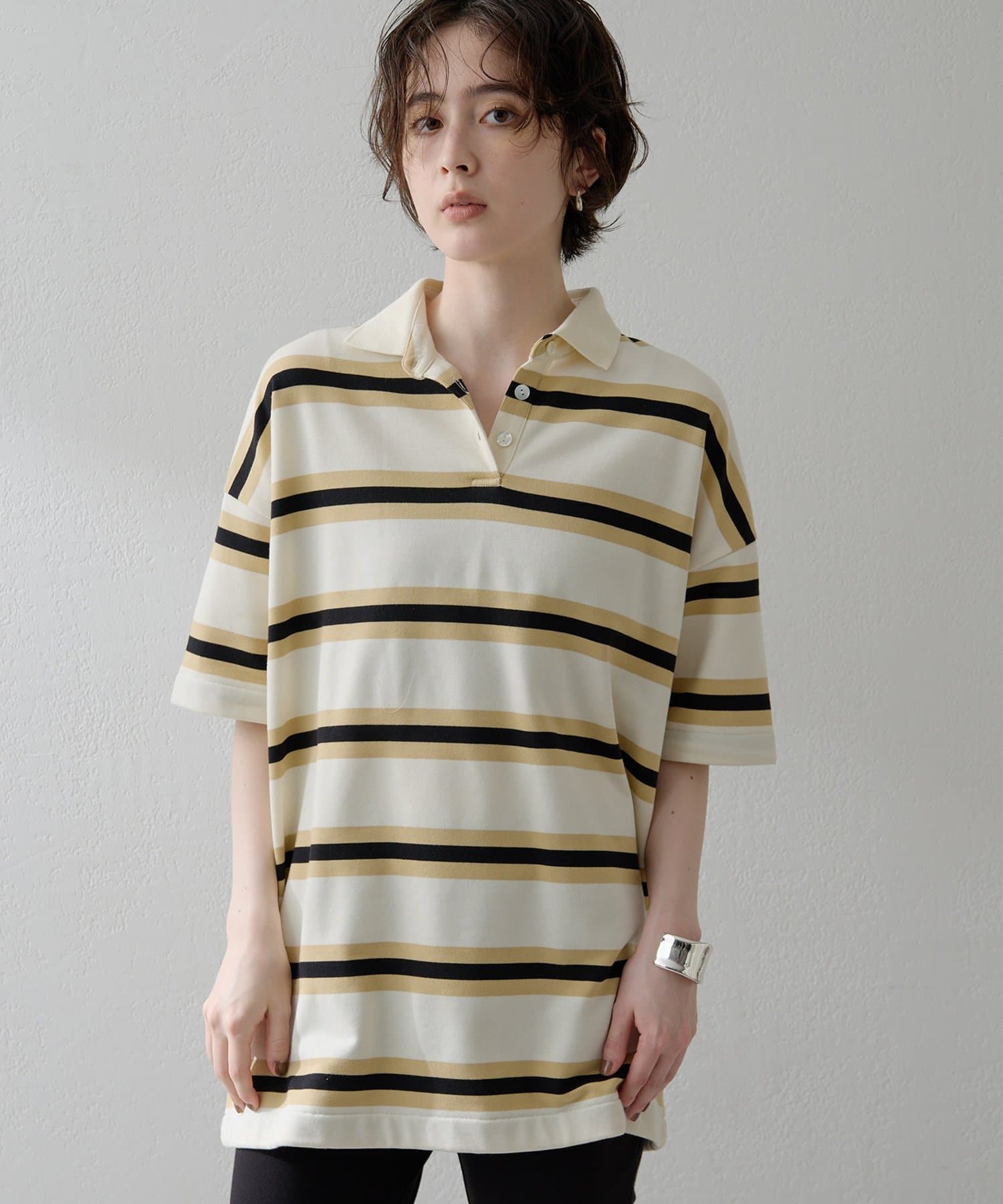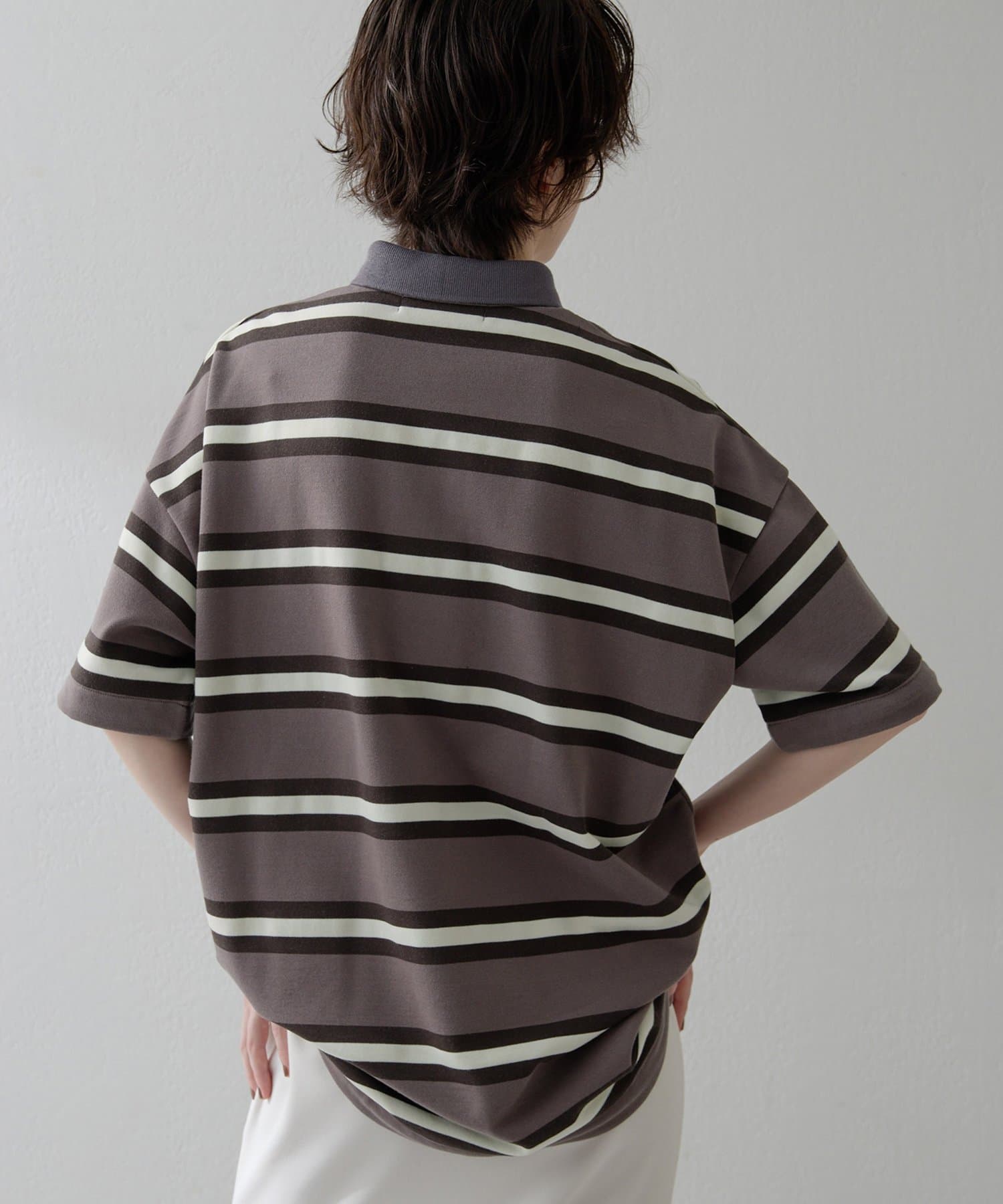■太めピッチの配色ボーダーが印象的なポロシャツ。