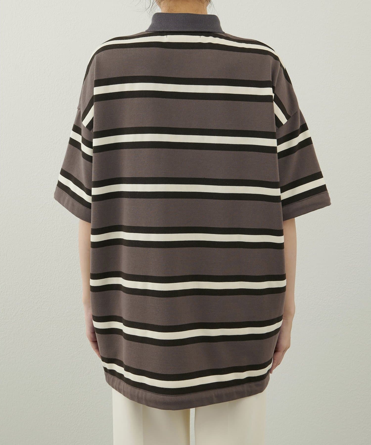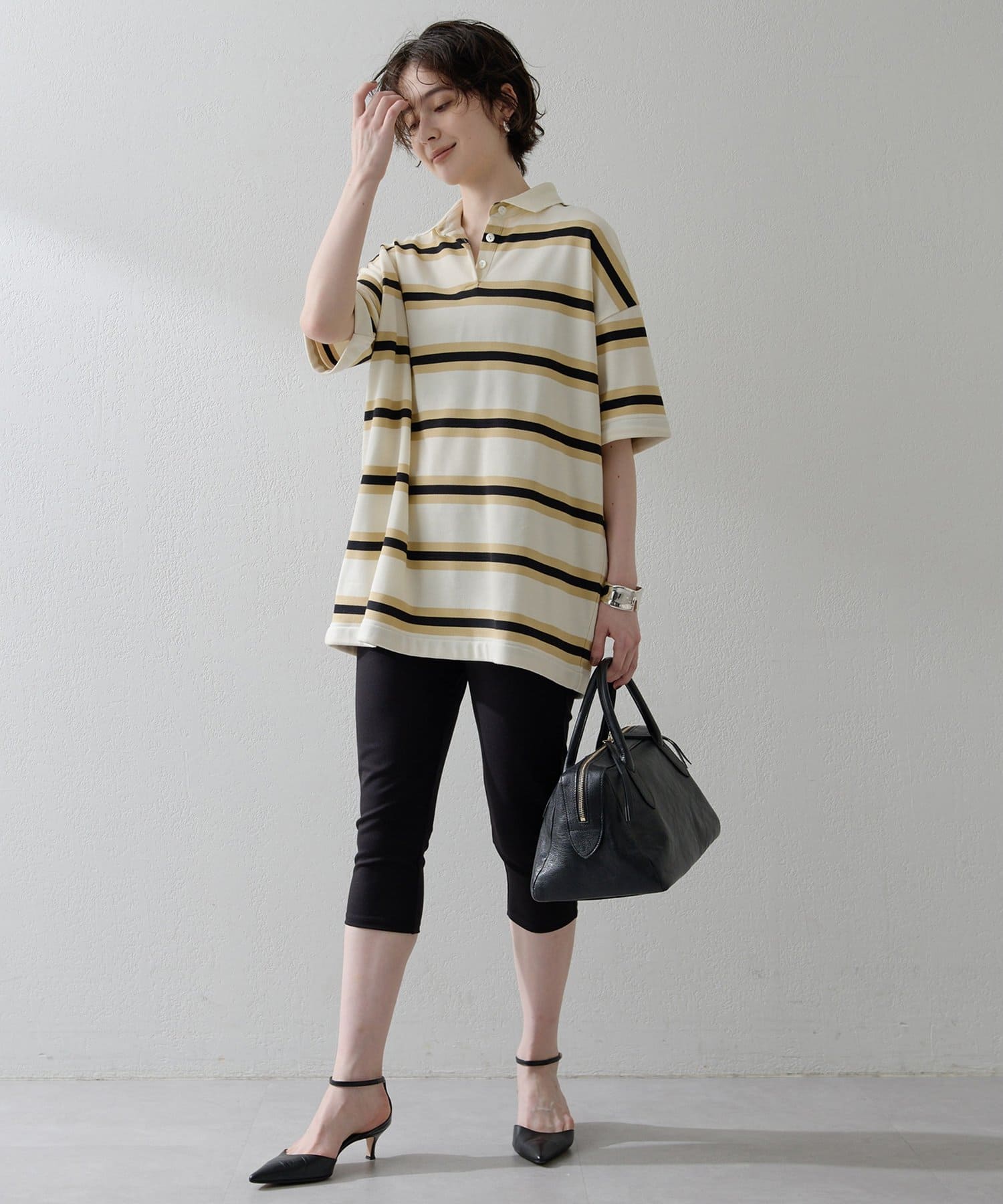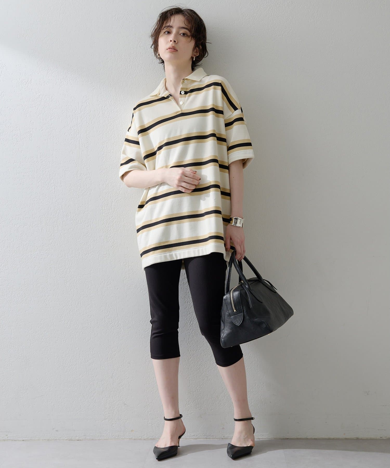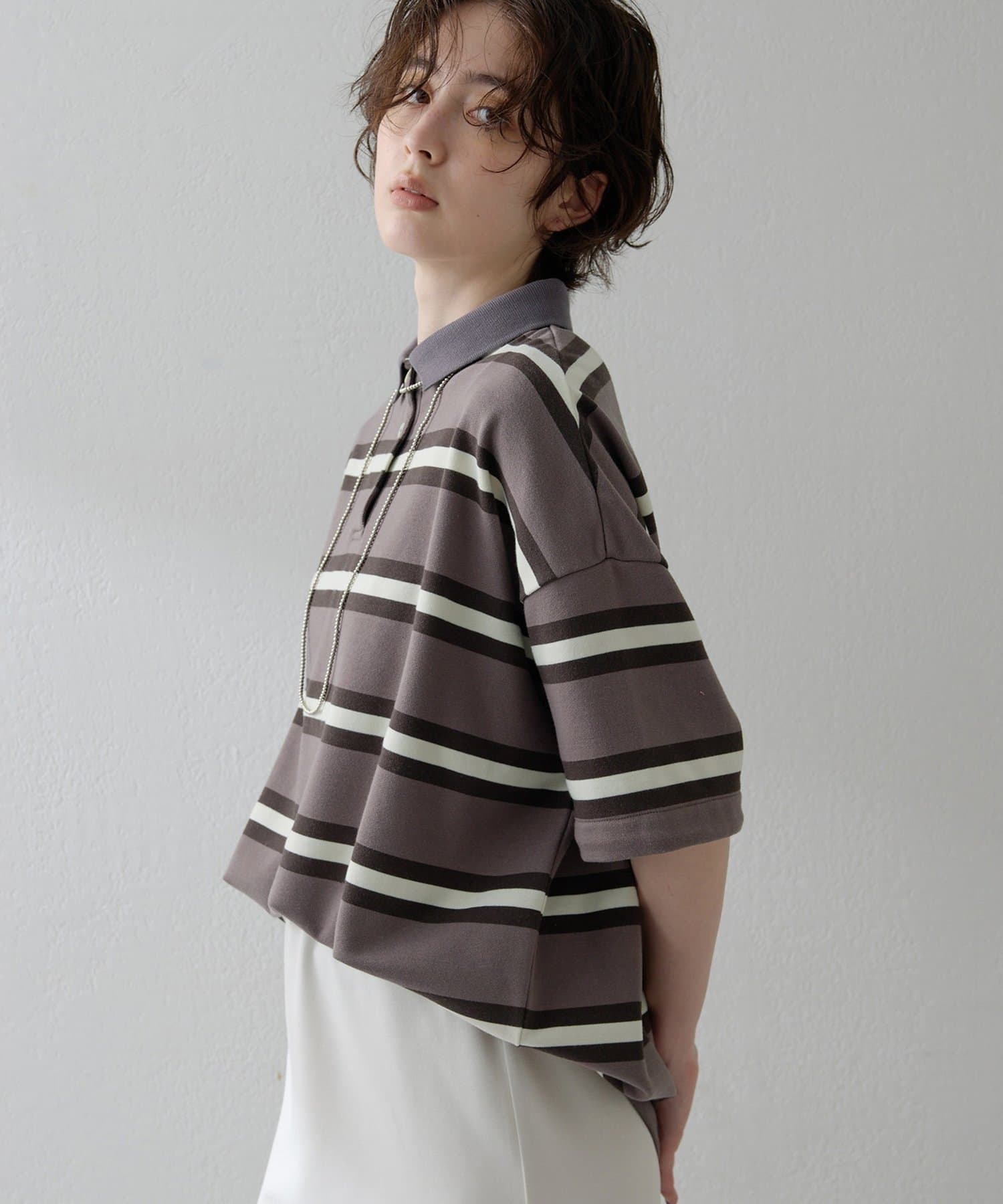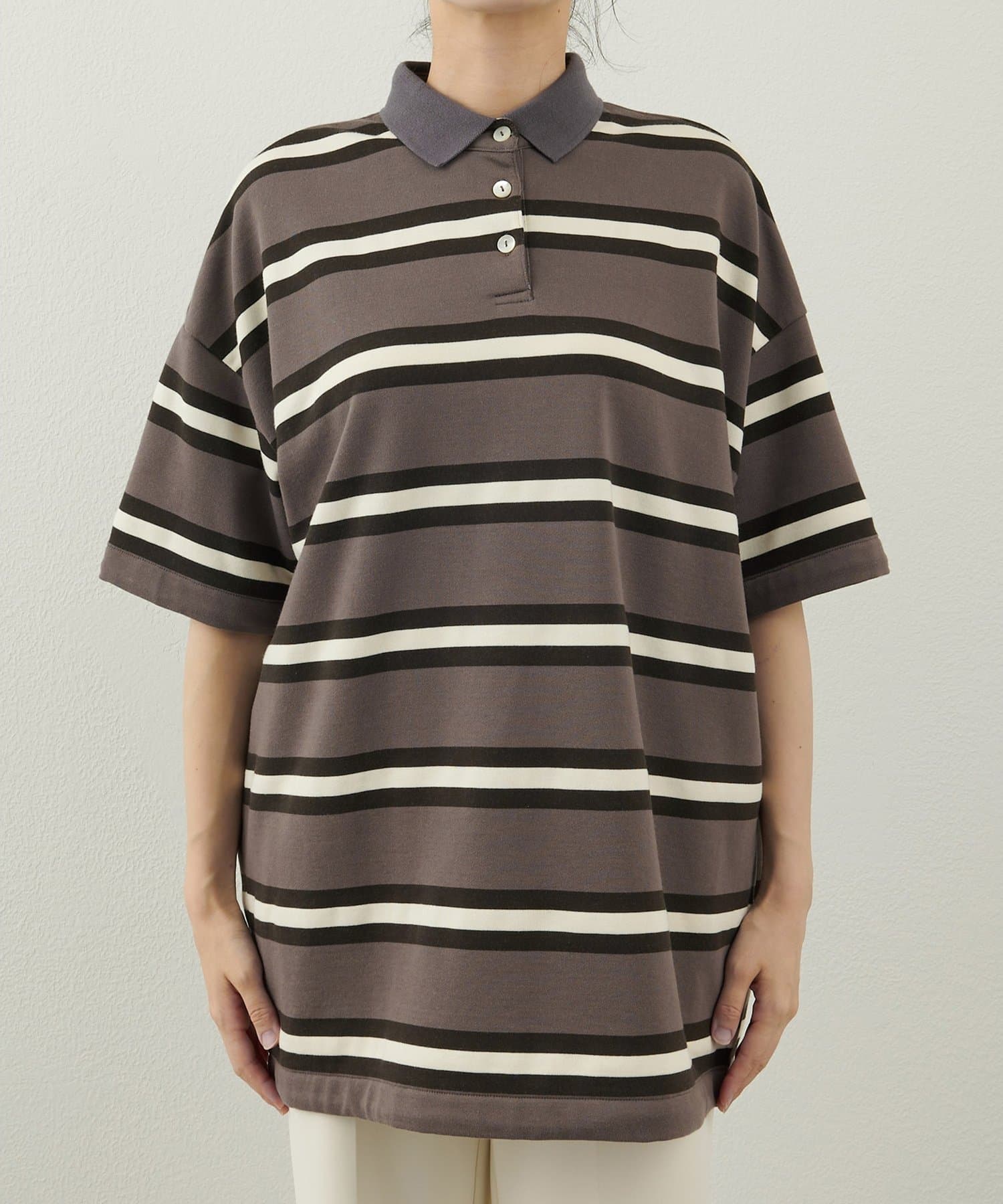■太めピッチの配色ボーダーが印象的なポロシャツ。
