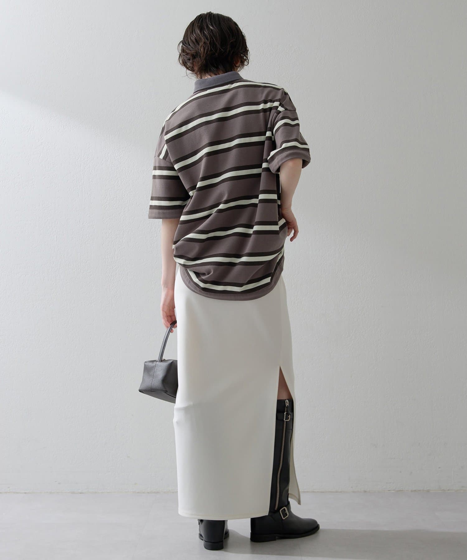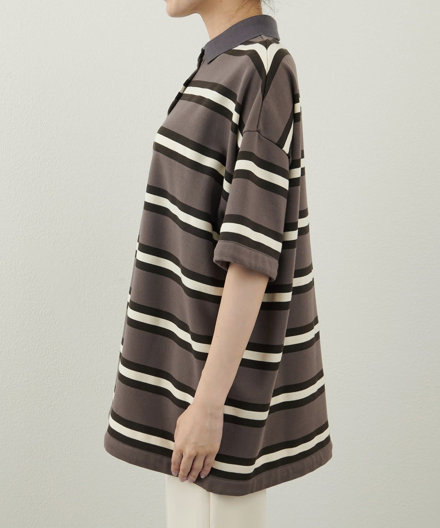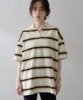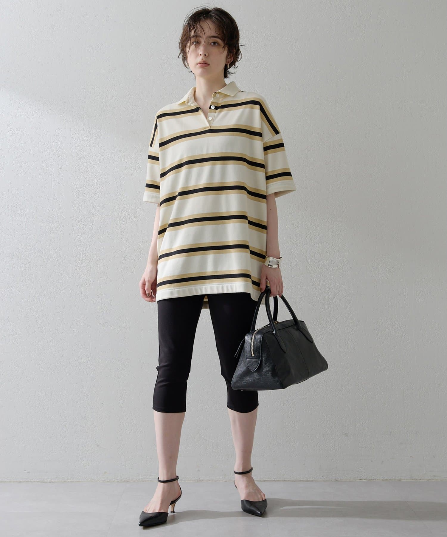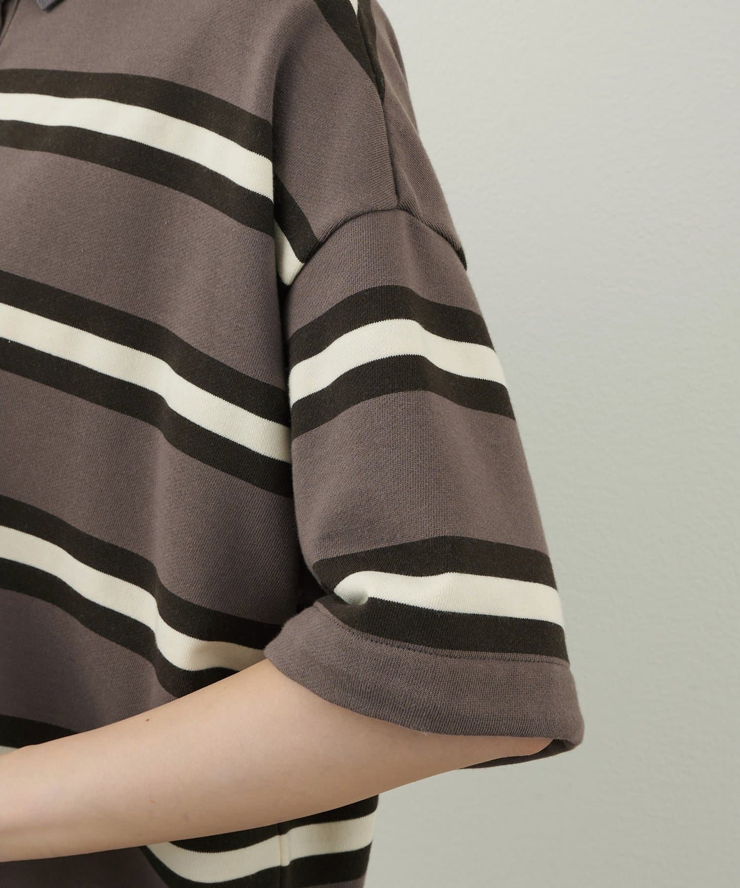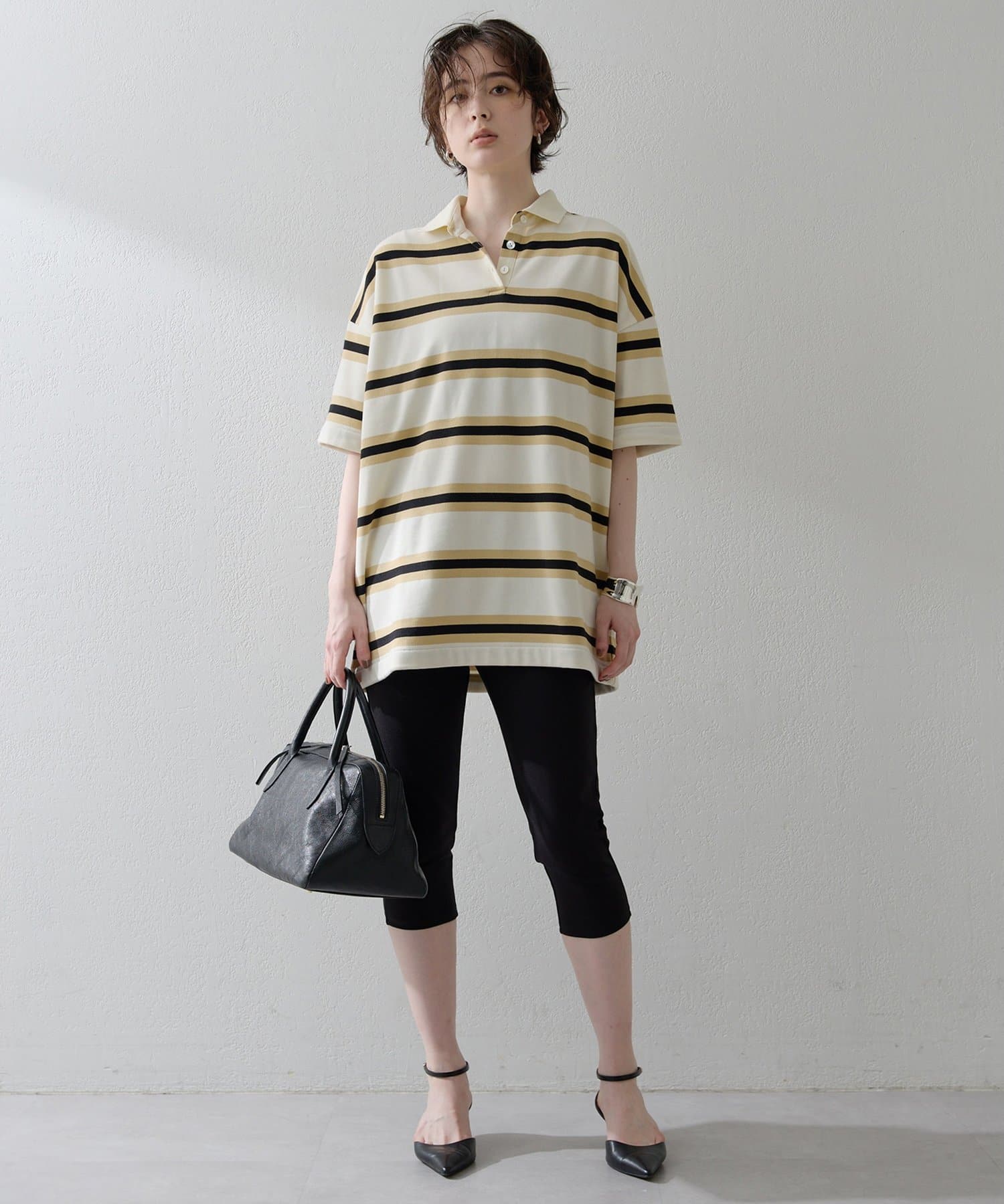 ■太めピッチの配色ボーダーが印象的なポロシャツ。