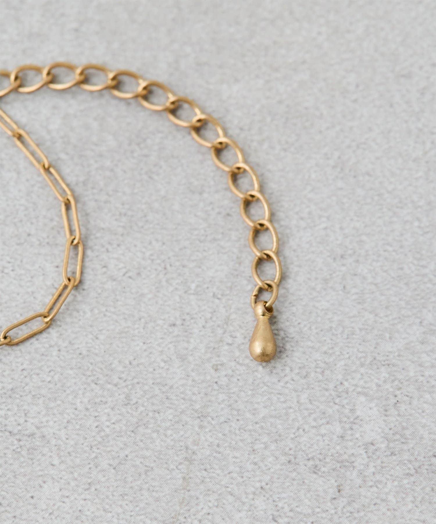 ■ショートネックレスやチョーカーとの重ね付けでもバランスのとりやすい鎖骨下の長さもポイント。