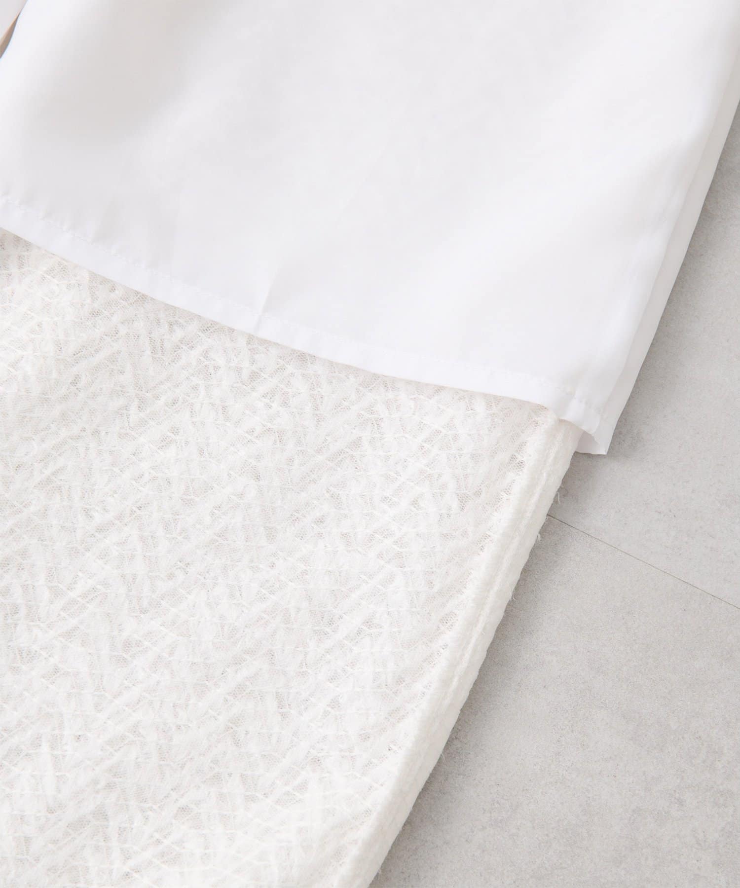 ■チュールにファンシーヤーンを刺繍した素材を使用し、適度な透け感を楽しめる一枚。
