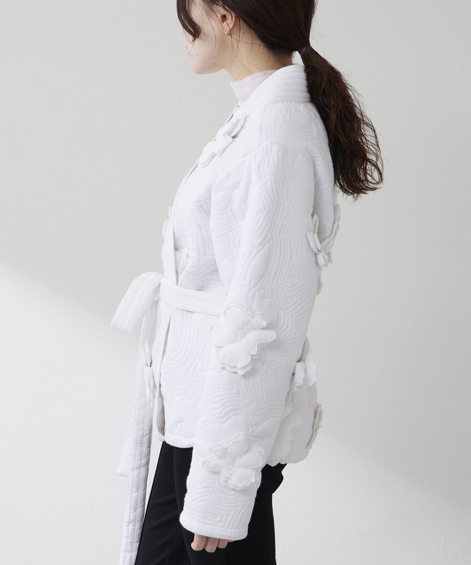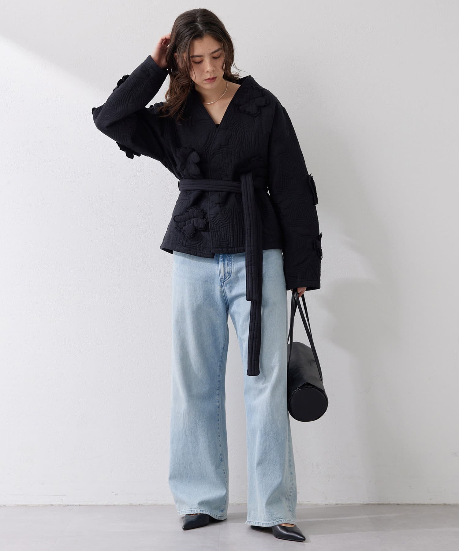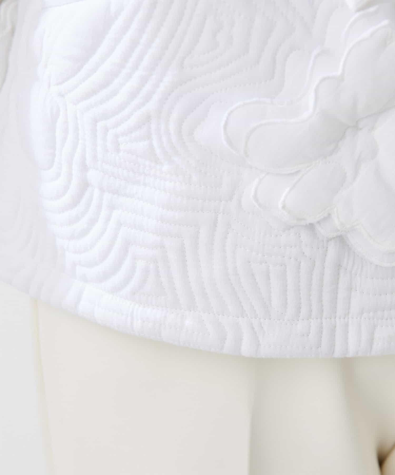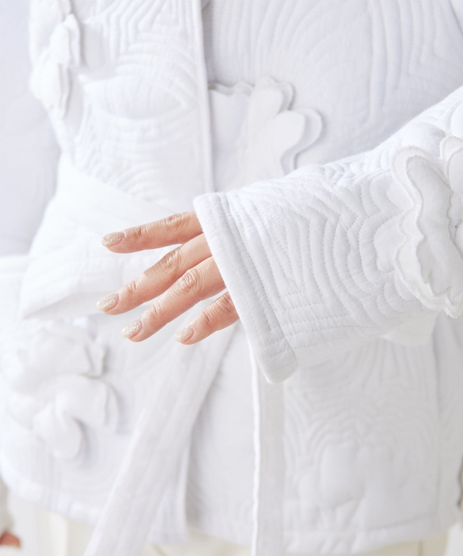 表地と裏地にインド綿を使用し、本体と袖の全体に花柄のキルティングの機械刺繍を入れた生地。