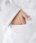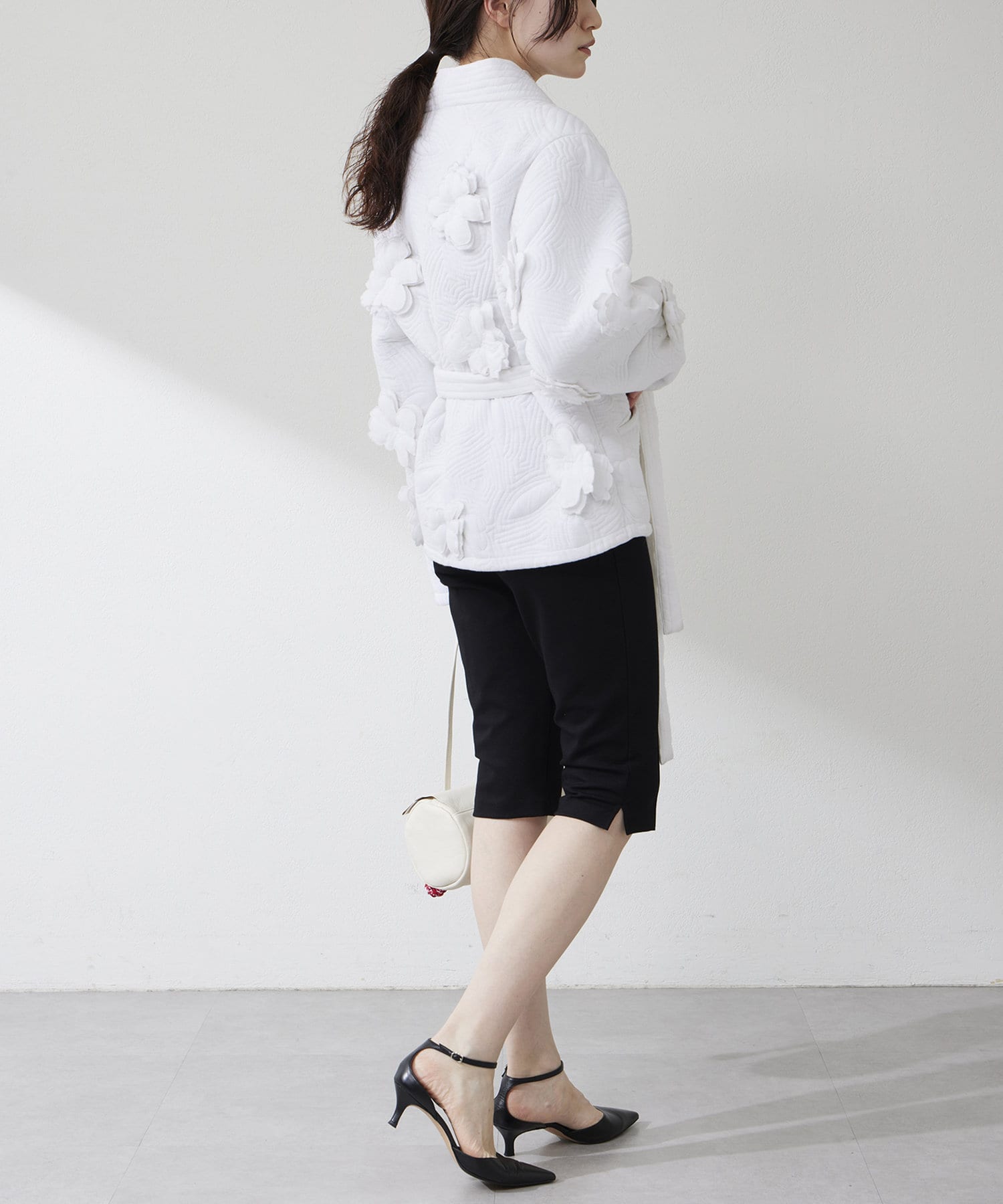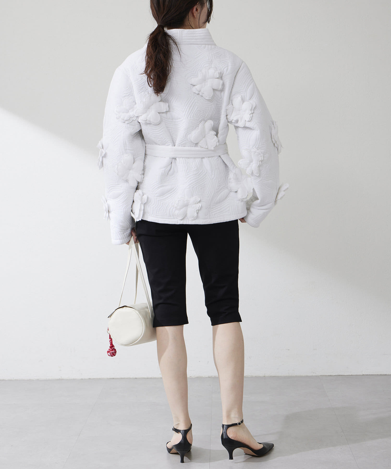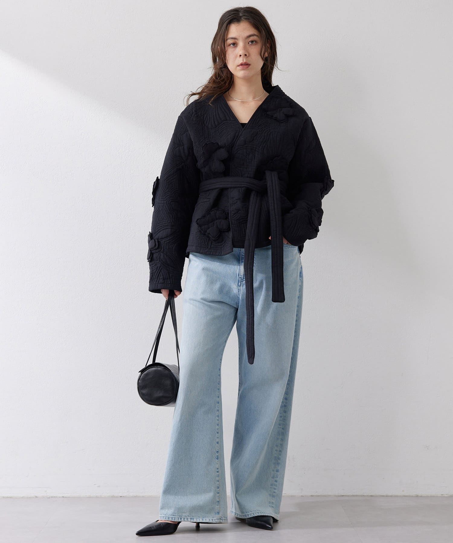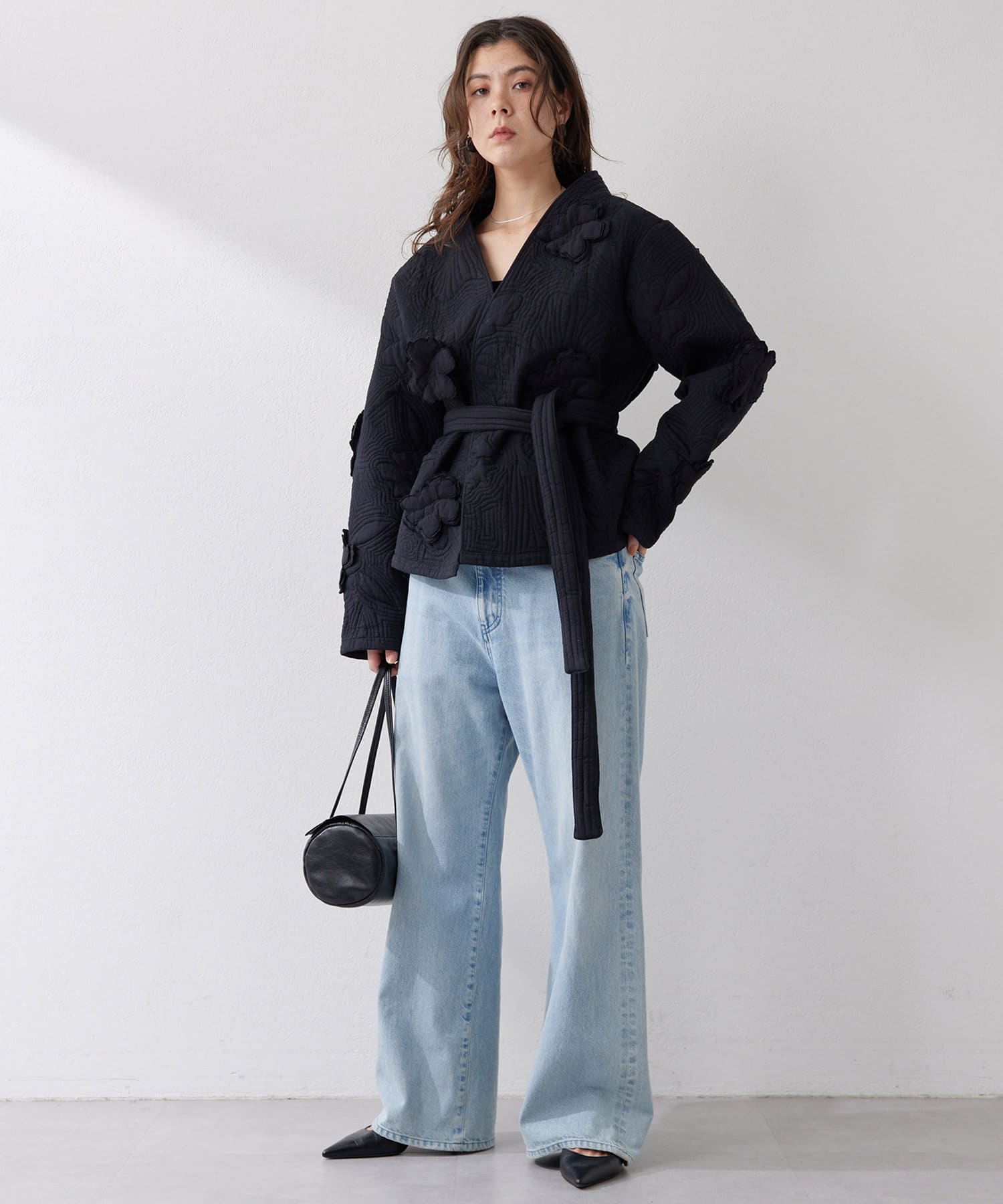 表地と裏地にインド綿を使用し、本体と袖の全体に花柄のキルティングの機械刺繍を入れた生地。