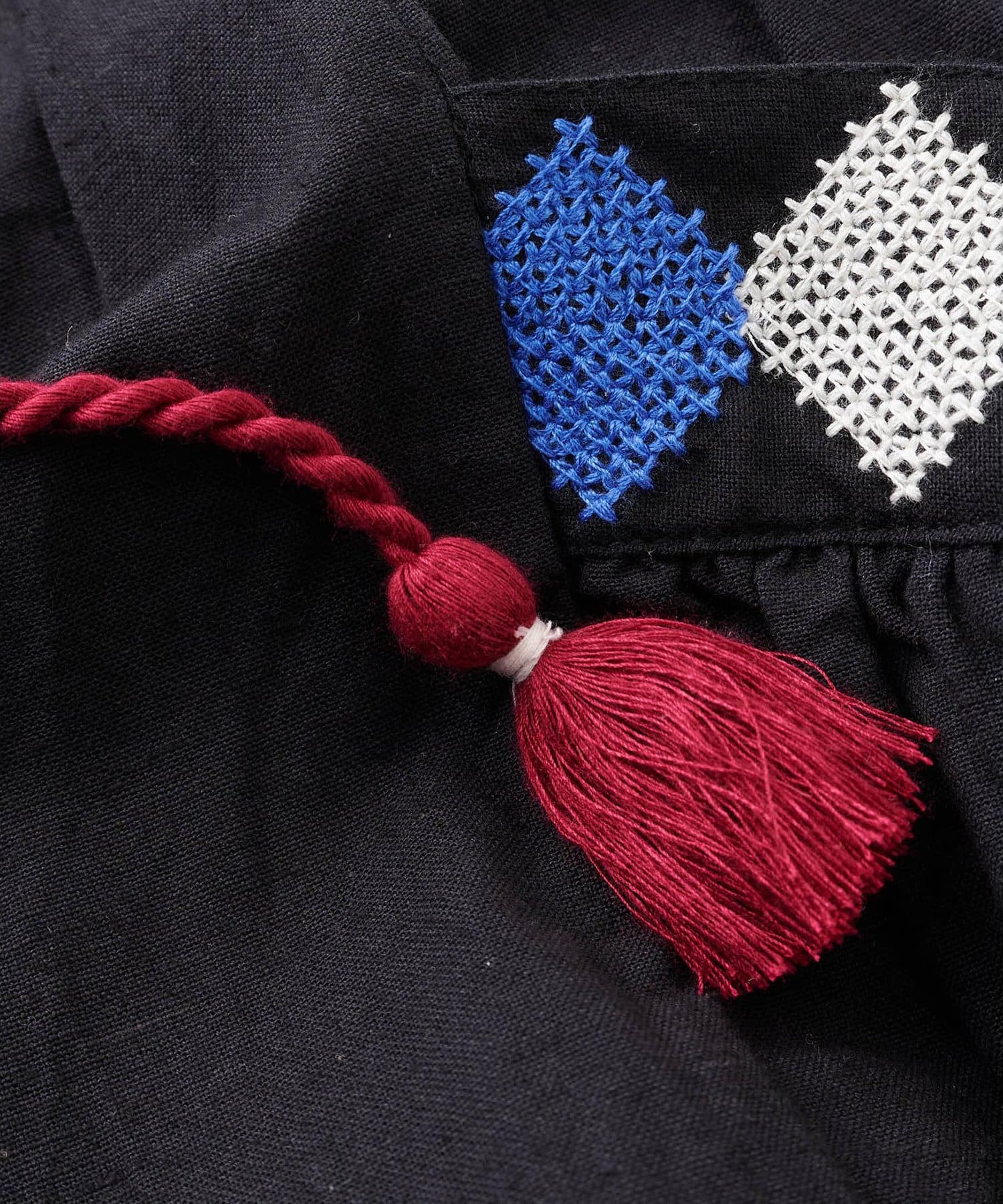 ブラック:3色使いした刺繍が映えるエスニックなブラック。