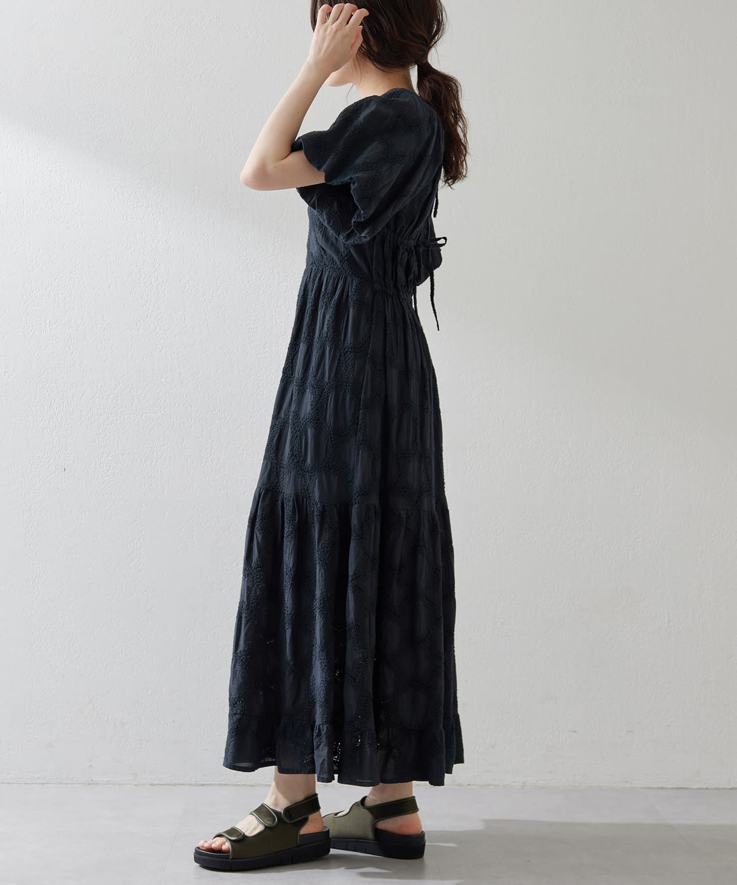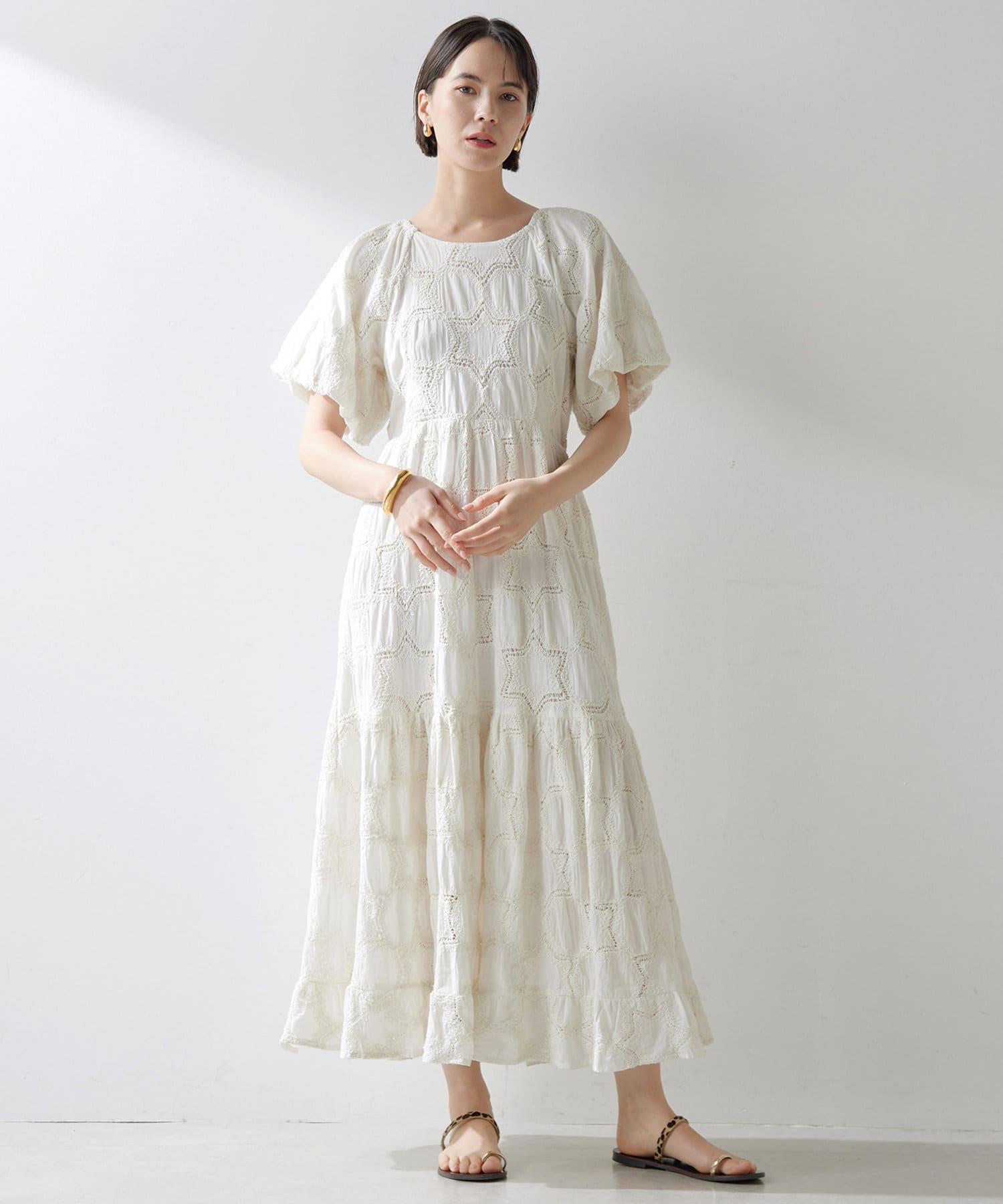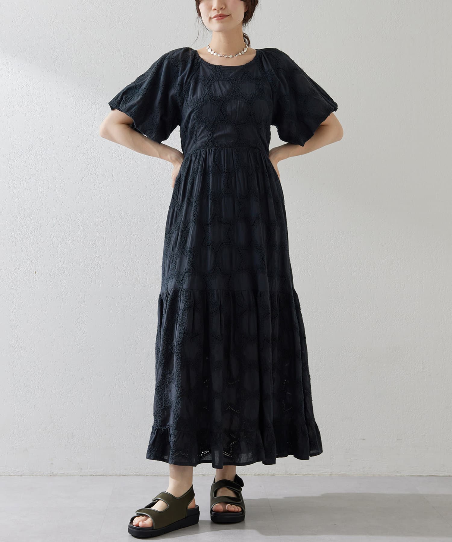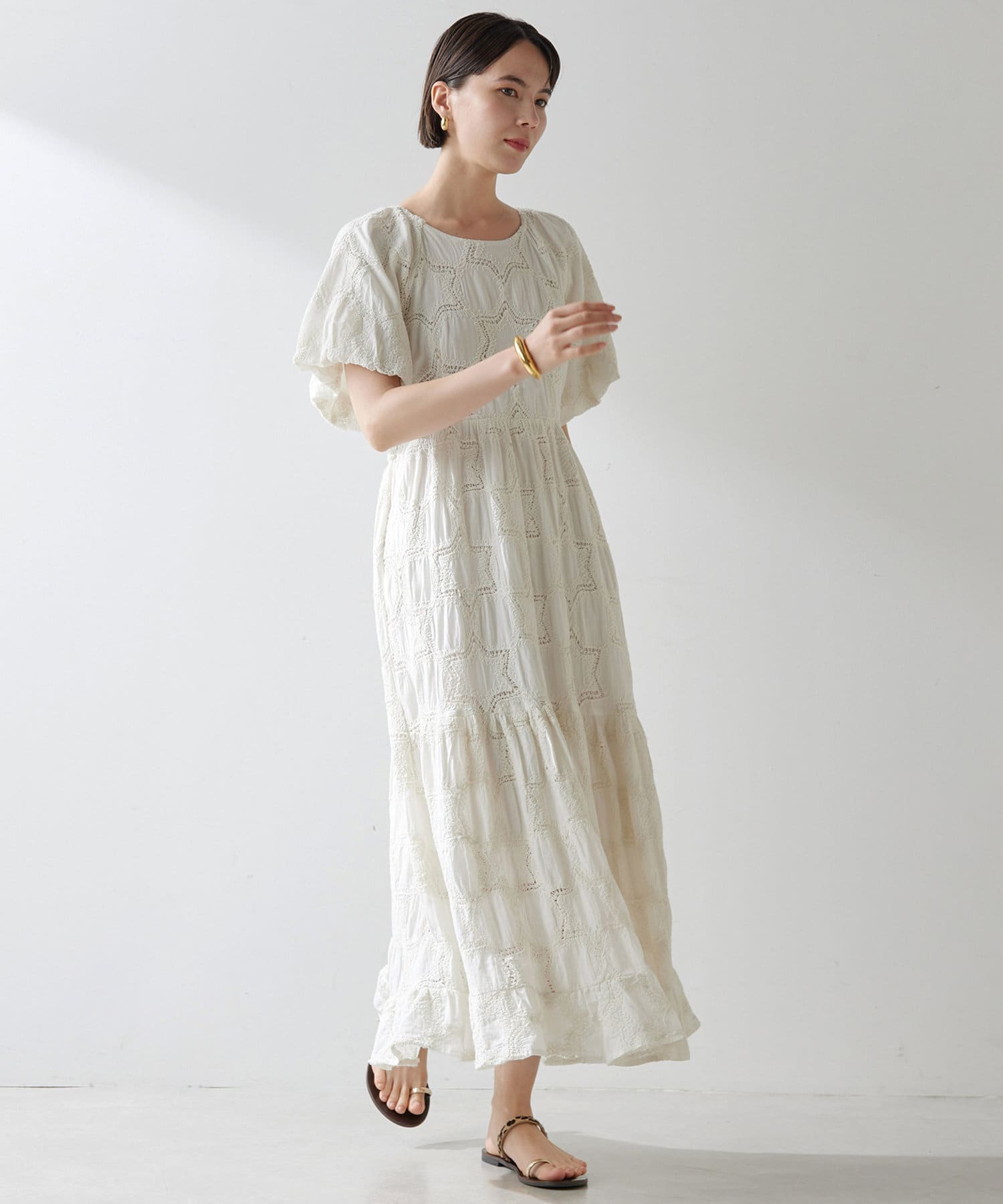 ■刺繍の幾何学パターンが上品で華やかなワンピース。