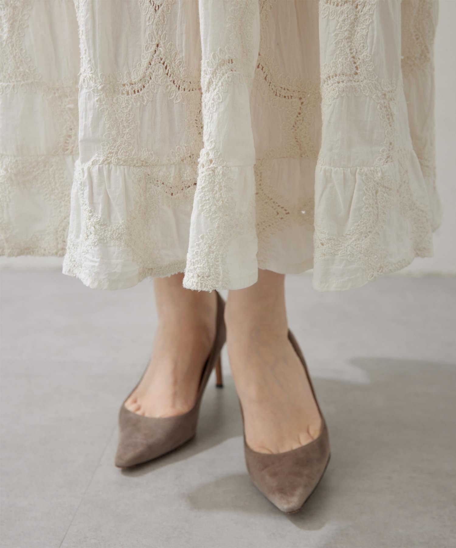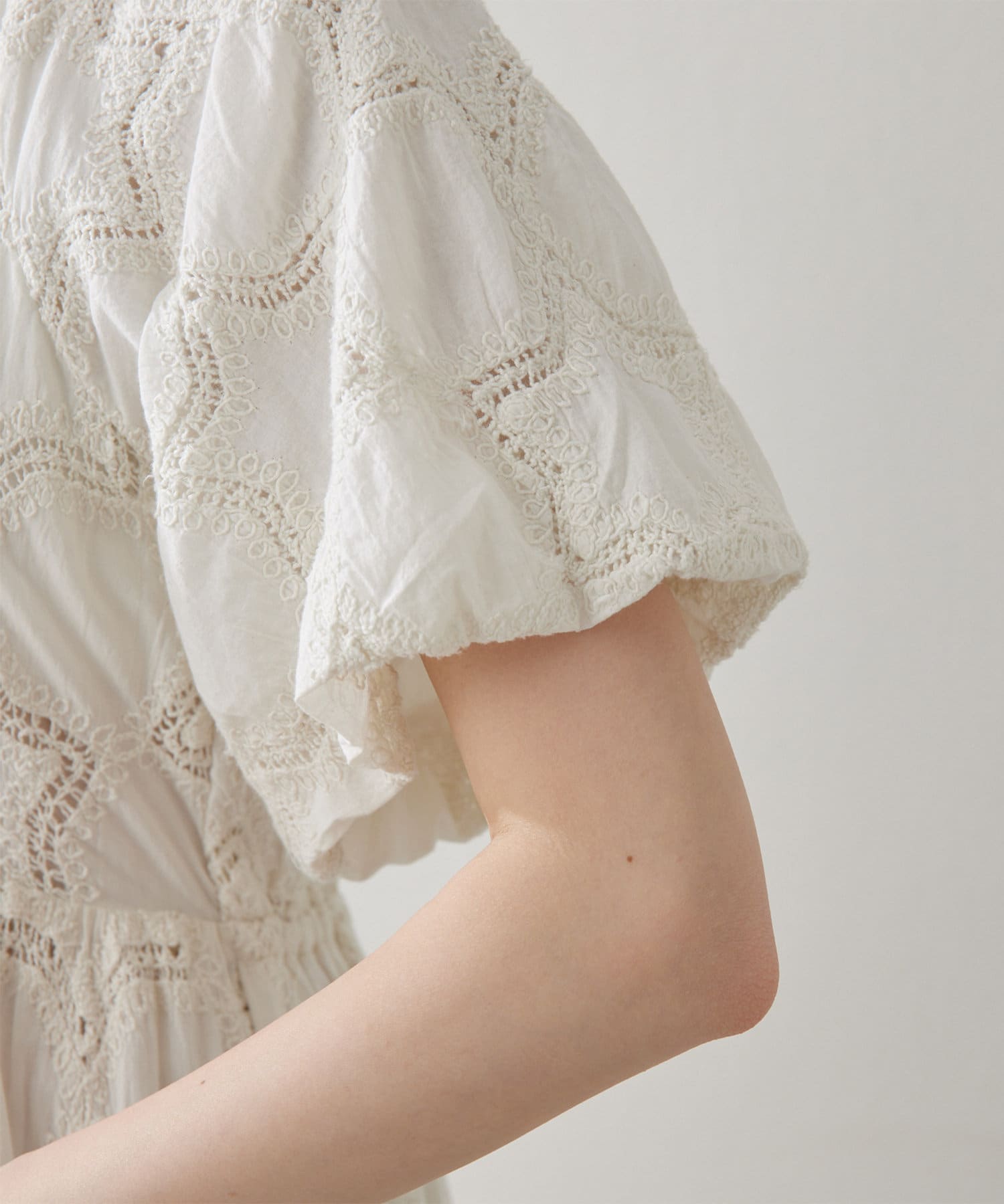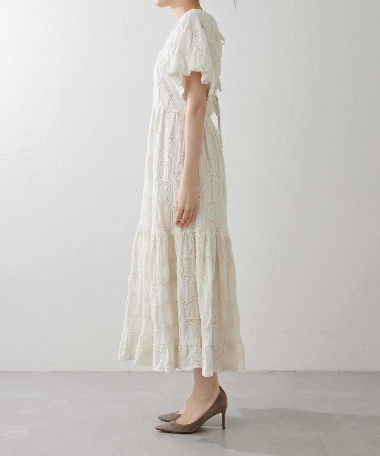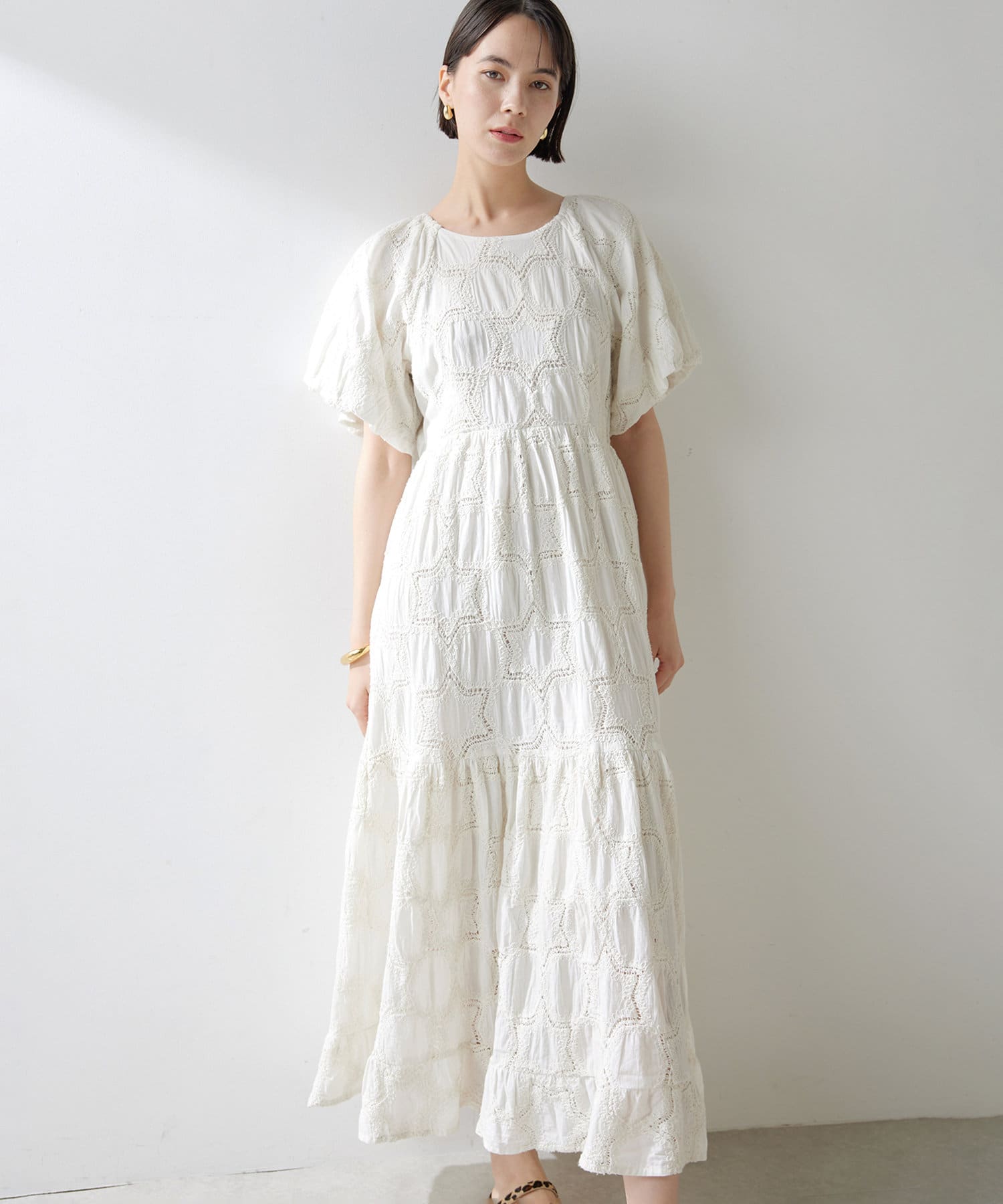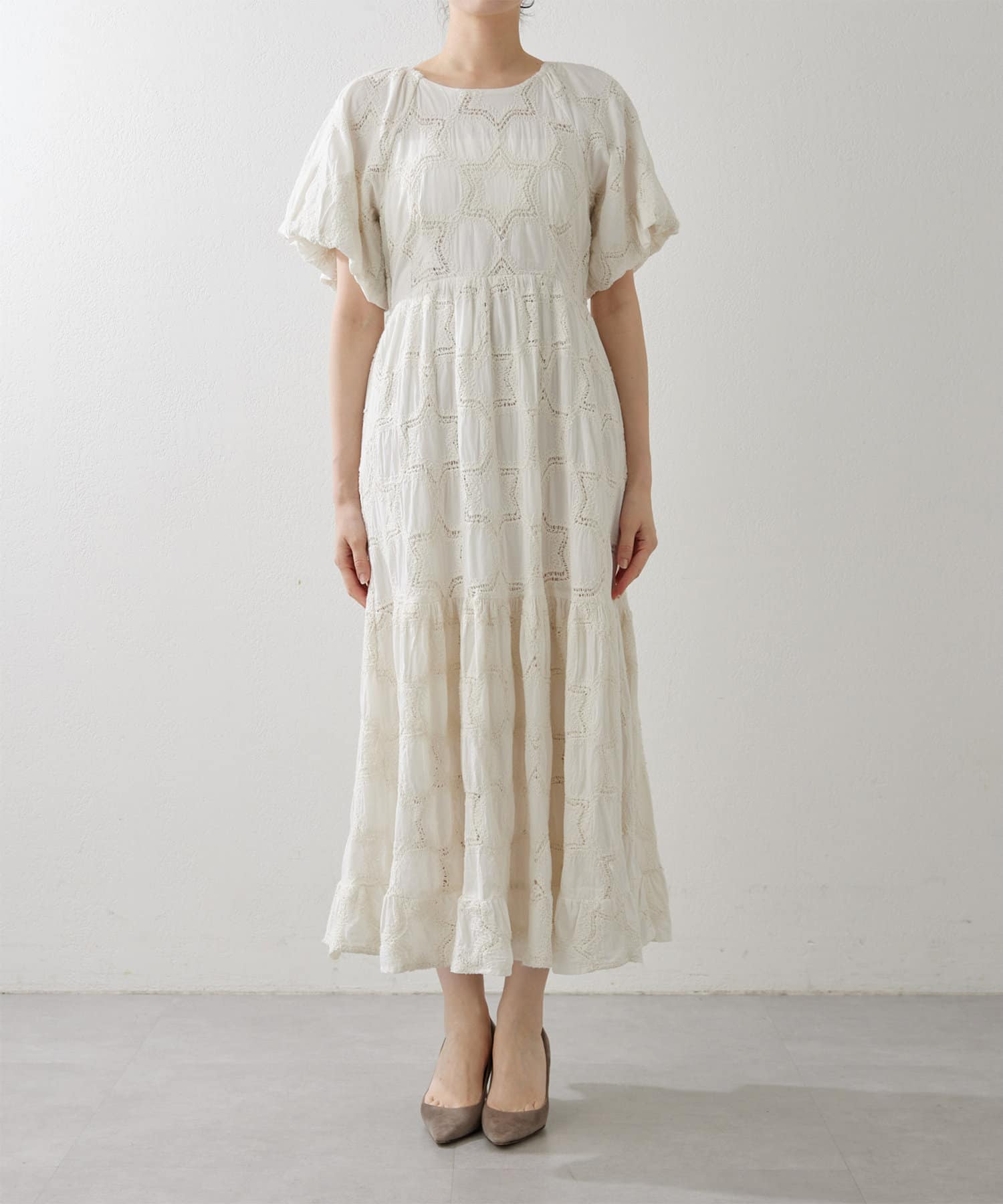 ■刺繍の幾何学パターンが上品で華やかなワンピース。