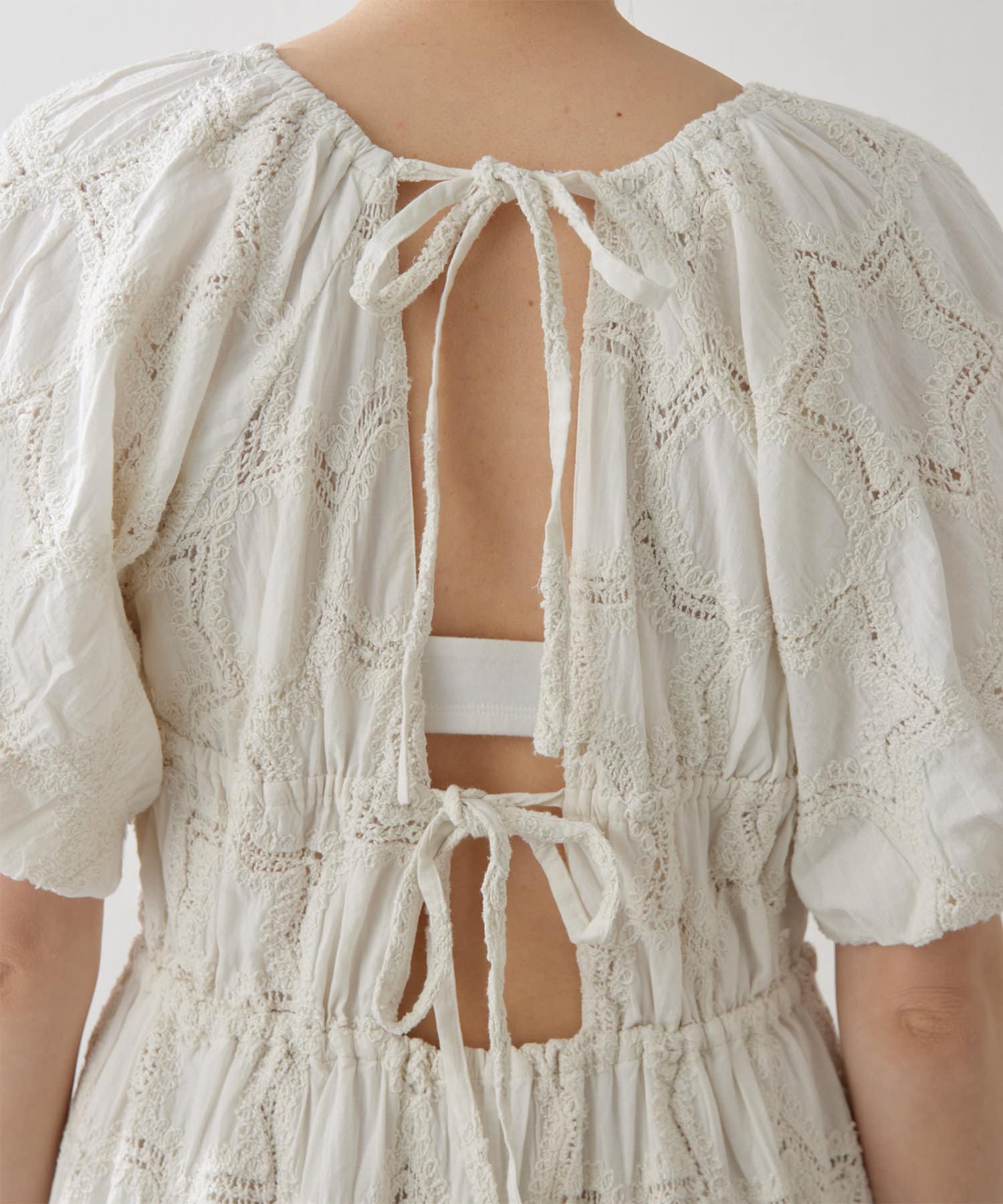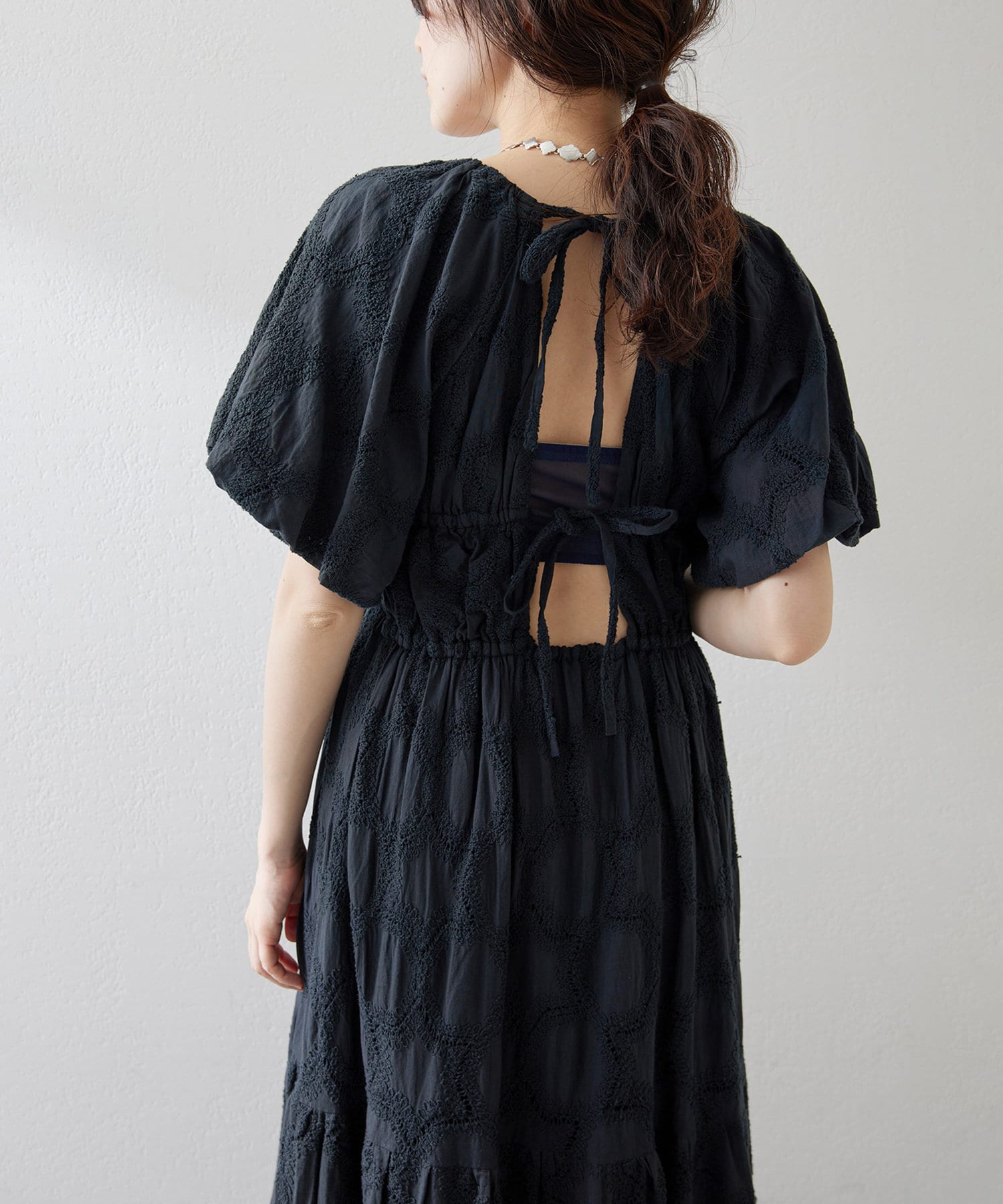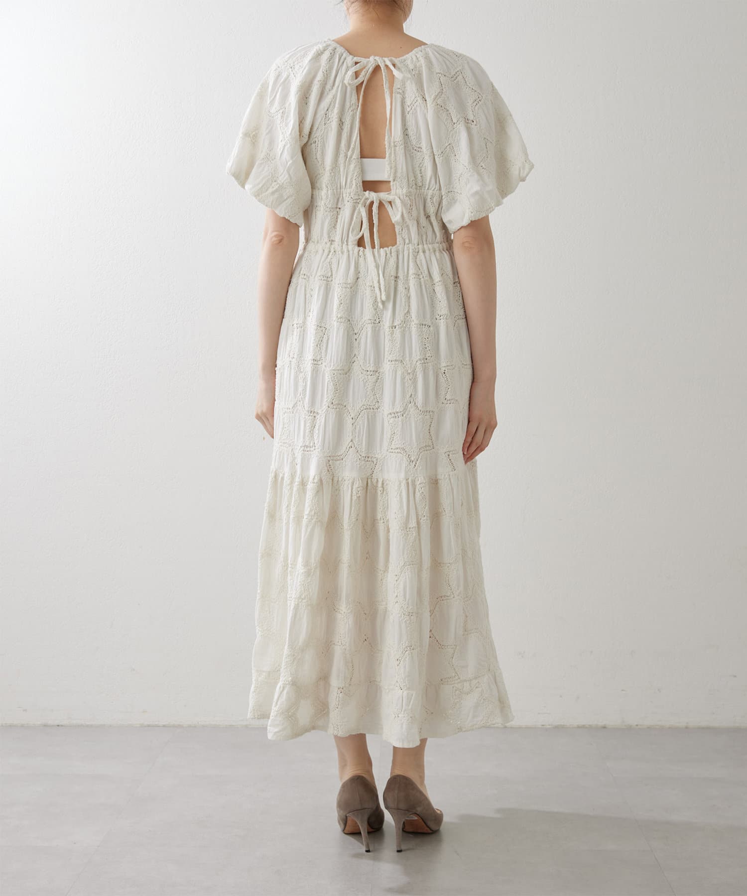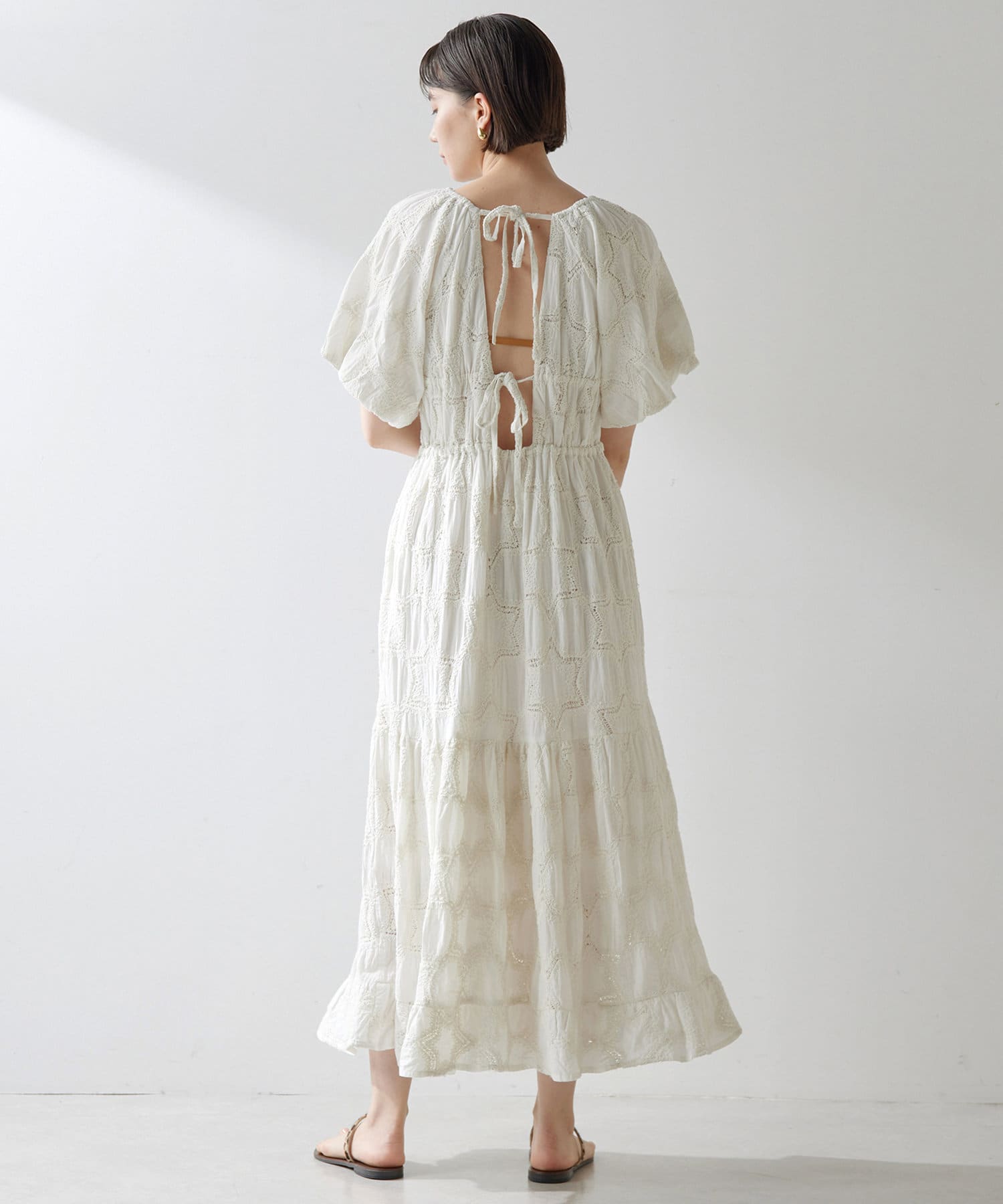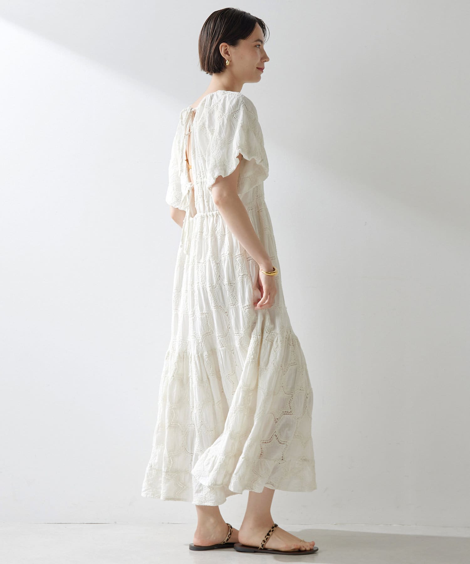 華やかな刺繍とバックスタイルが着映えるワンピース